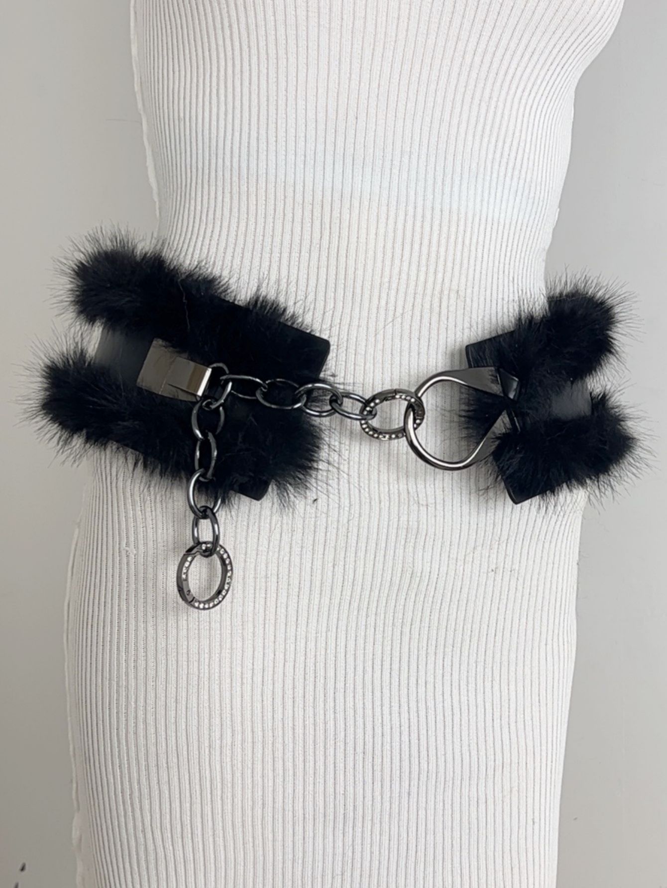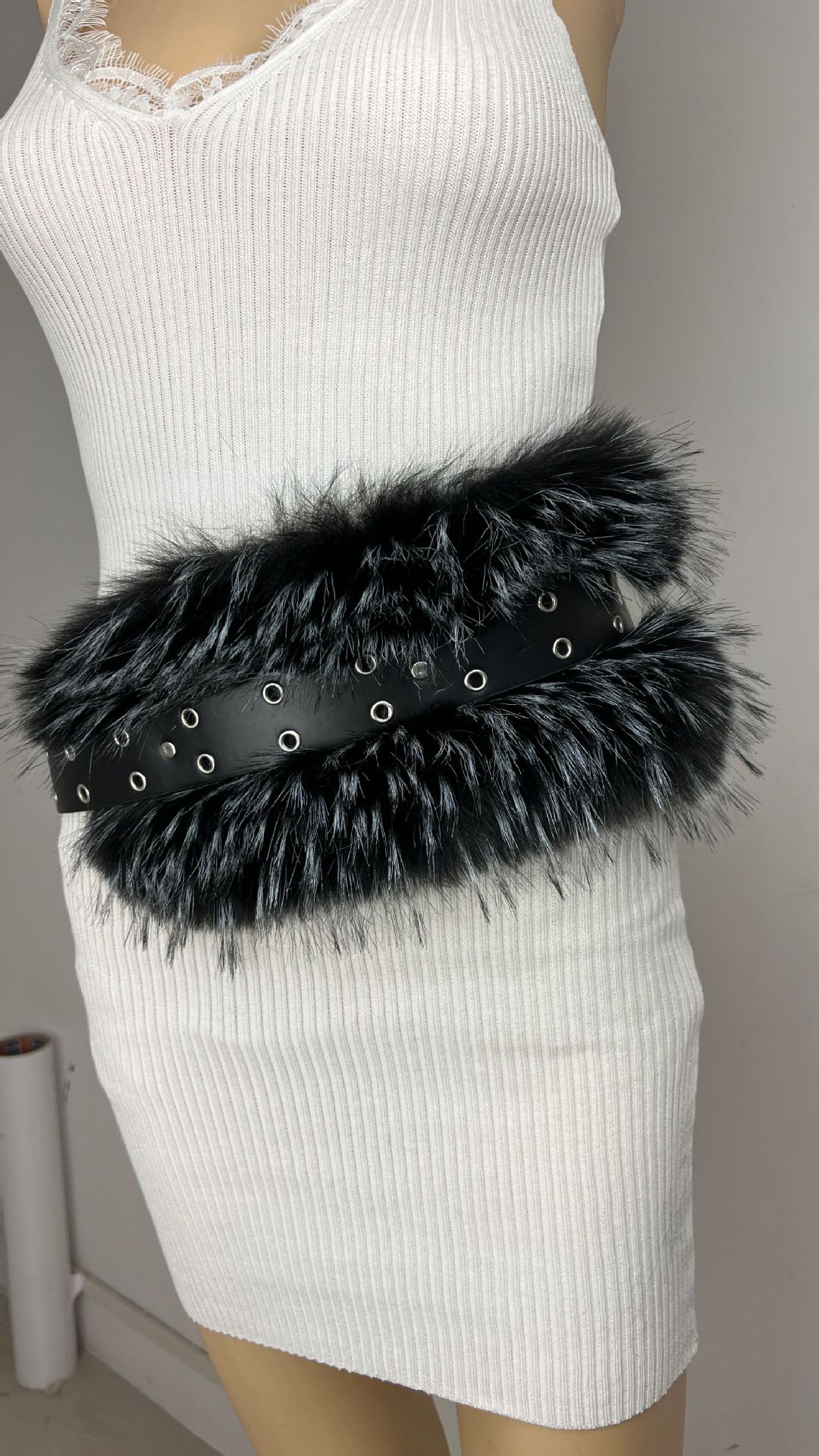 • 에어 아이가 있는 인조 모피 블랙 모피 벨트