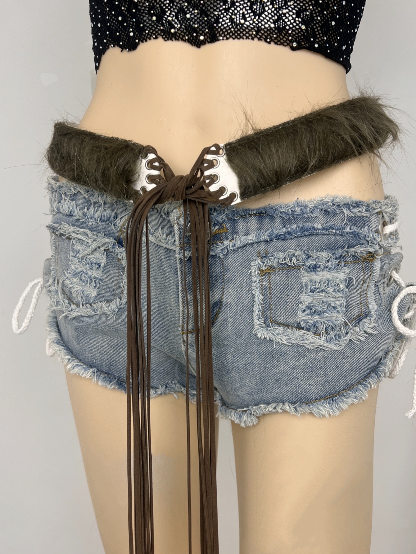 새로운 토끼 모피 벨트 D. 나. OOTD 마오 마오 벨트 유럽과 미국 국경 뜨거운 섹시한 스파이스 소녀 허리 커버 와이드 벨트