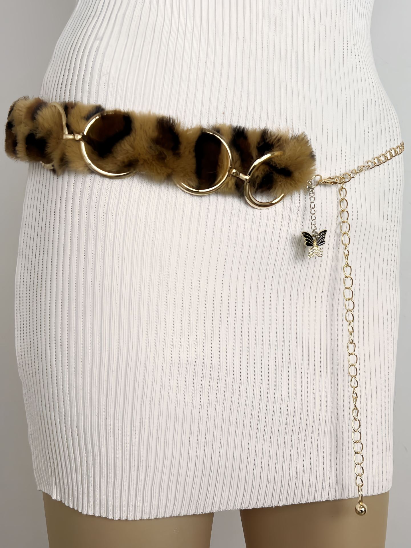 • 화려한 눈을 가진 갈색 모조 모피 모피 벨트