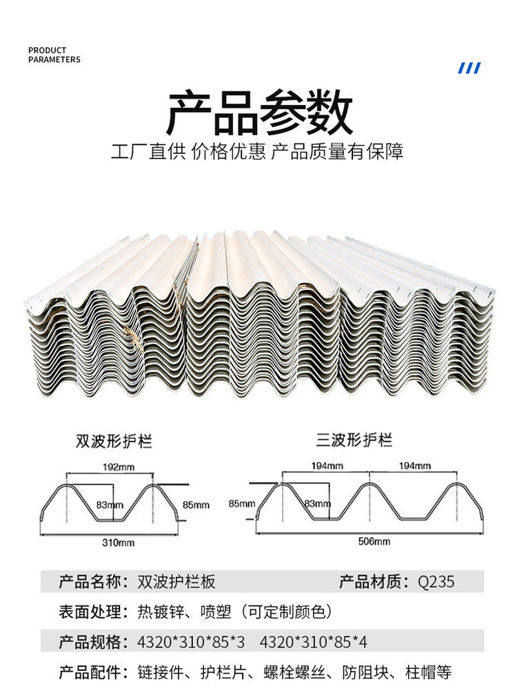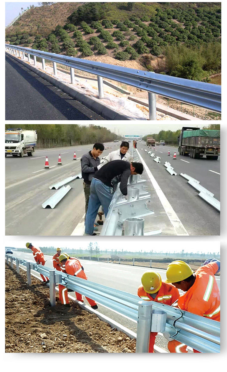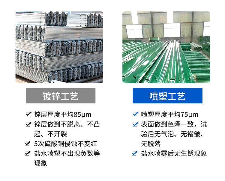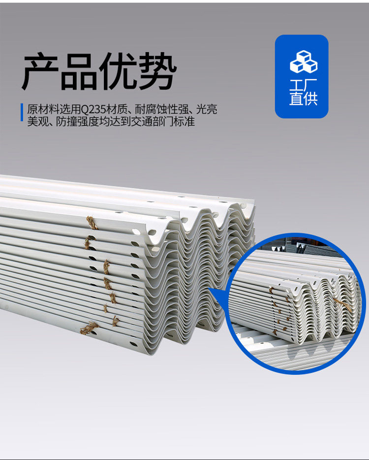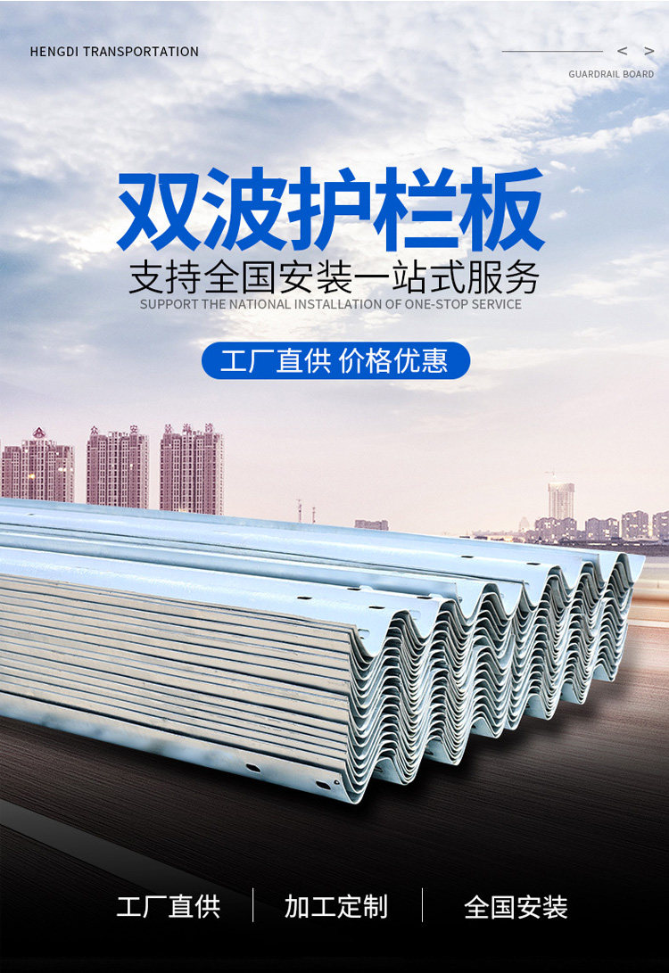 Huizhou 농촌 도로 골판지 보호대 뜨거운 아연 도금 플라스틱 스프레이 더블 웨이브 골판지 보호대 도로 양쪽에 충돌 방지 난간