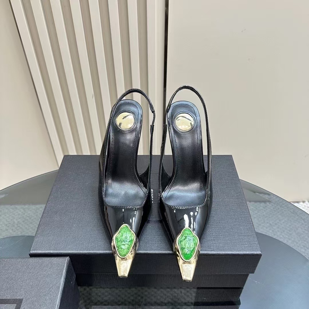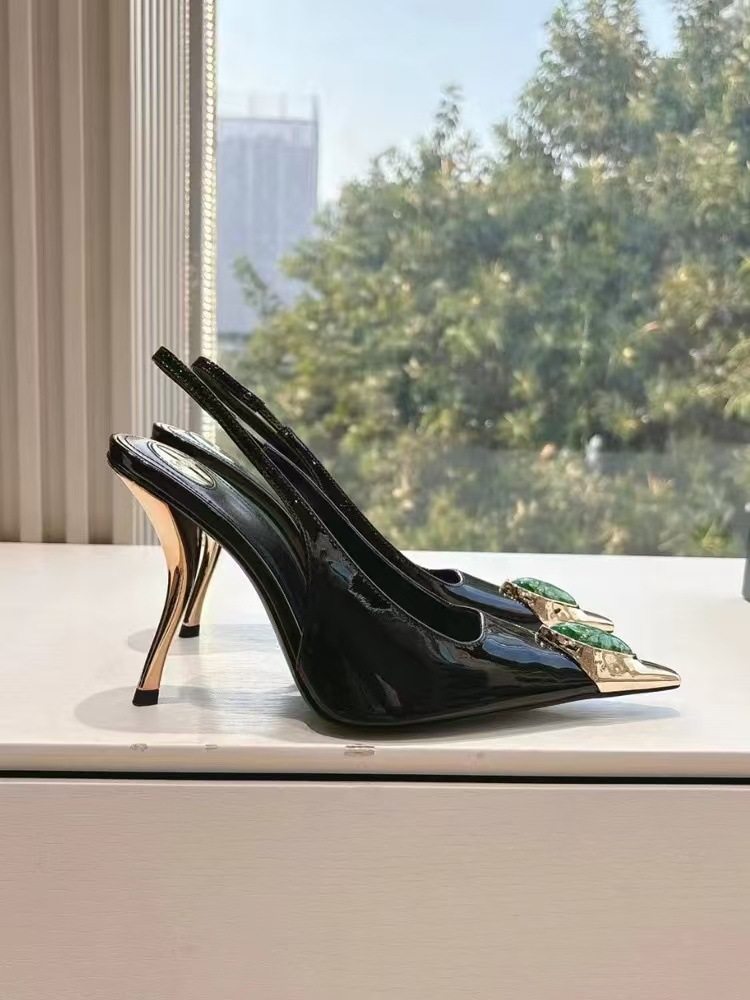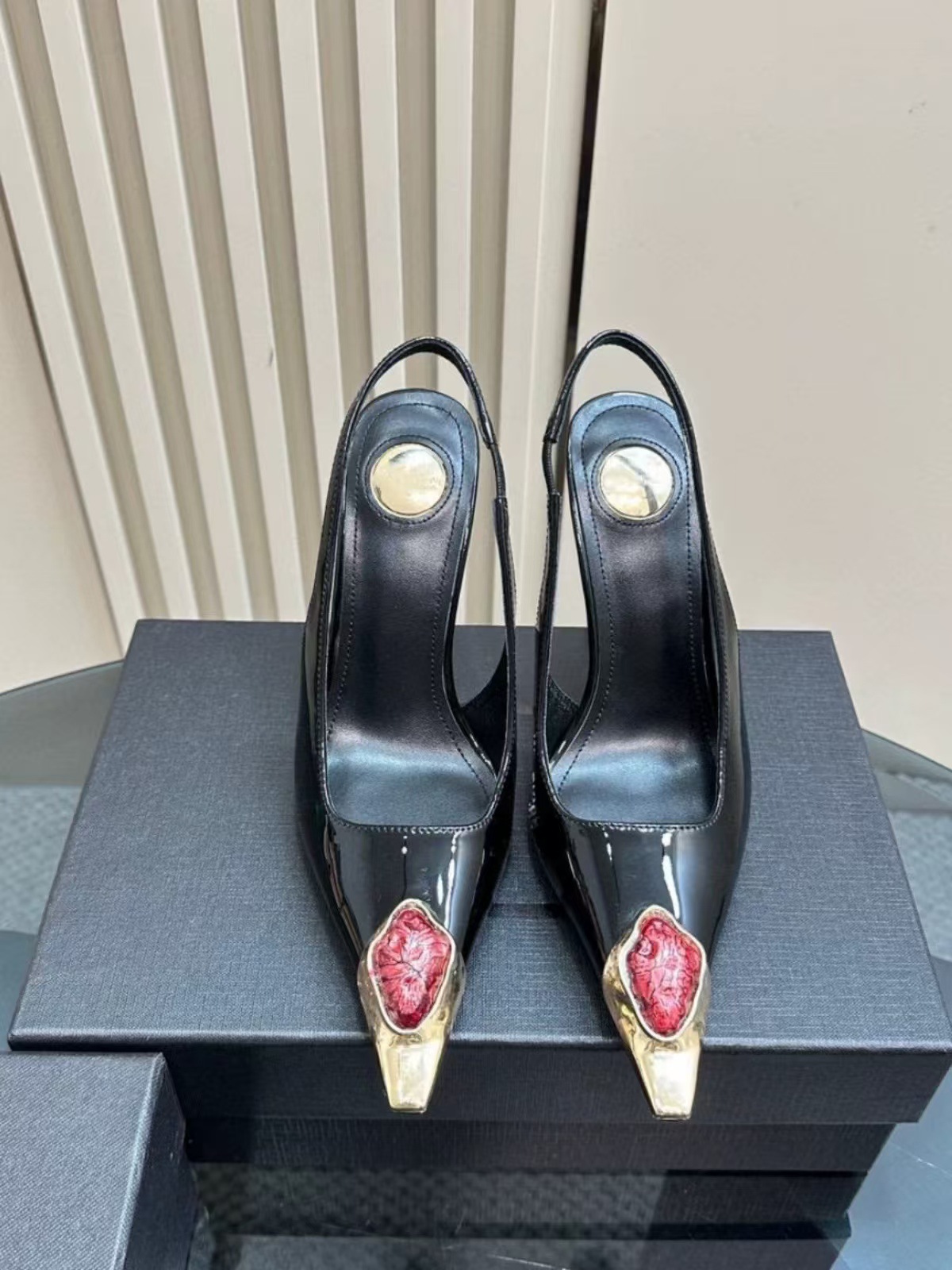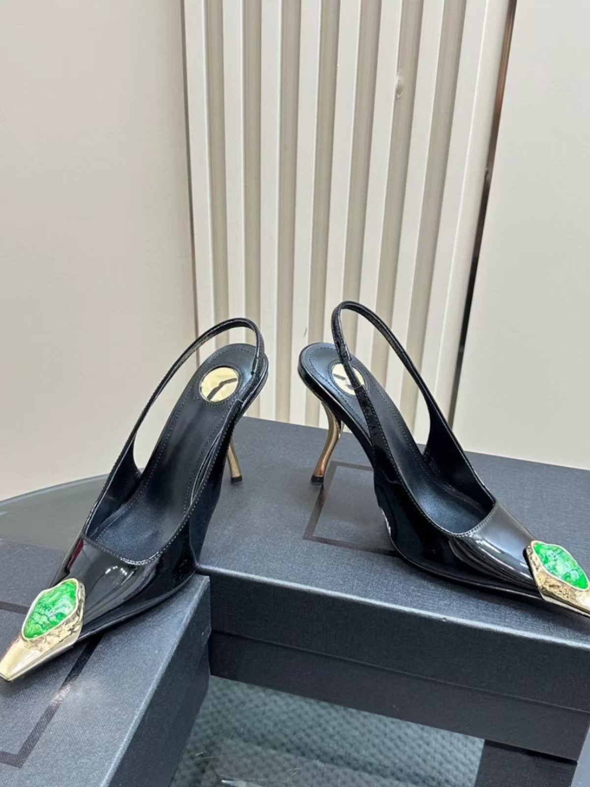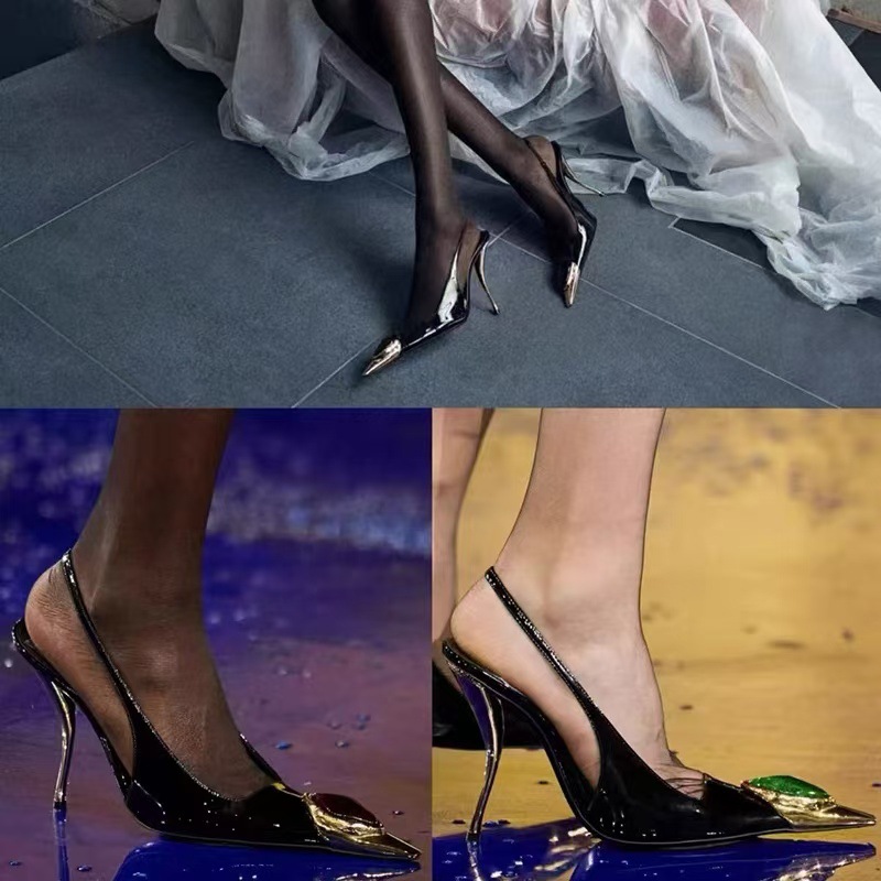 유럽과 미국의 복고풍 보석 하이힐 여성의 2024 가을 및 겨울 새로운 금속 특허 가죽 힐 샌들 쇼 신발스토어 가기