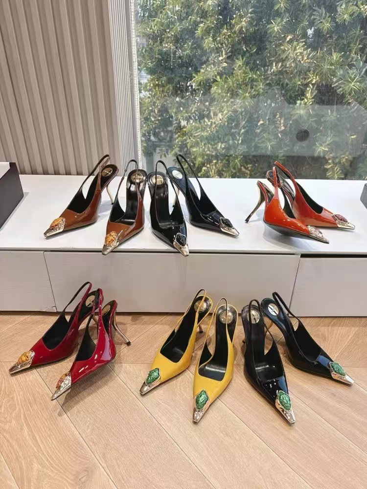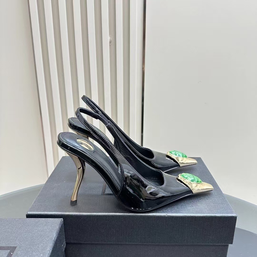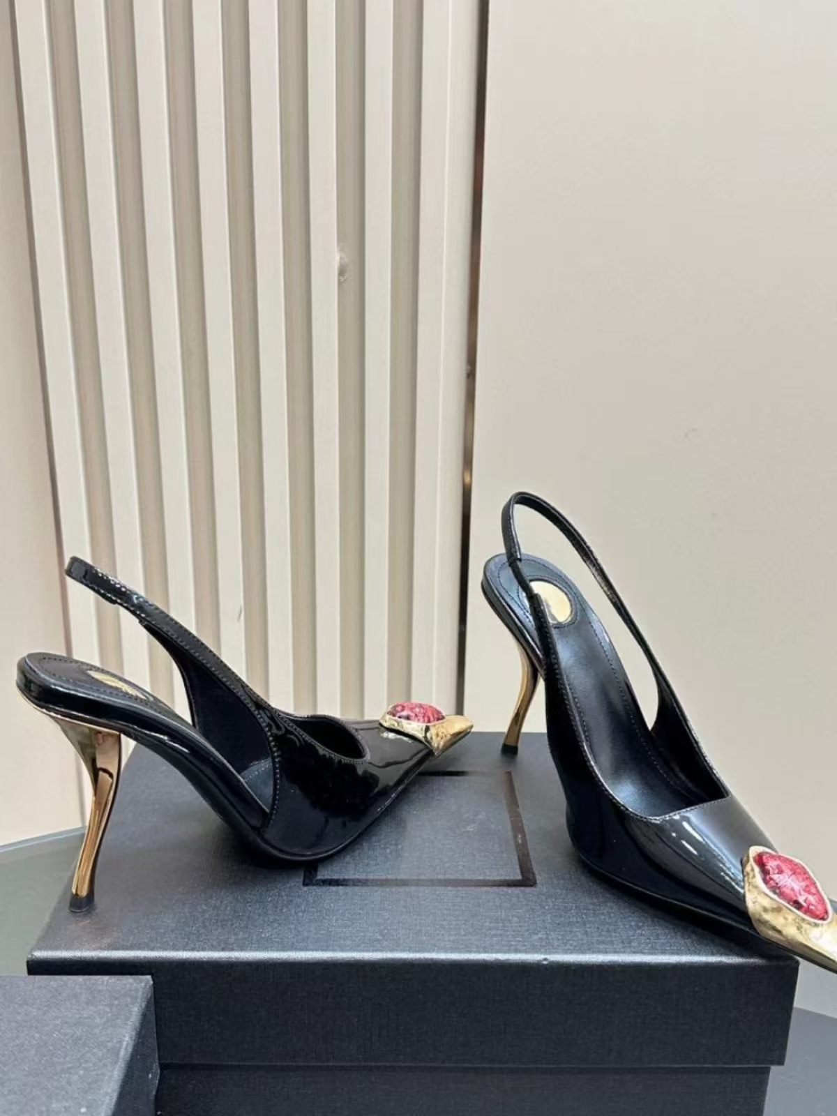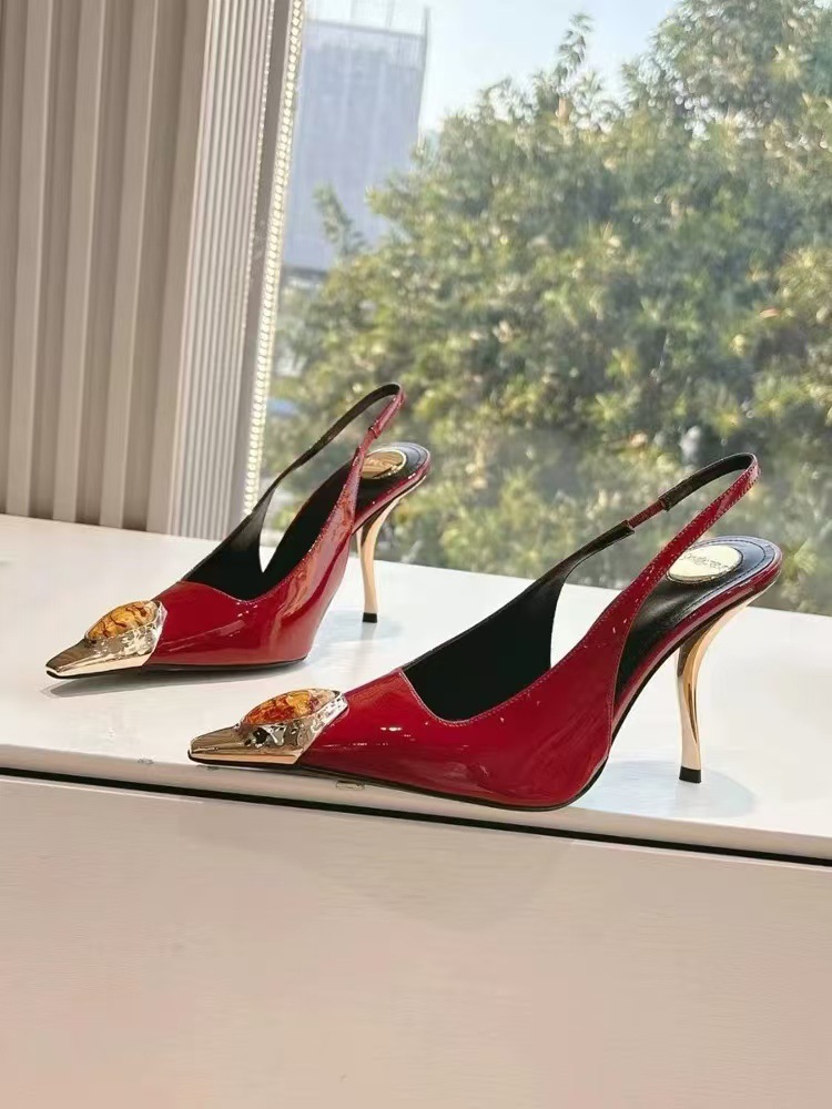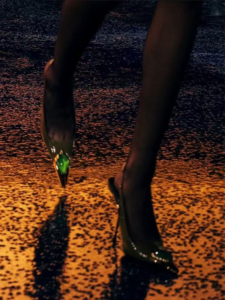 유럽과 미국의 복고풍 보석 하이힐 여성의 2024 가을 및 겨울 새로운 금속 특허 가죽 힐 샌들 쇼 신발스토어 가기