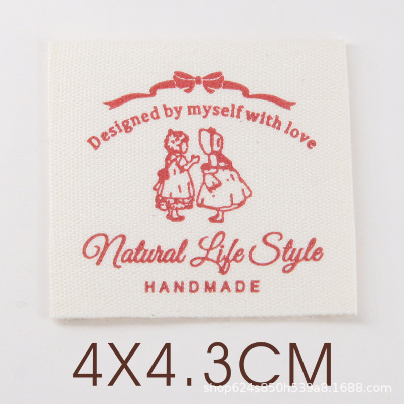 대량 우수한면 수제 천 라벨 개 장미 소녀 영어 장식 녹색 빨간색 라벨 패브릭 액세서리스토어 가기