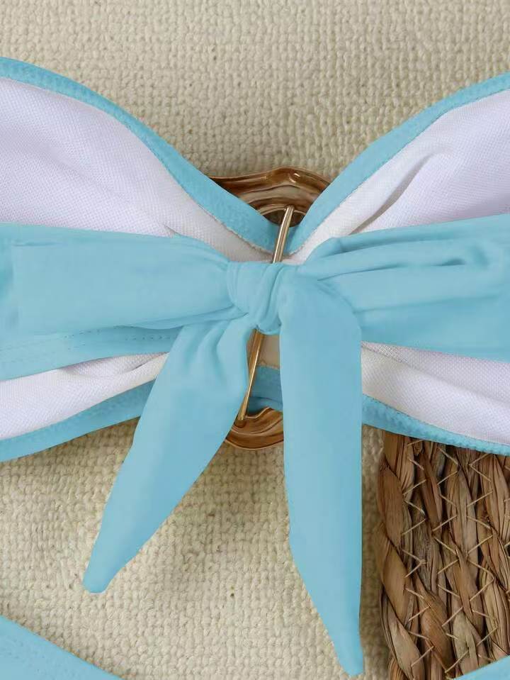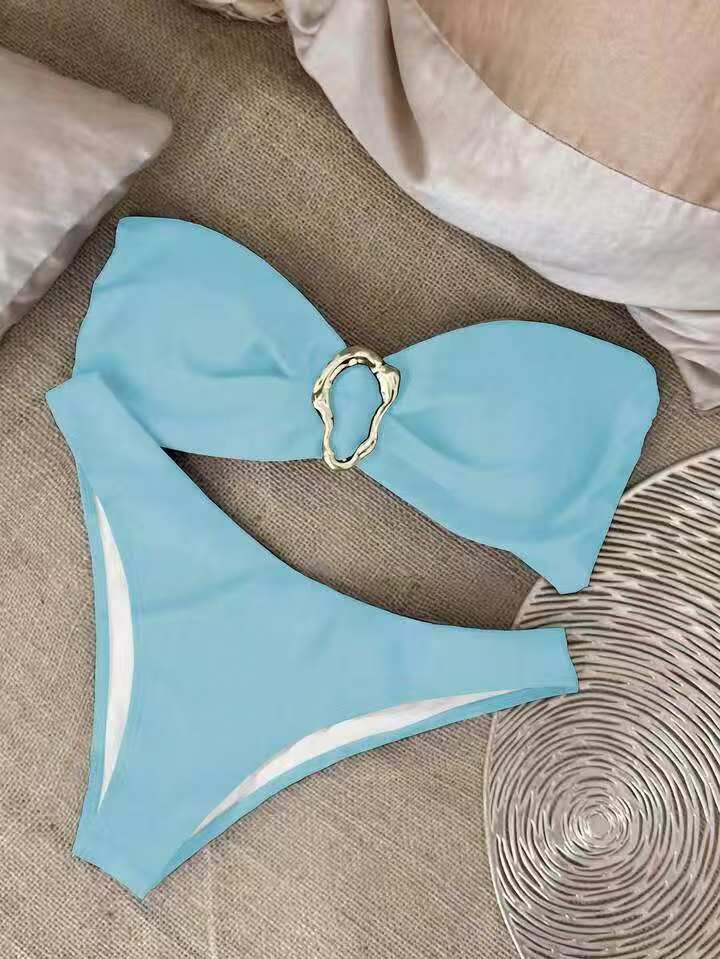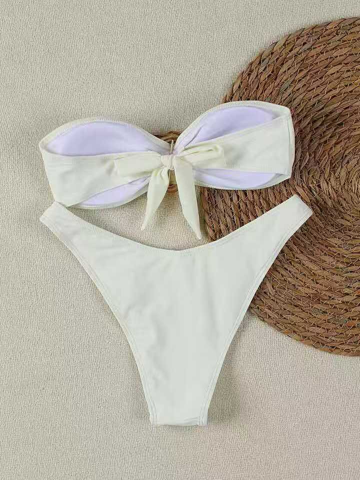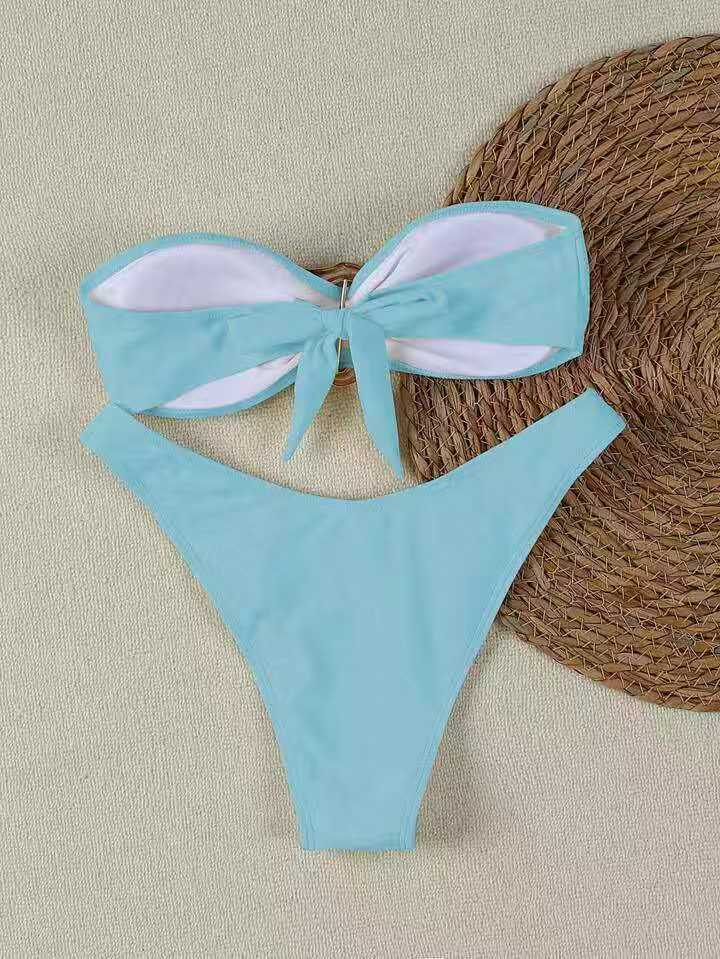 A18 새로운 비키니 섹시한 유럽과 미국의 비키니 솔리드 컬러 튜브 탑 크로스 바운드 여성 수영복 수영복 여성