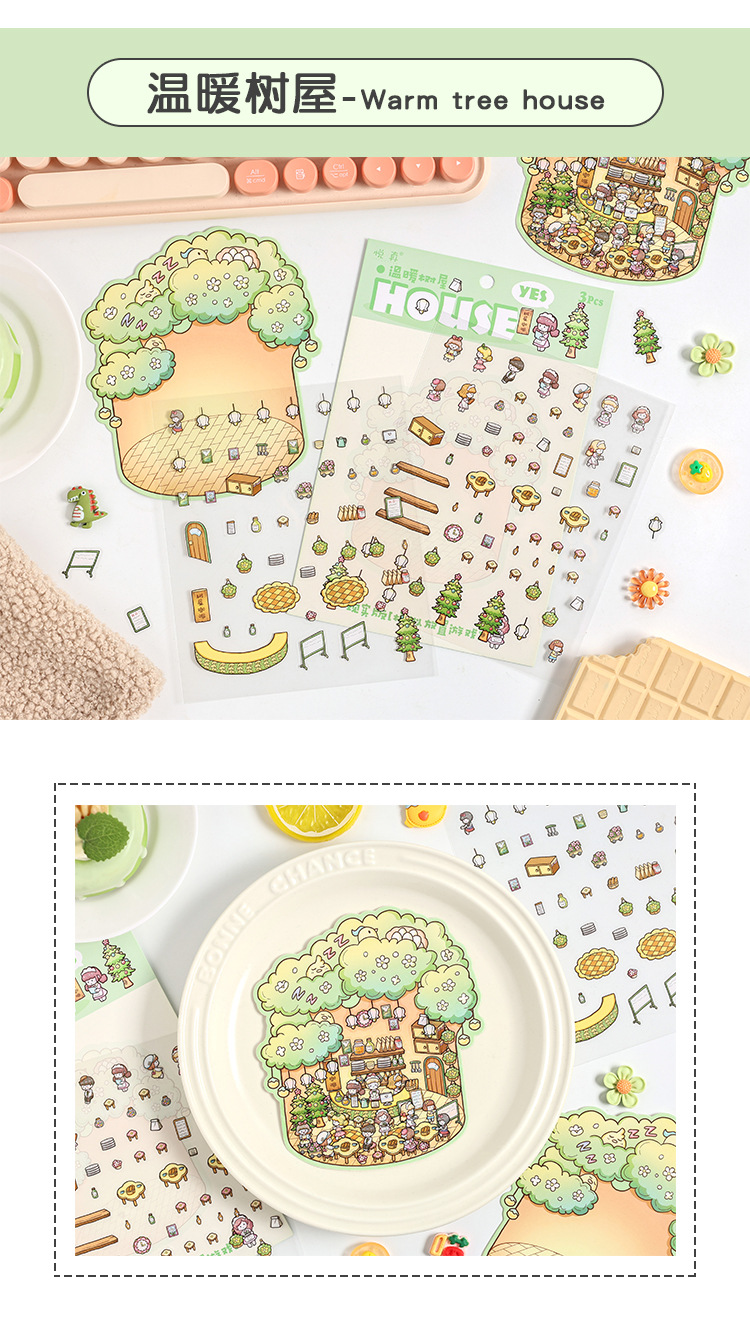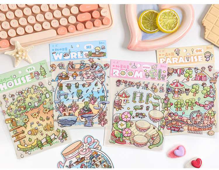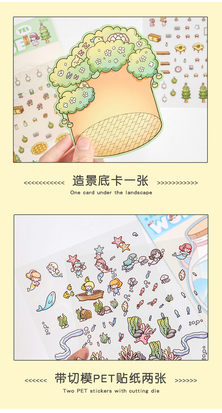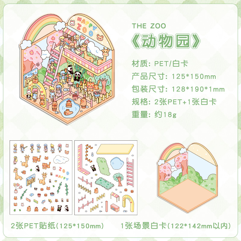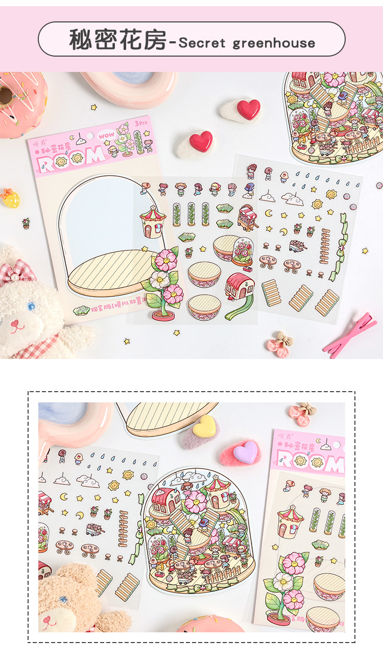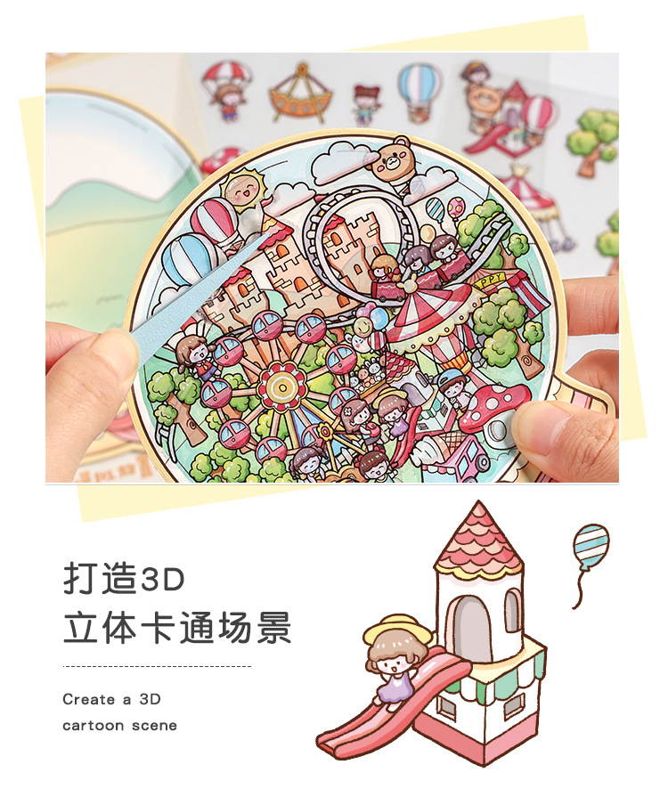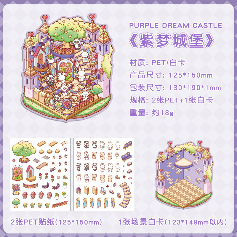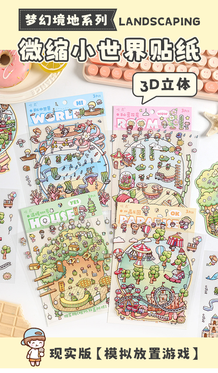 Yuezhen 판타지 스테레오 스티커 3d 조경 스티커 국경 만화 어린이 스티커 조경 오두막 스티커