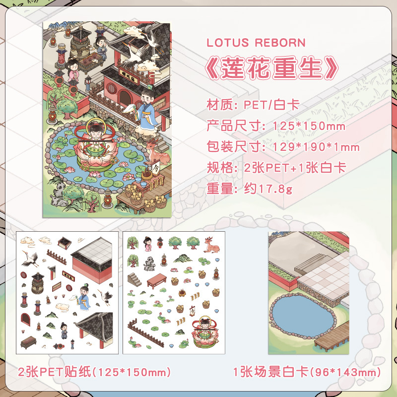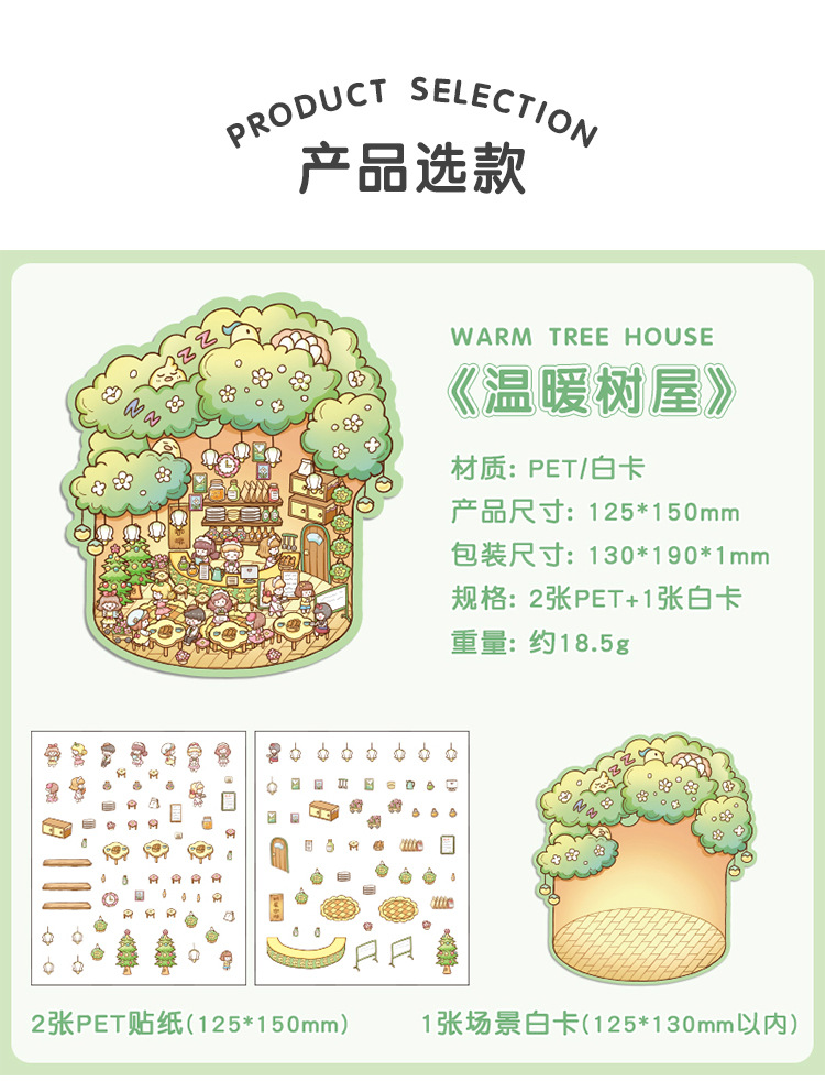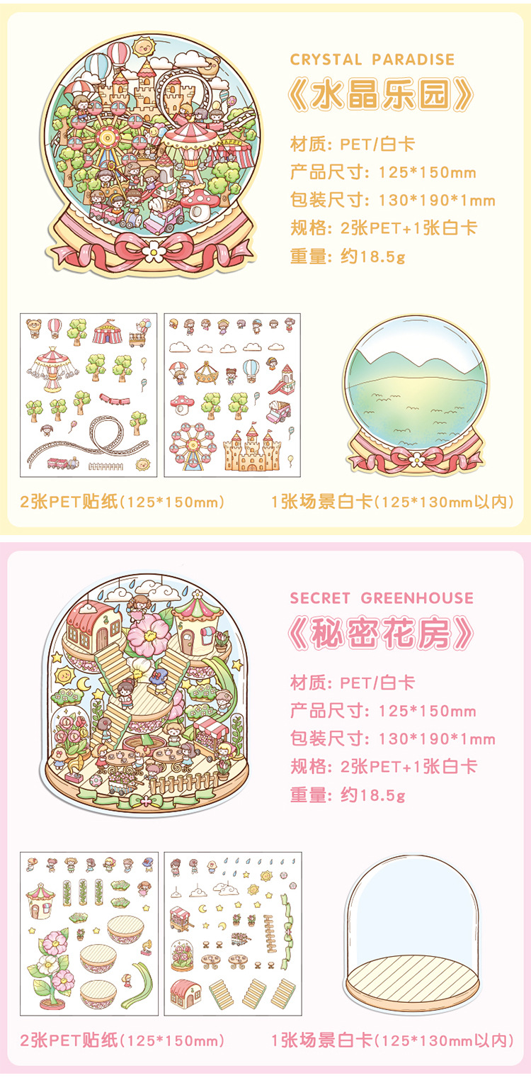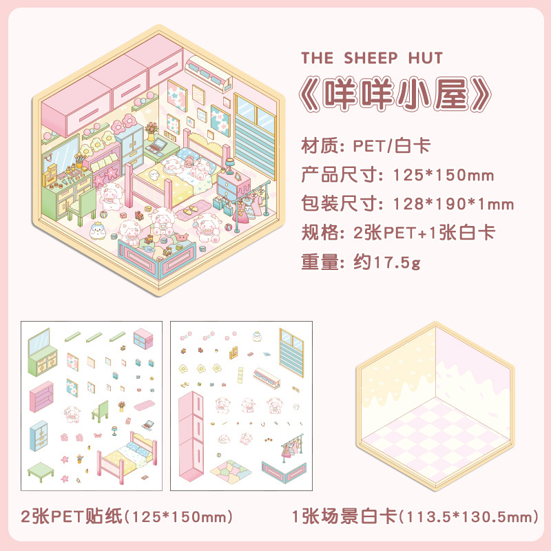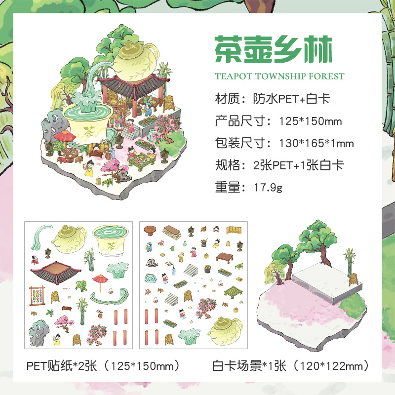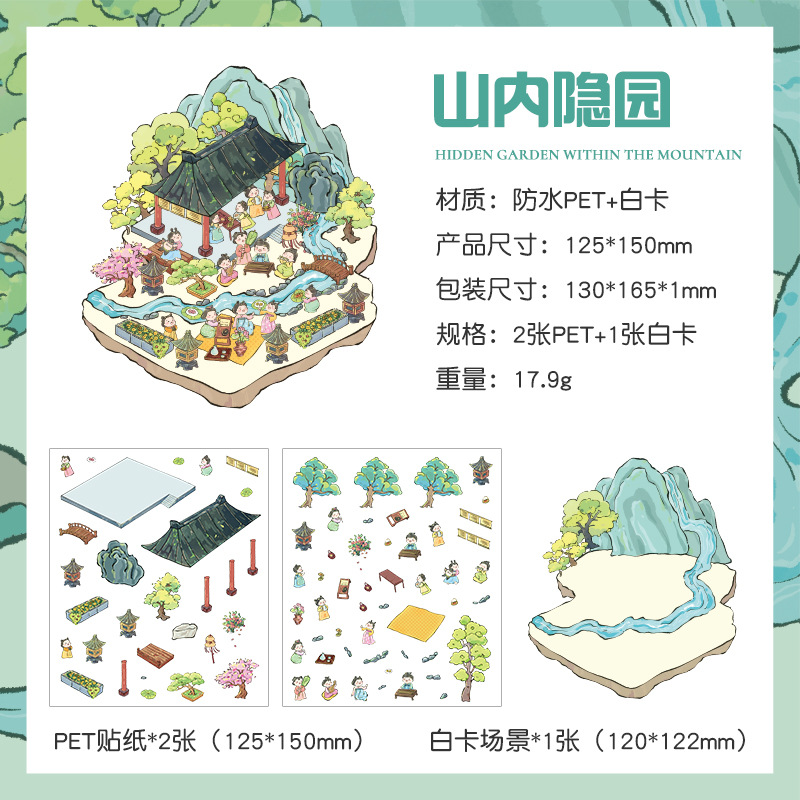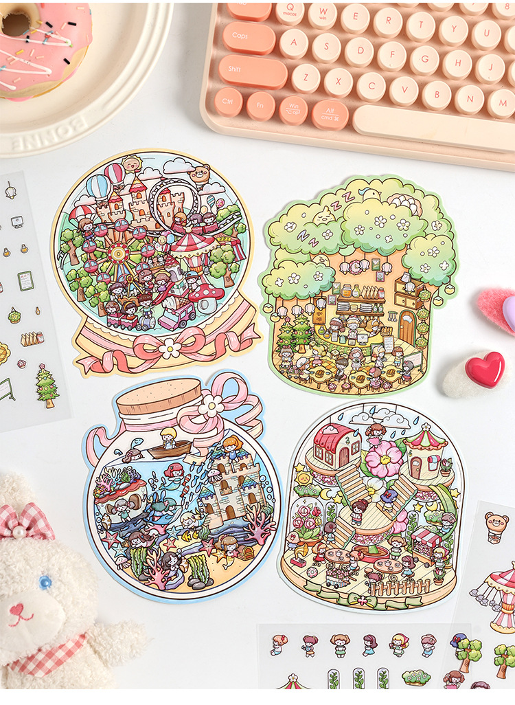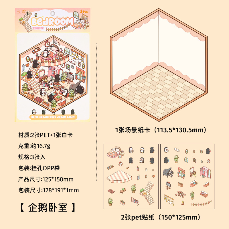 Yuezhen 판타지 스테레오 스티커 3d 조경 스티커 국경 만화 어린이 스티커 조경 오두막 스티커