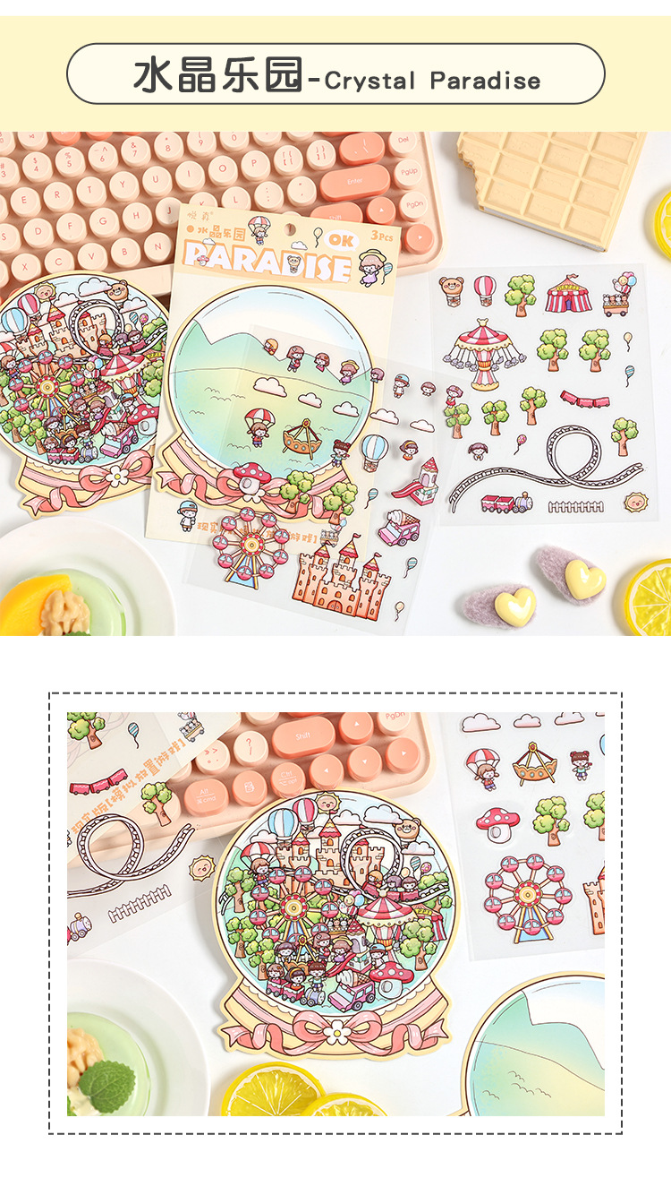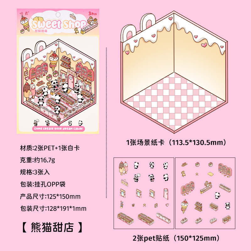 Yuezhen 판타지 스테레오 스티커 3d 조경 스티커 국경 만화 어린이 스티커 조경 오두막 스티커스토어 가기