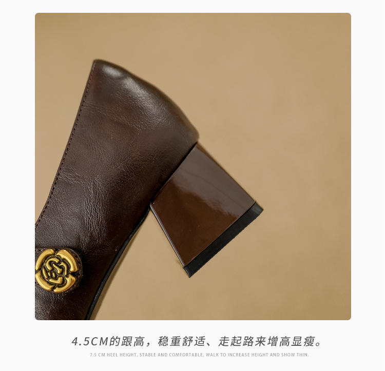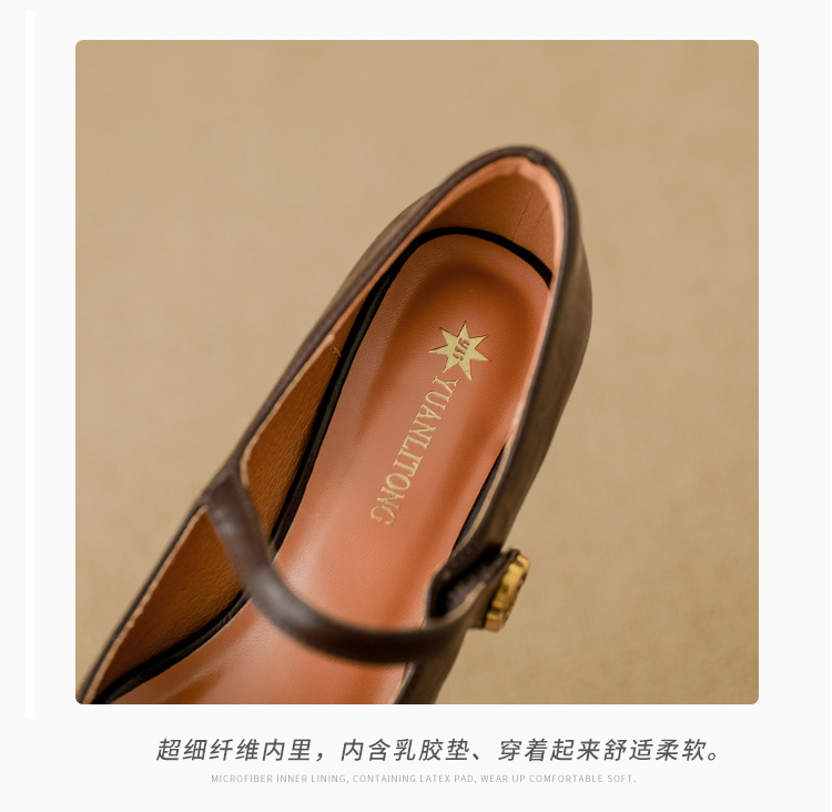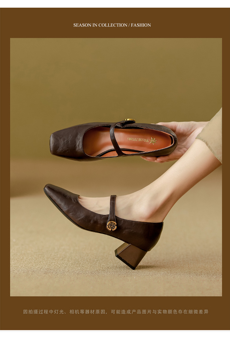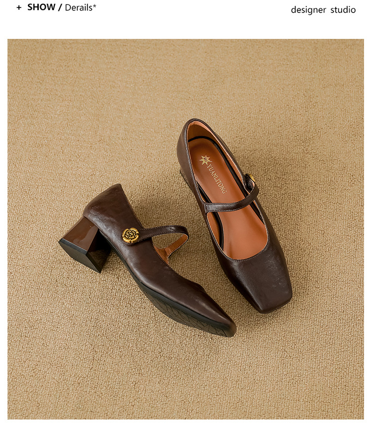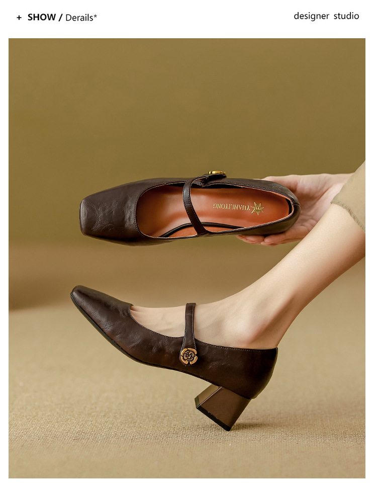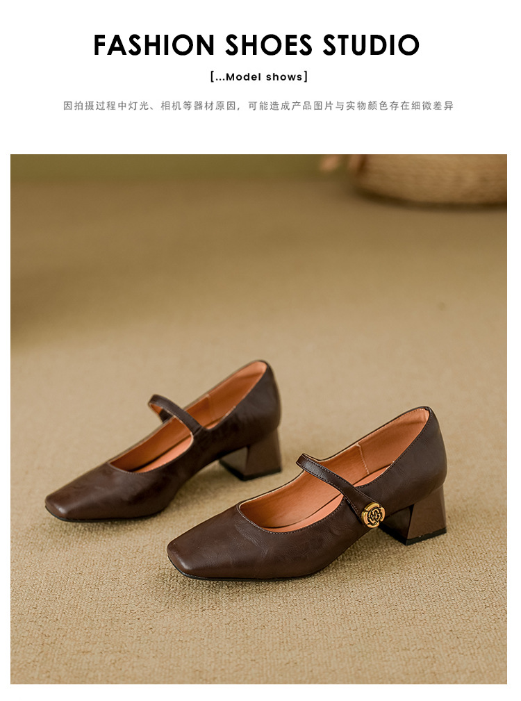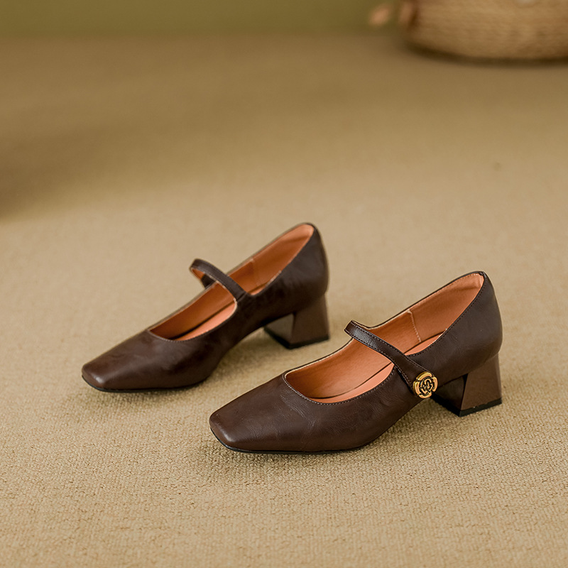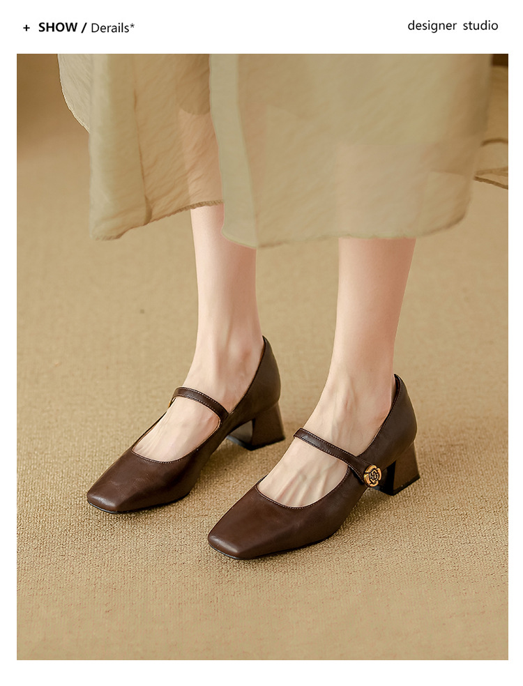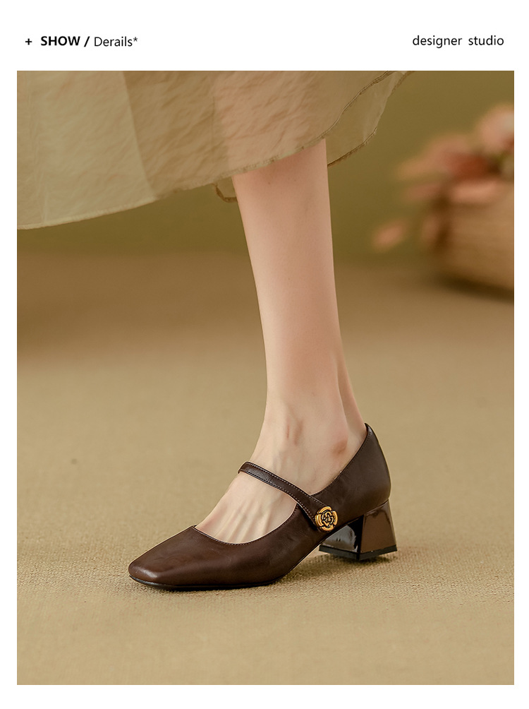 여성용 부드러운 가죽 하이힐, 레트로 메리제인 두꺼운 굽 싱글 슈즈, 여성 패션 2025 봄 신상, 여성용 외출용 고급 스타일스토어 가기