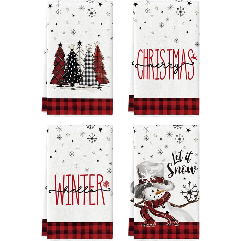 주방 수건 마이크로 화이버 수건 JIT 세대 만화 크리스마스 트리 식기 세척 수건 인쇄 선물 천스토어 가기