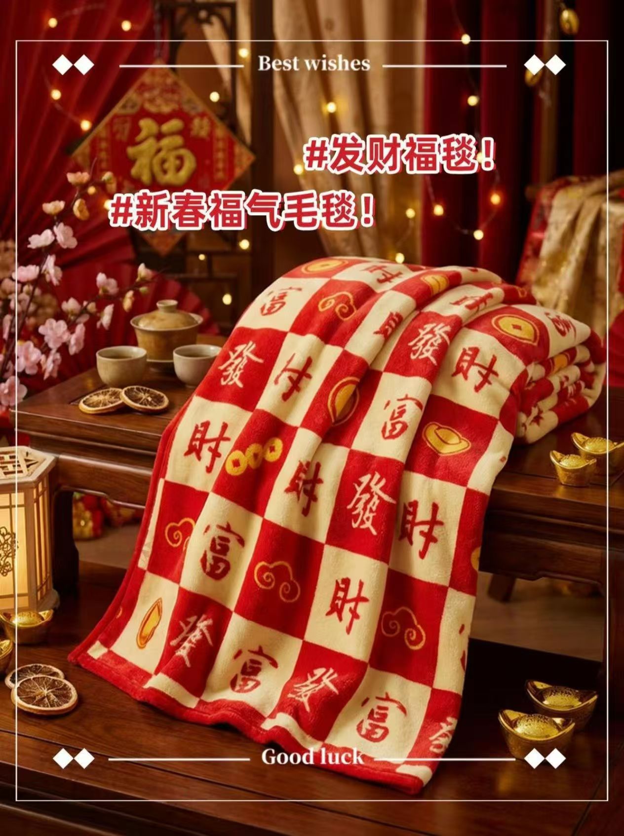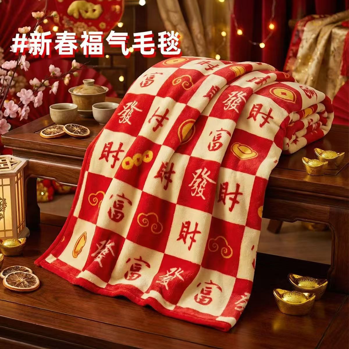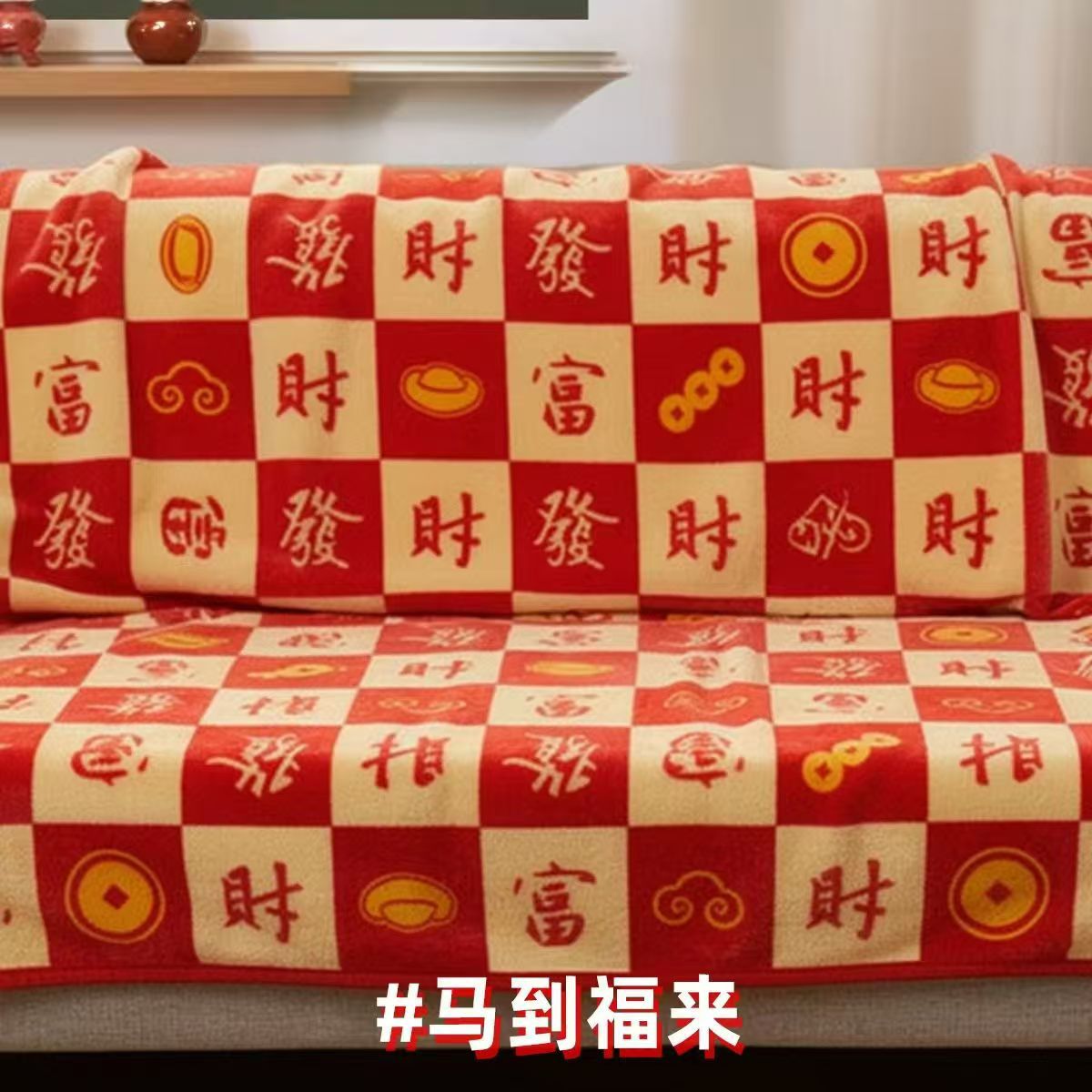 부자 다산 다억 부유신 중국풍 담요 망토 생일 설날 선물 낮잠 담요 숄