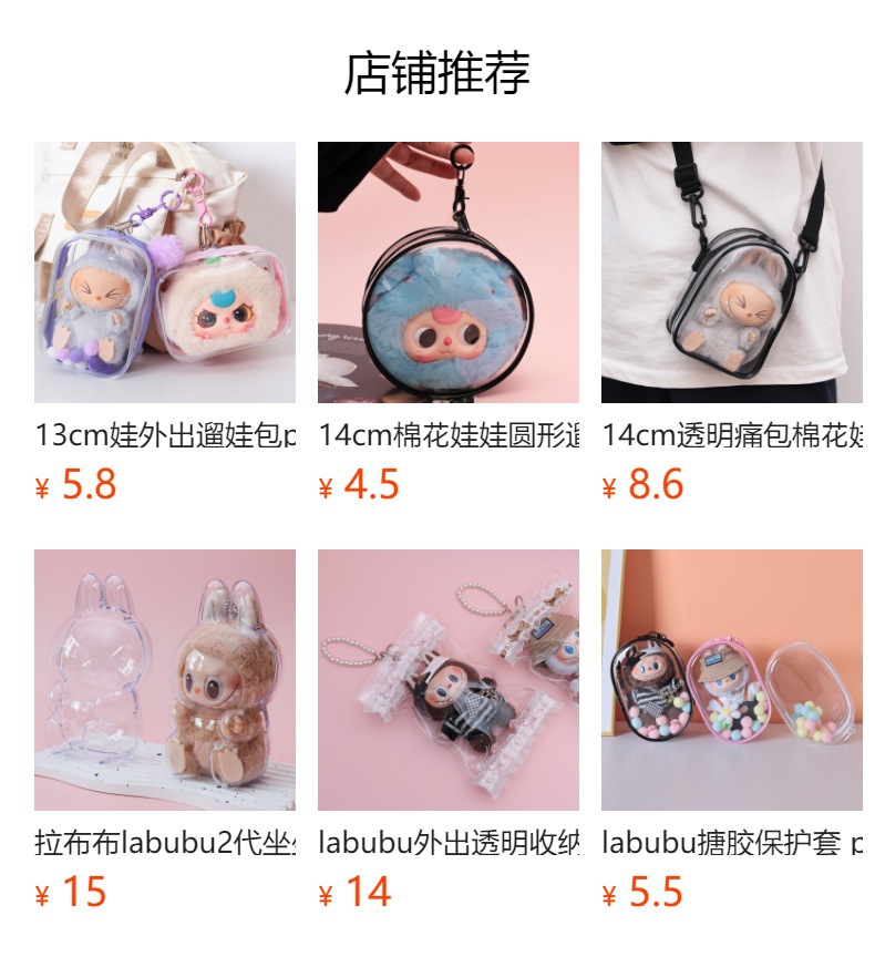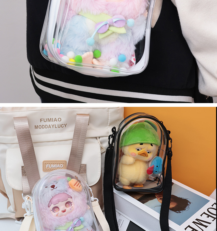 18cm 크로스바디 수납 방진 보호 커버, 투명 외출용 열쇠고리 가방, 인형 가방, 두꺼운 가방스토어 가기
