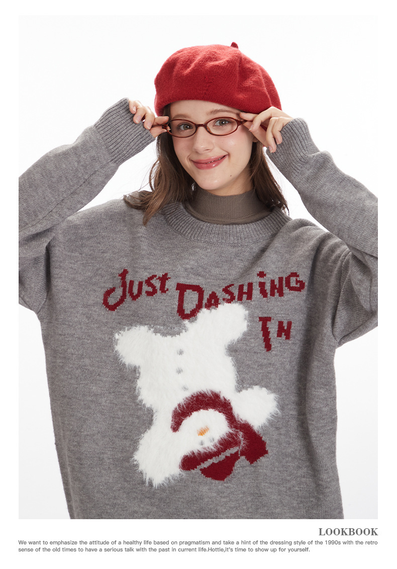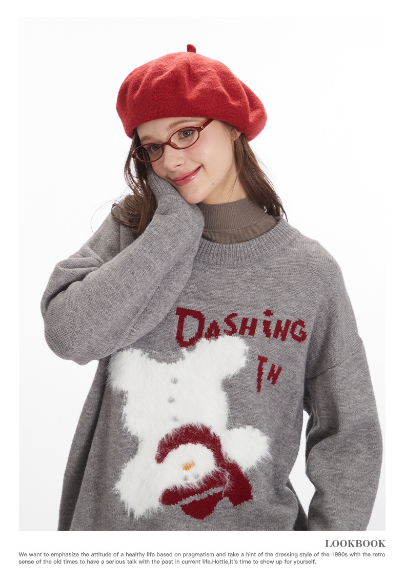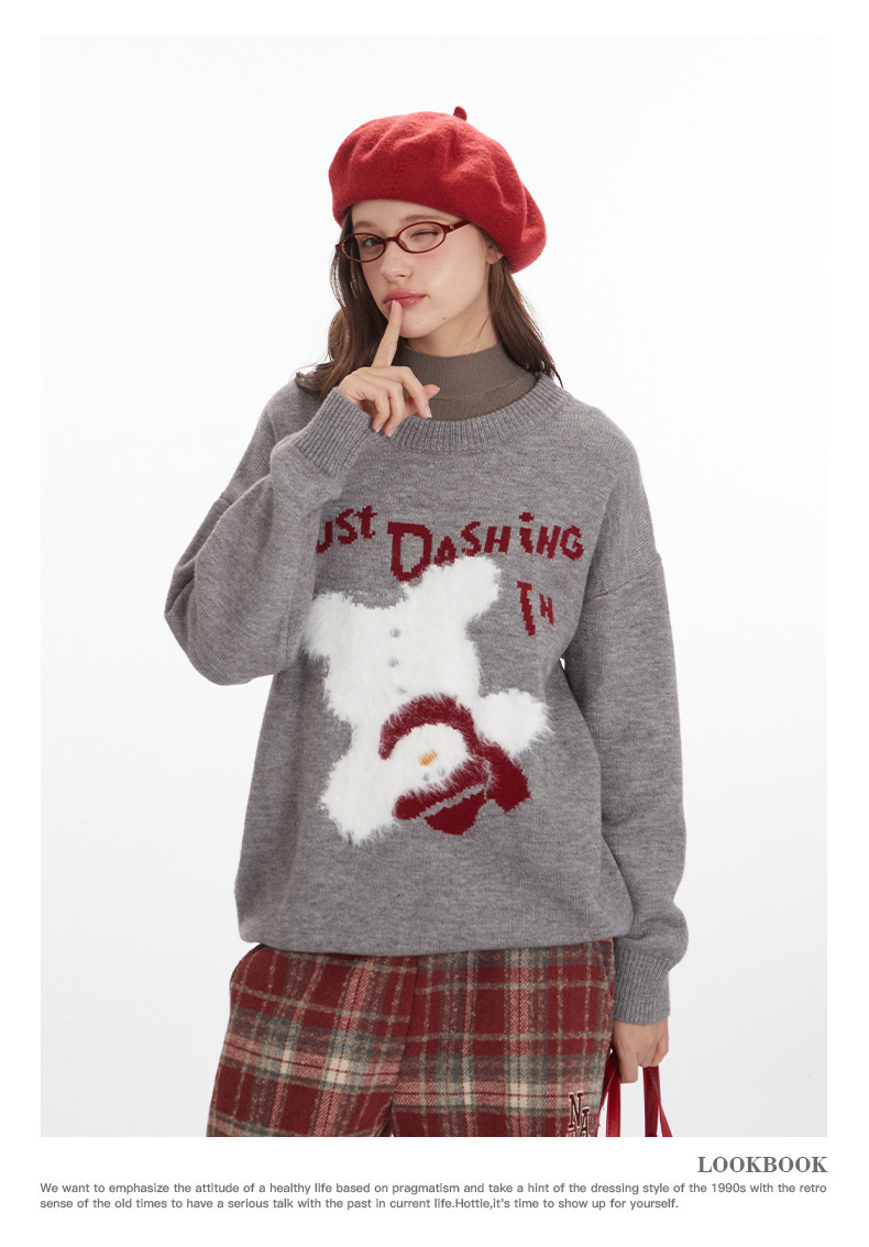 HeyHenry 유럽과 미국의 편지 디자인 만화 스웨터 여성의 크루 넥 풀오버 탑 느슨한 가을과 겨울 자카드 니트 남성스토어 가기