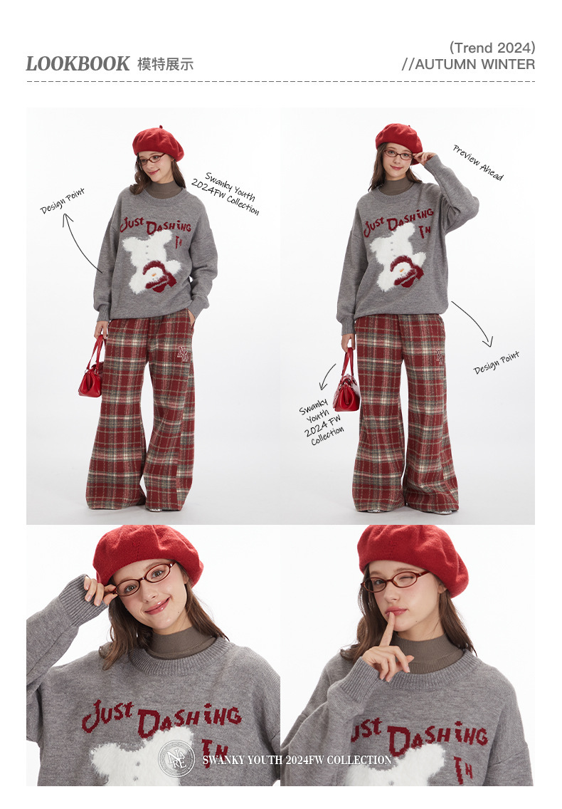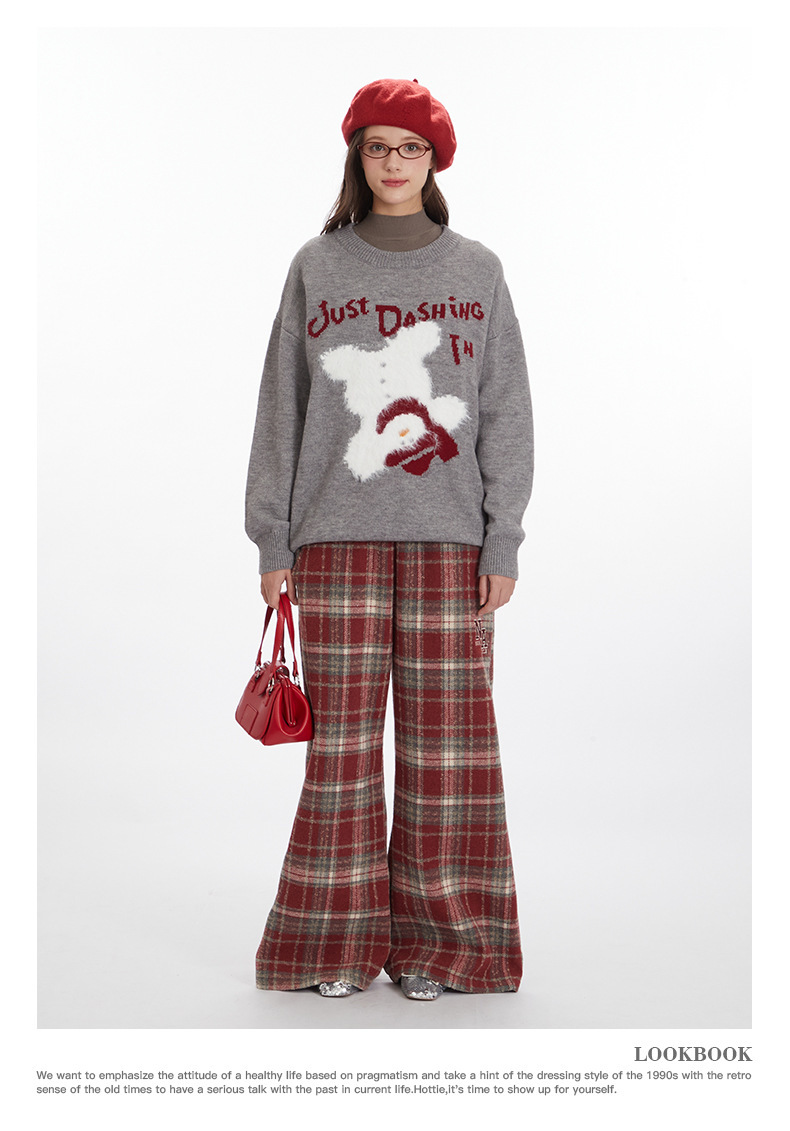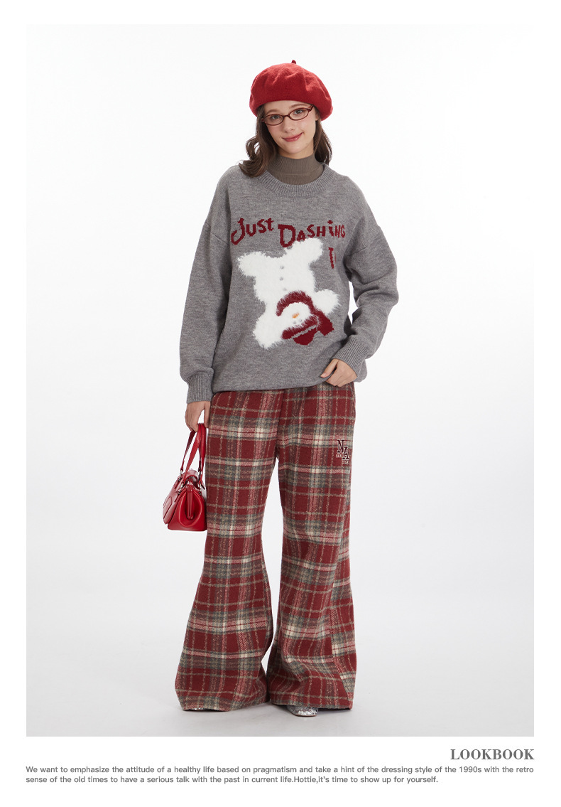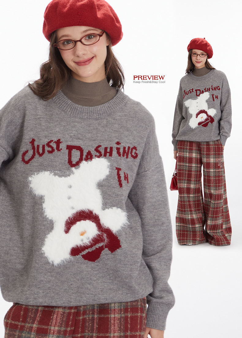 HeyHenry 유럽과 미국의 편지 디자인 만화 스웨터 여성의 크루 넥 풀오버 탑 느슨한 가을과 겨울 자카드 니트 남성스토어 가기