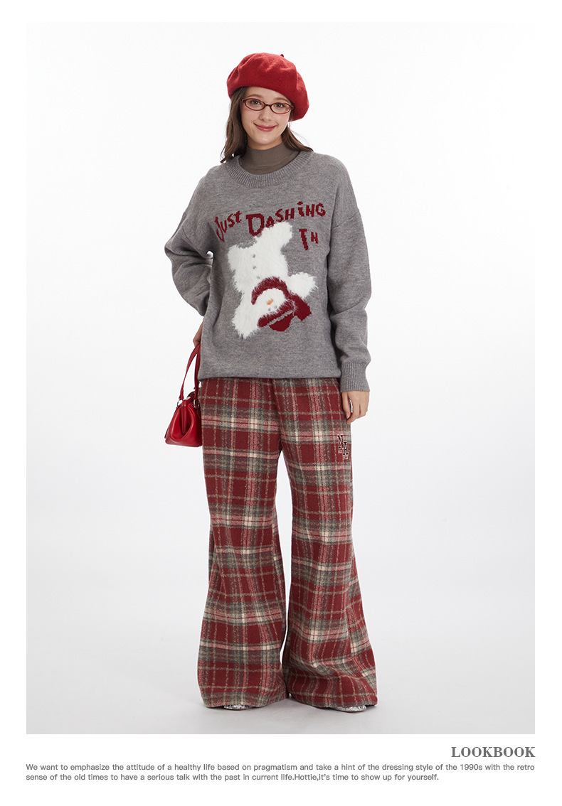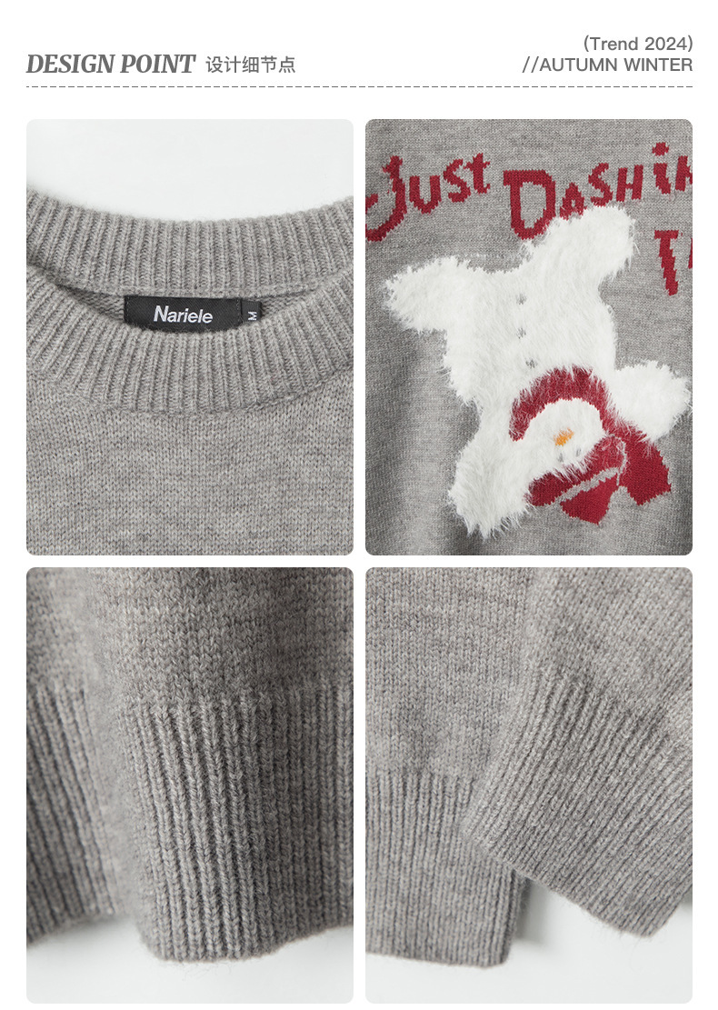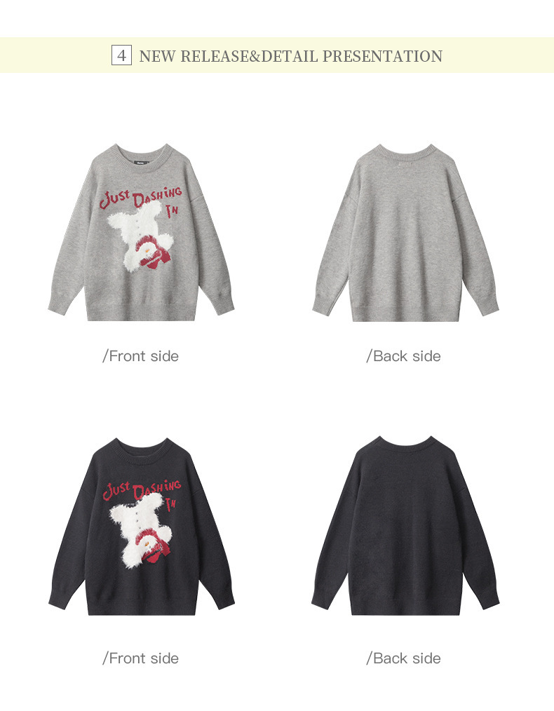 HeyHenry 유럽과 미국의 편지 디자인 만화 스웨터 여성의 크루 넥 풀오버 탑 느슨한 가을과 겨울 자카드 니트 남성
