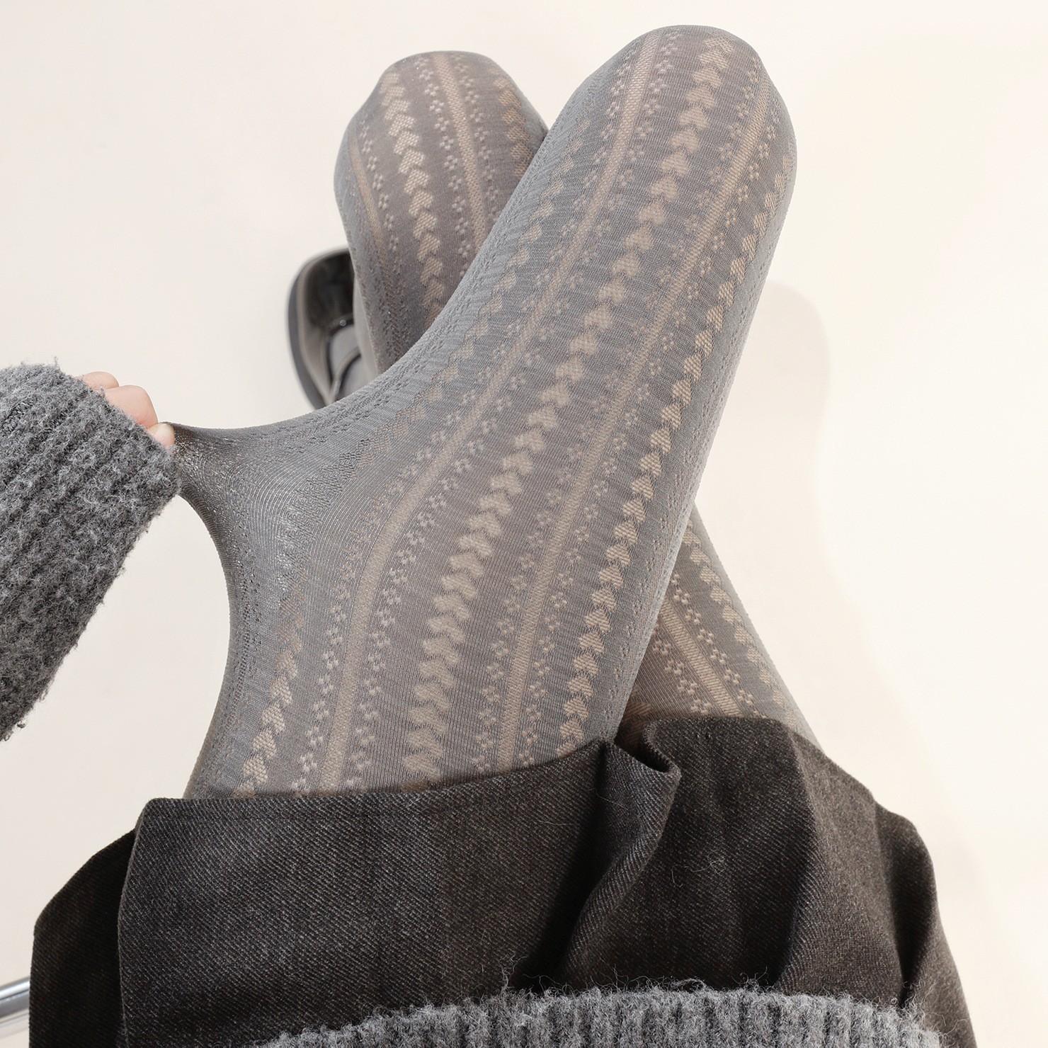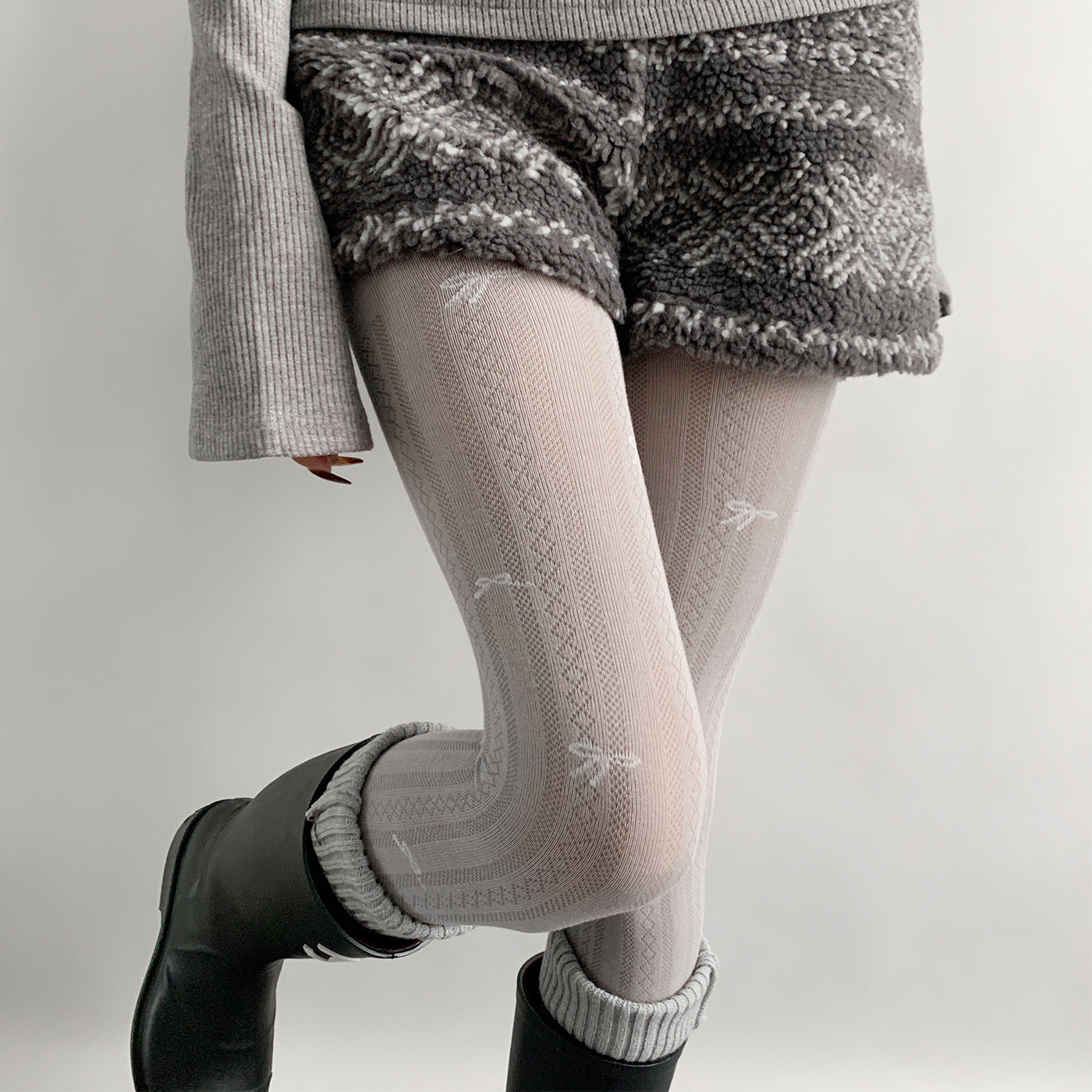 가을 겨울 여성용 레트로 다이아몬드 패턴 코튼 레깅스, 고탄력 속이 비치는 아우터용 레깅스, 그레이 보온 레깅스