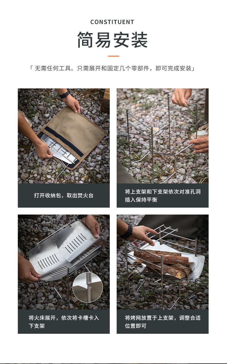 Koman SOLO-A4 야외 휴대용 난방 모닥불 접이식 화덕 캠핑 장작 스테인레스 스틸 바베큐 그릴