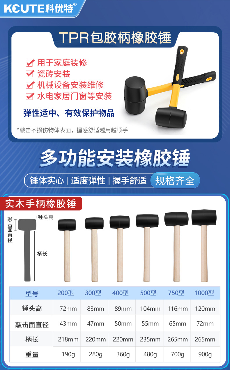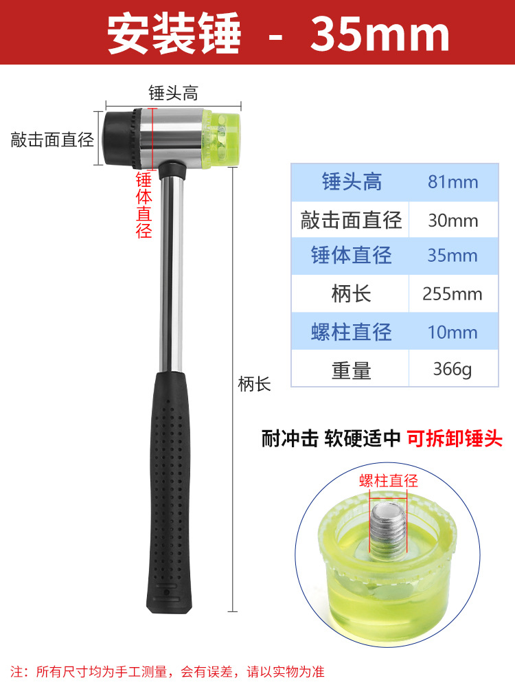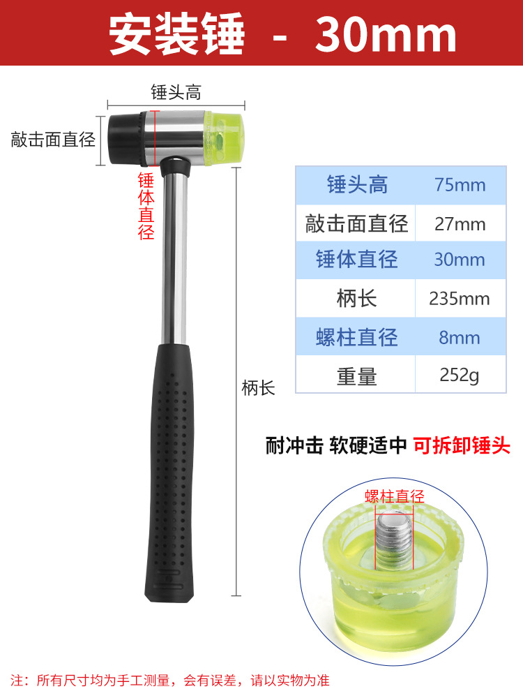 대형 고무 망치 작은 망치 고무 망치 노킹 바닥 타일 장착 망치 플라스틱 단단한 고무 공구 해머스토어 가기