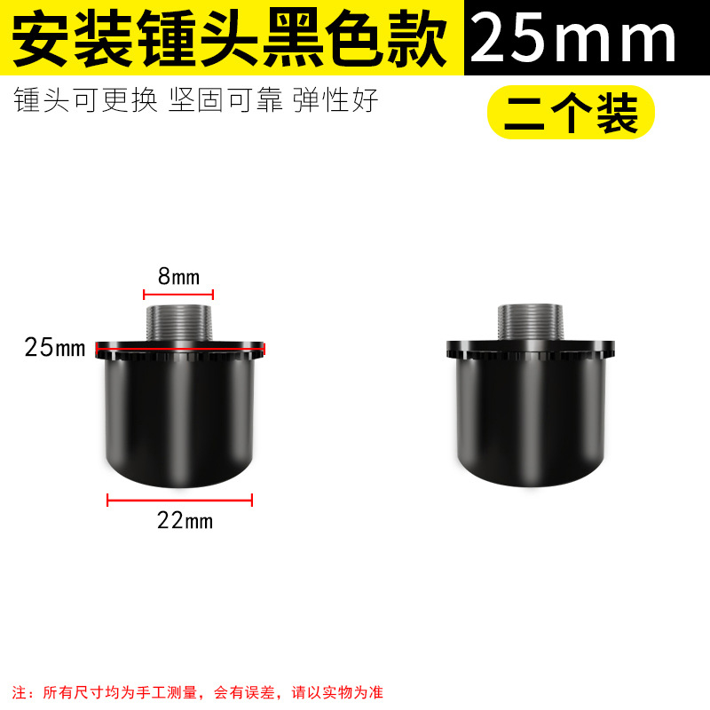 • 설치 해머 교체 헤드 - 검정색 25mm 2팩