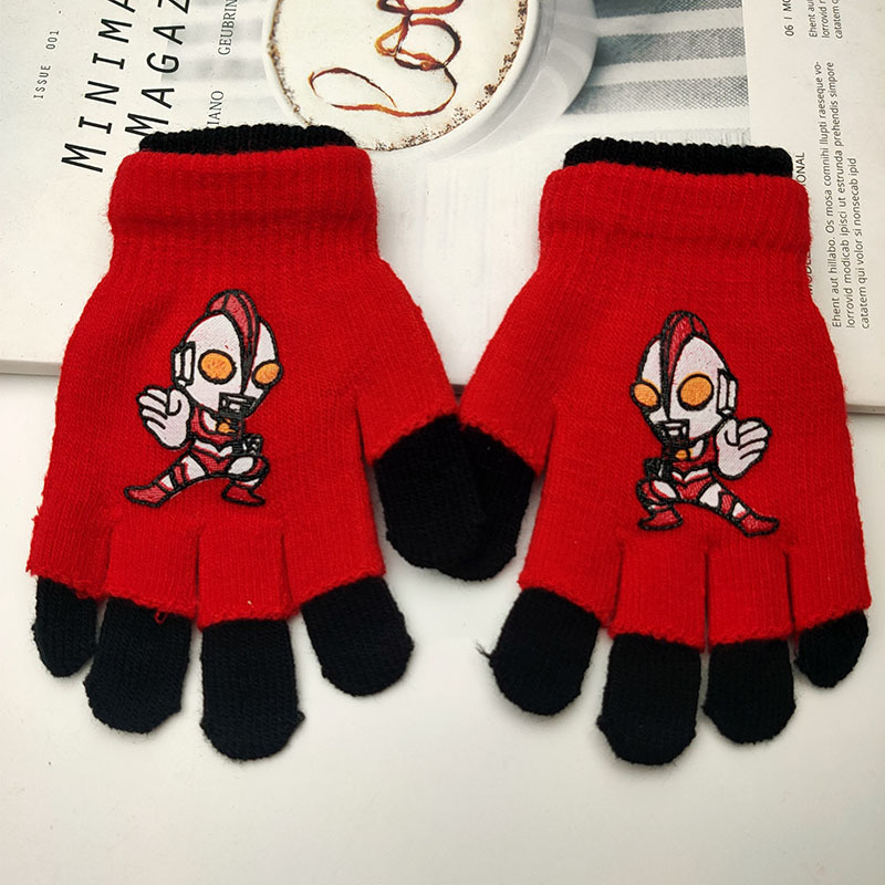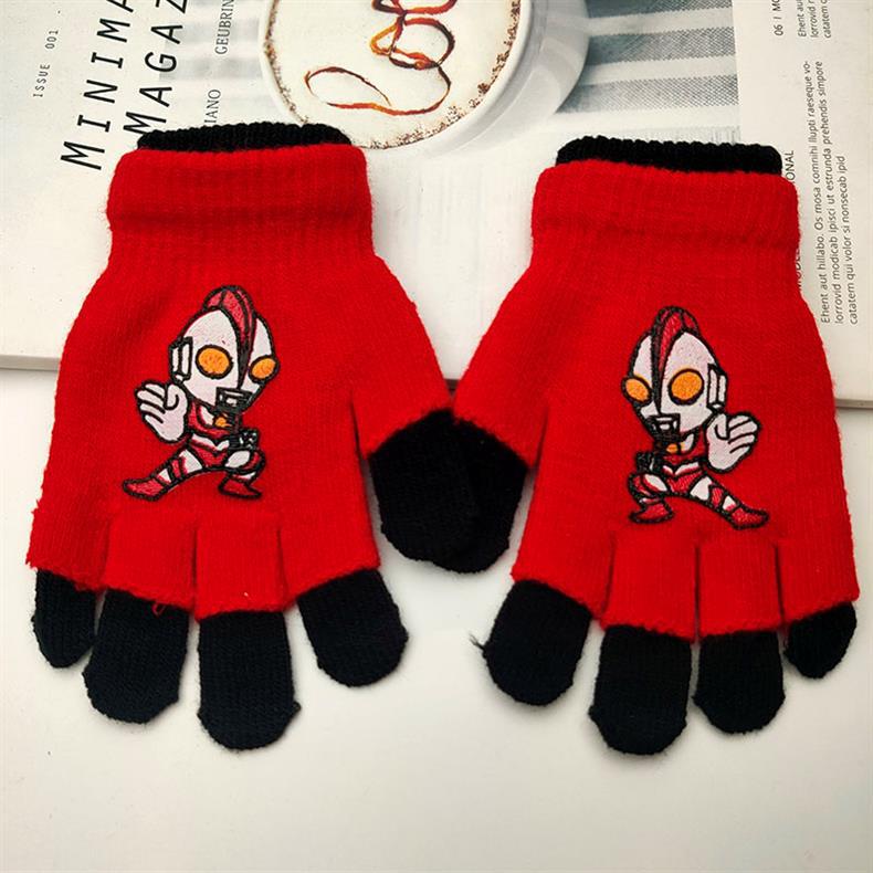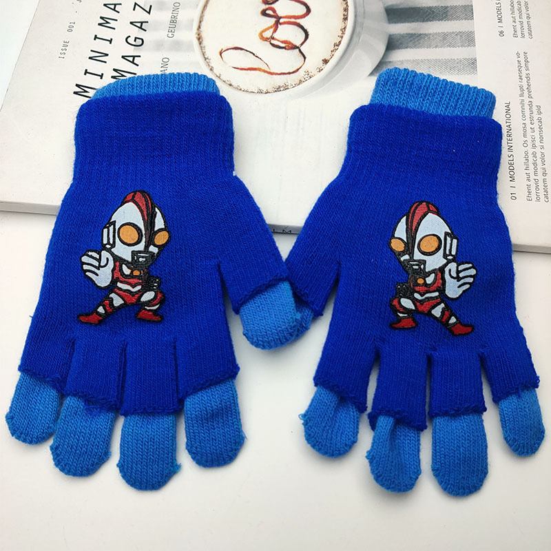 어린이 더블 장갑 소년의 따뜻한 다섯 손가락 세트 소녀 학생 아기 스파이더 맨 울트라 맨 만화 하프 핑거 세트스토어 가기