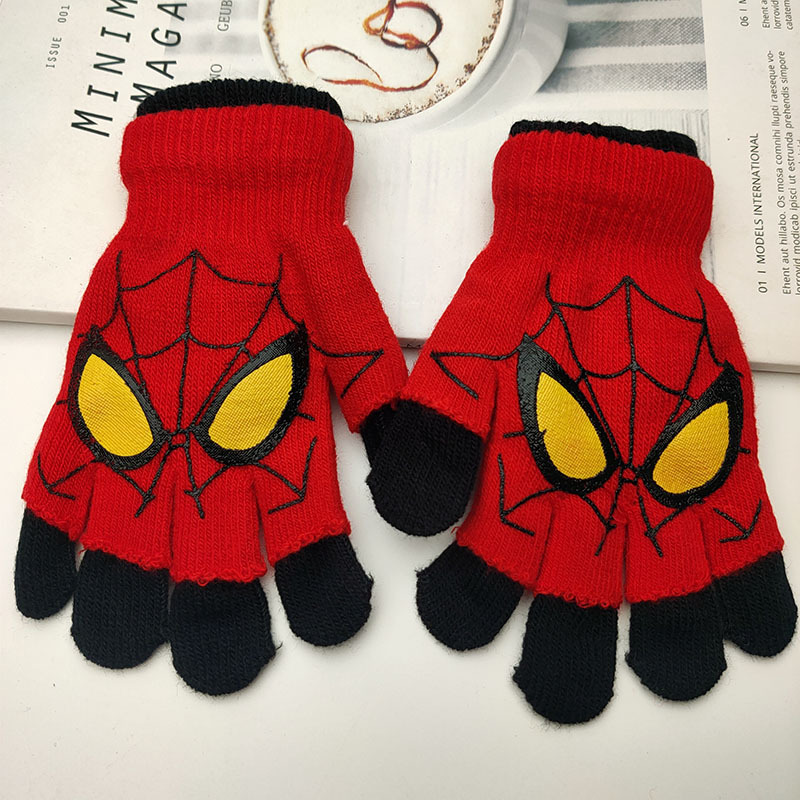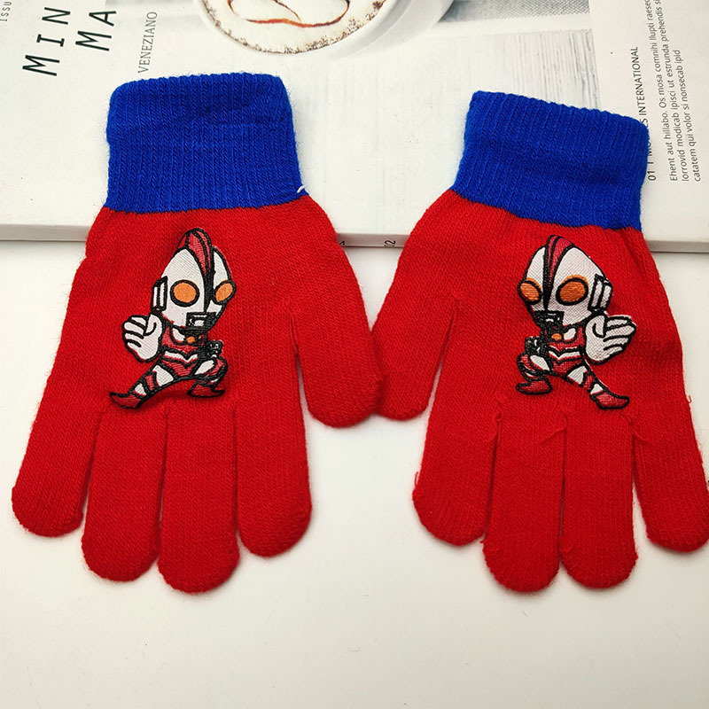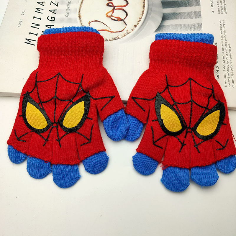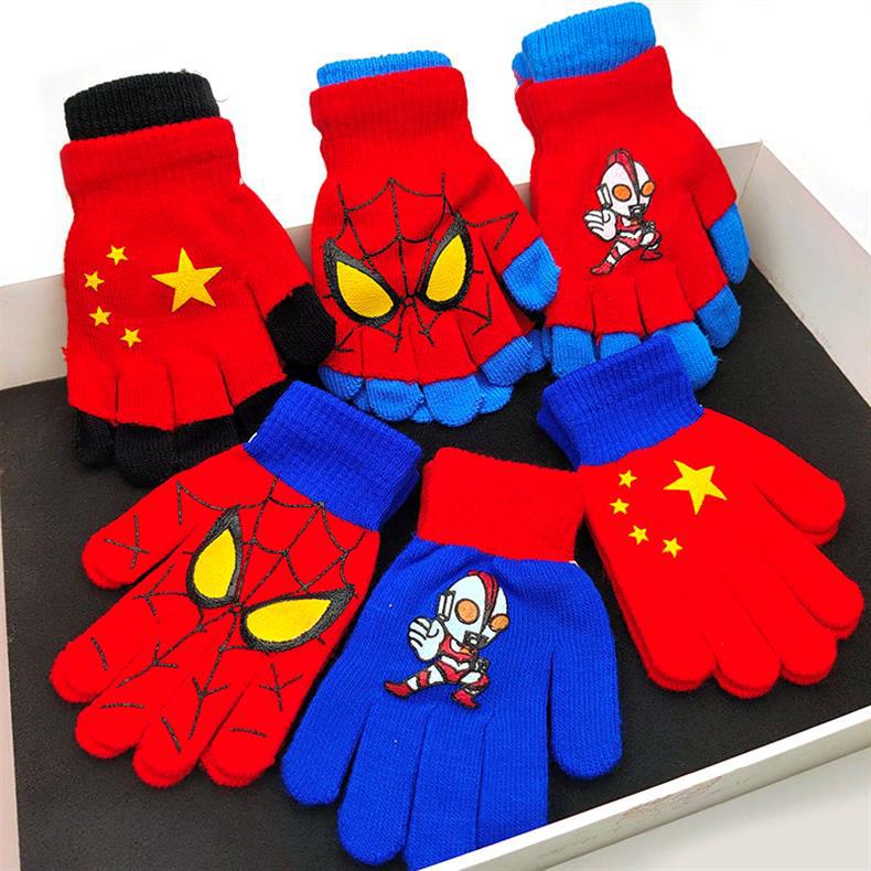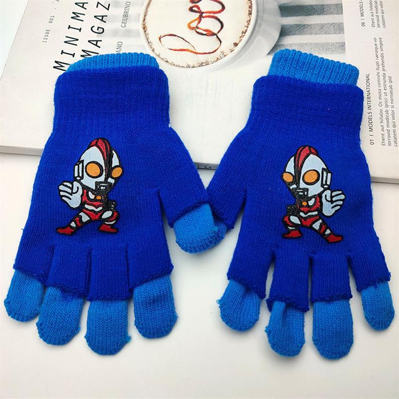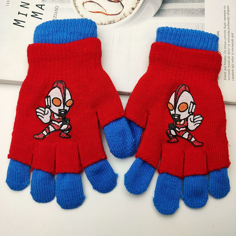 어린이 더블 장갑 소년의 따뜻한 다섯 손가락 세트 소녀 학생 아기 스파이더 맨 울트라 맨 만화 하프 핑거 세트