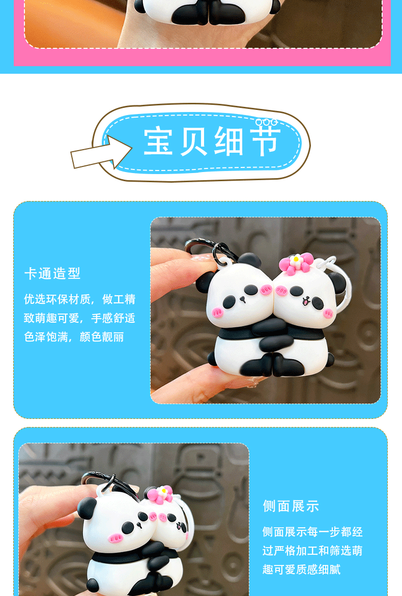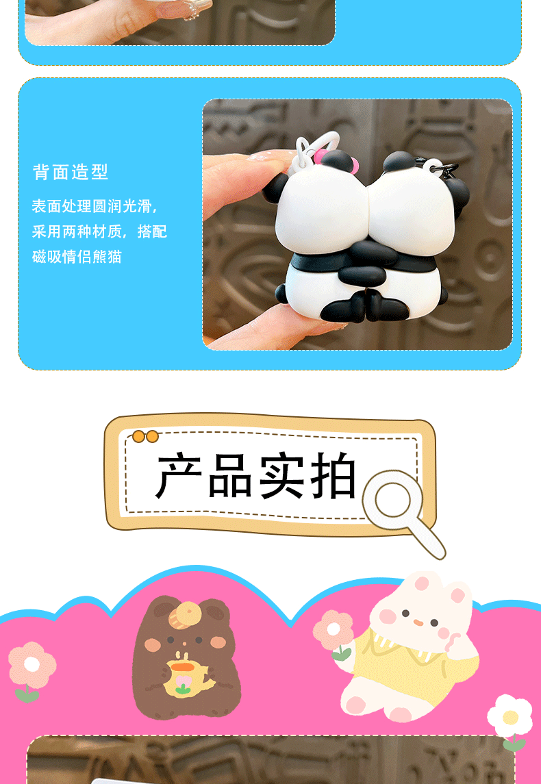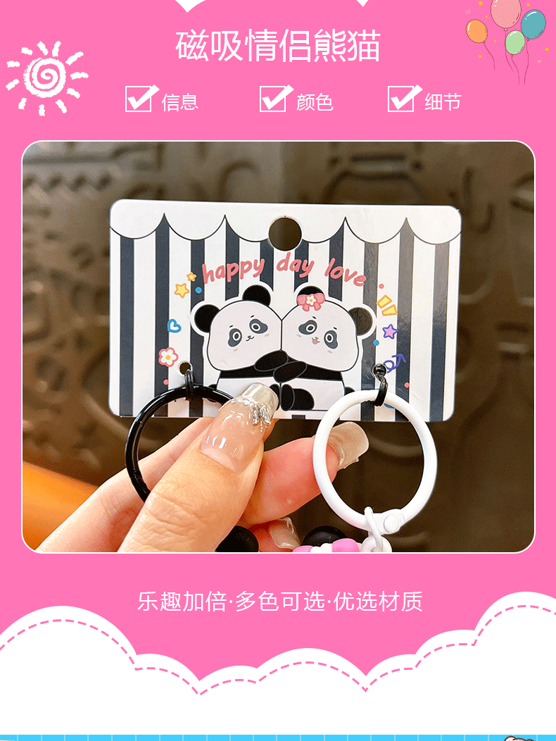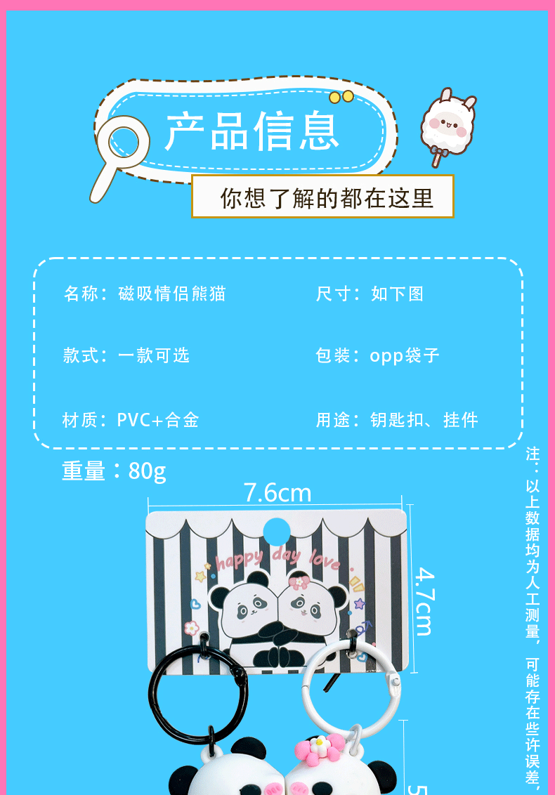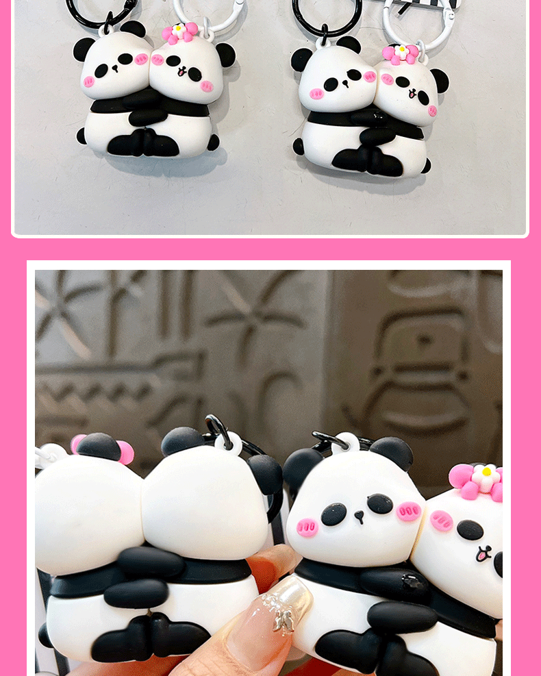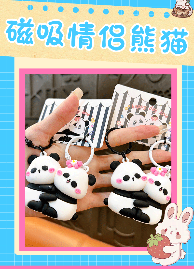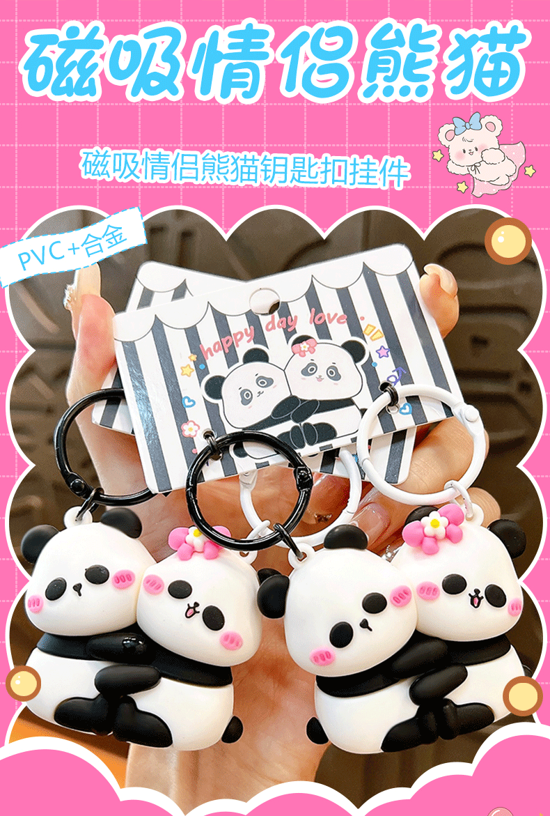 창조적 인 팬더 쌍 키 체인 펜던트 귀여운 커플 가방 액세서리 만화 자기 장난감 인형 작은 선물