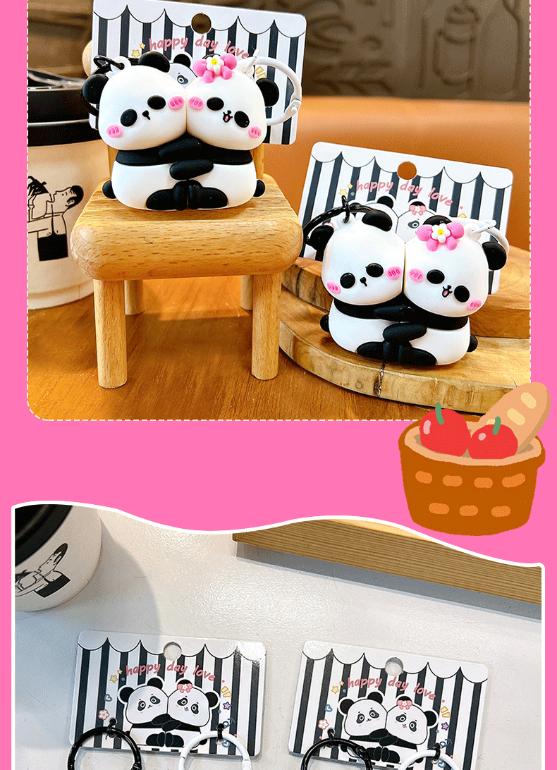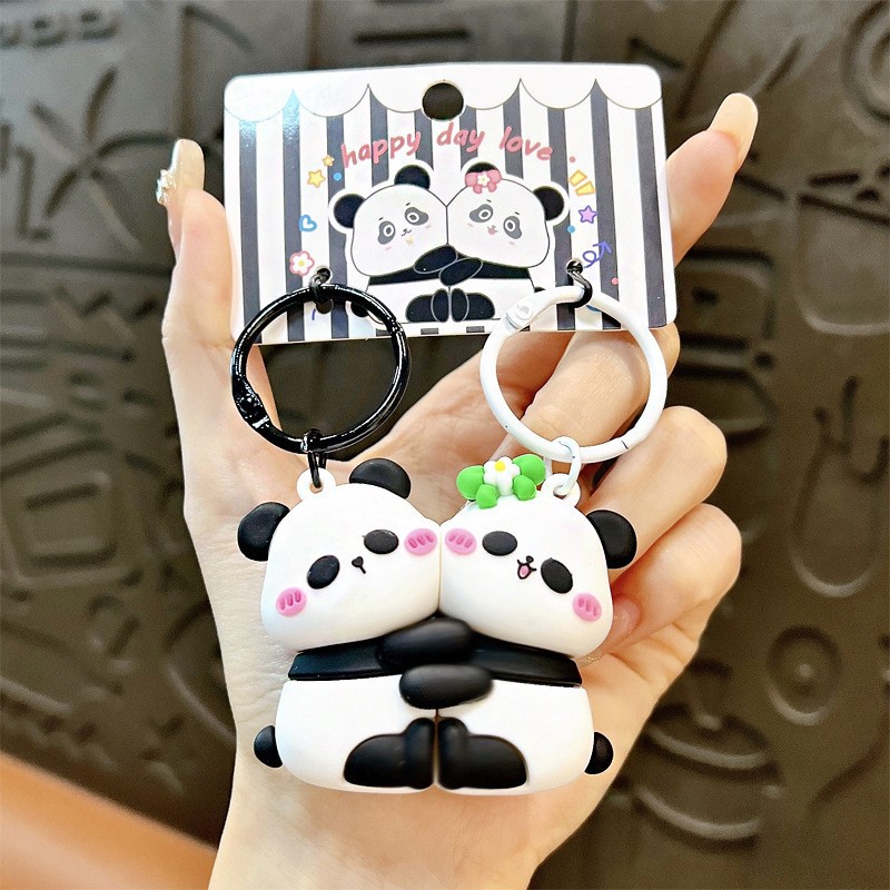창조적 인 팬더 쌍 키 체인 펜던트 귀여운 커플 가방 액세서리 만화 자기 장난감 인형 작은 선물스토어 가기