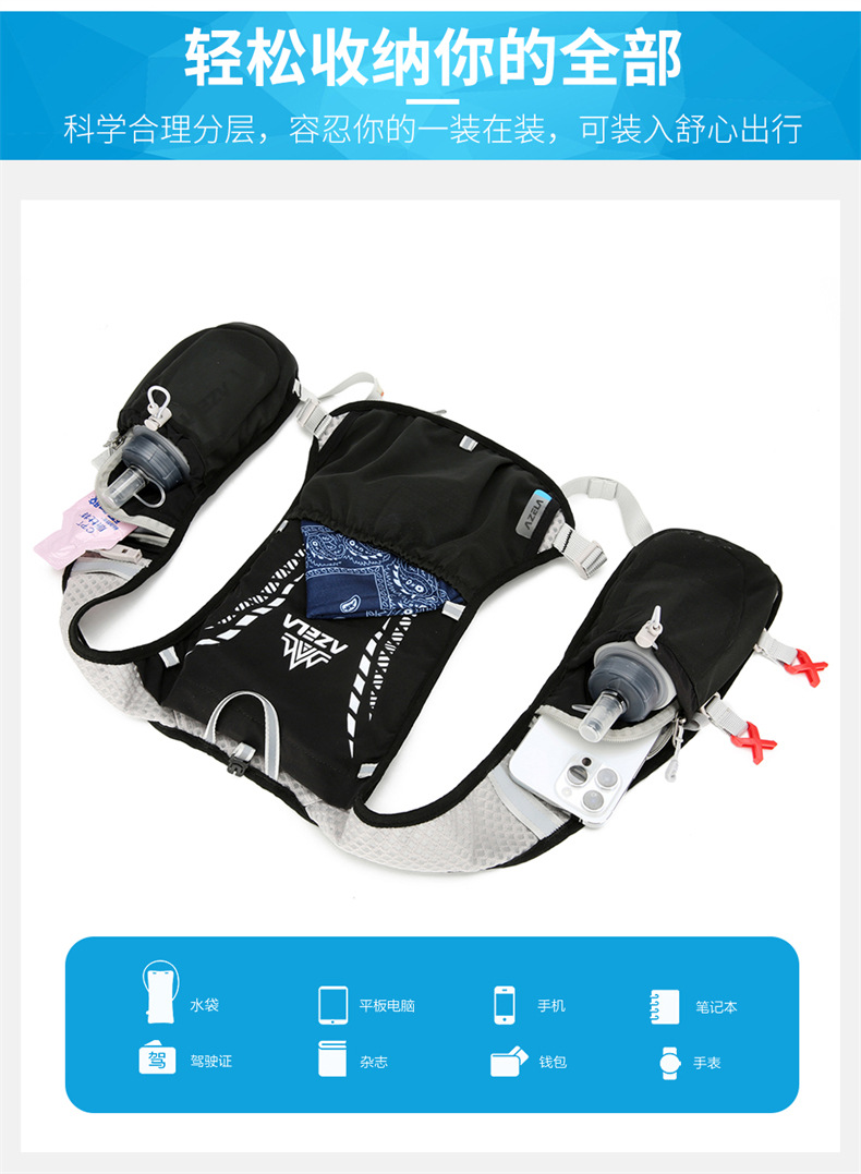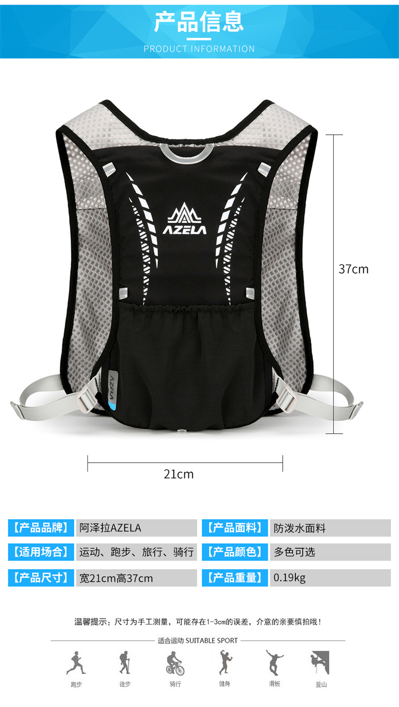 아제라 아웃도어 스포츠 통기성 경량 조끼 가방 남녀공용 하이킹 배낭 다기능 물병 가방