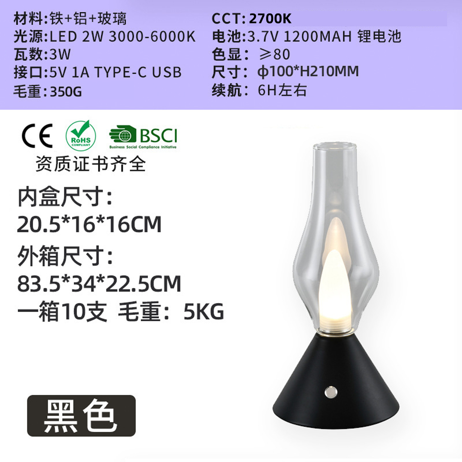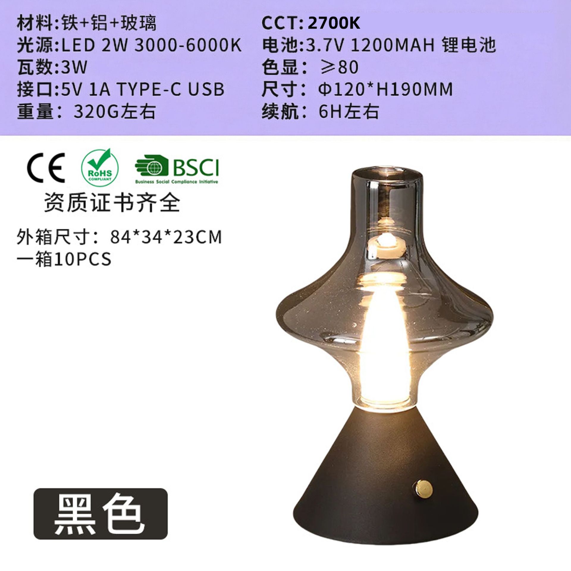 바 커피 레스토랑 북유럽 간단한 복고풍 충전식 유리 테이블 램프 디자이너 밤 빛 충전식 장식 테이블 램프