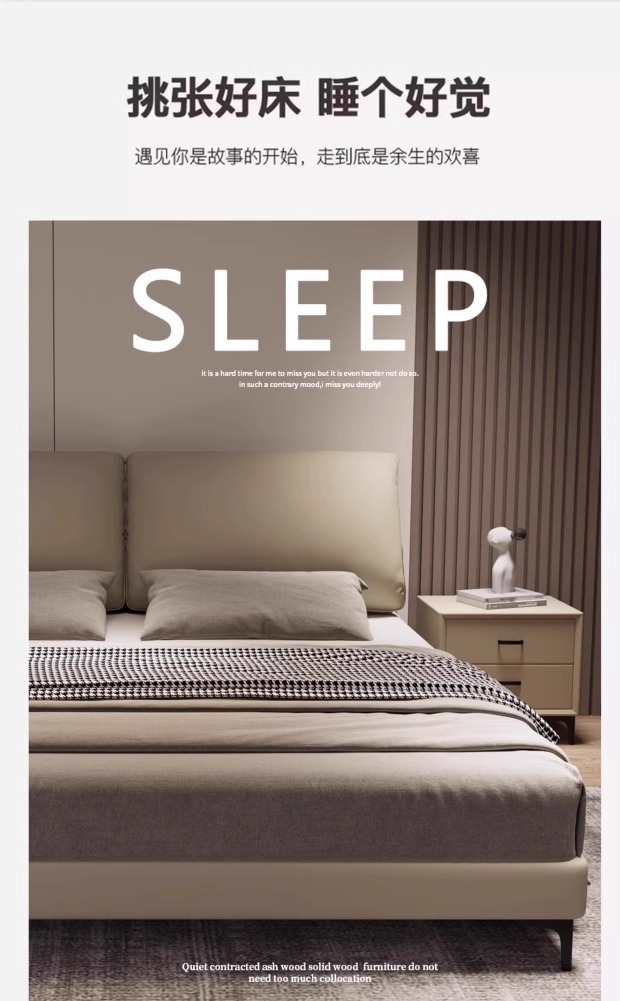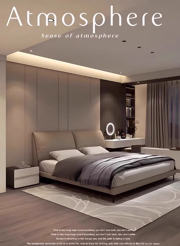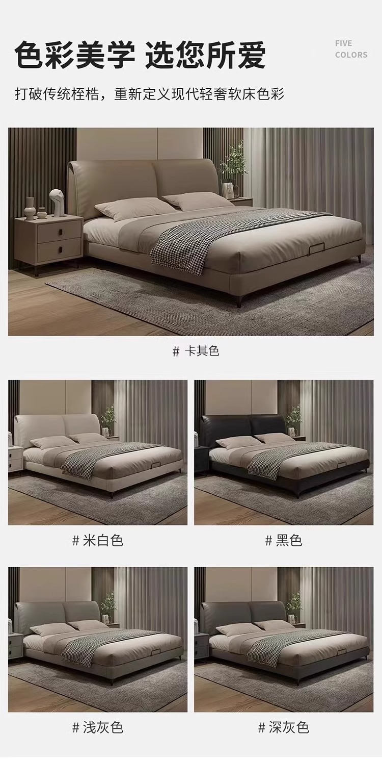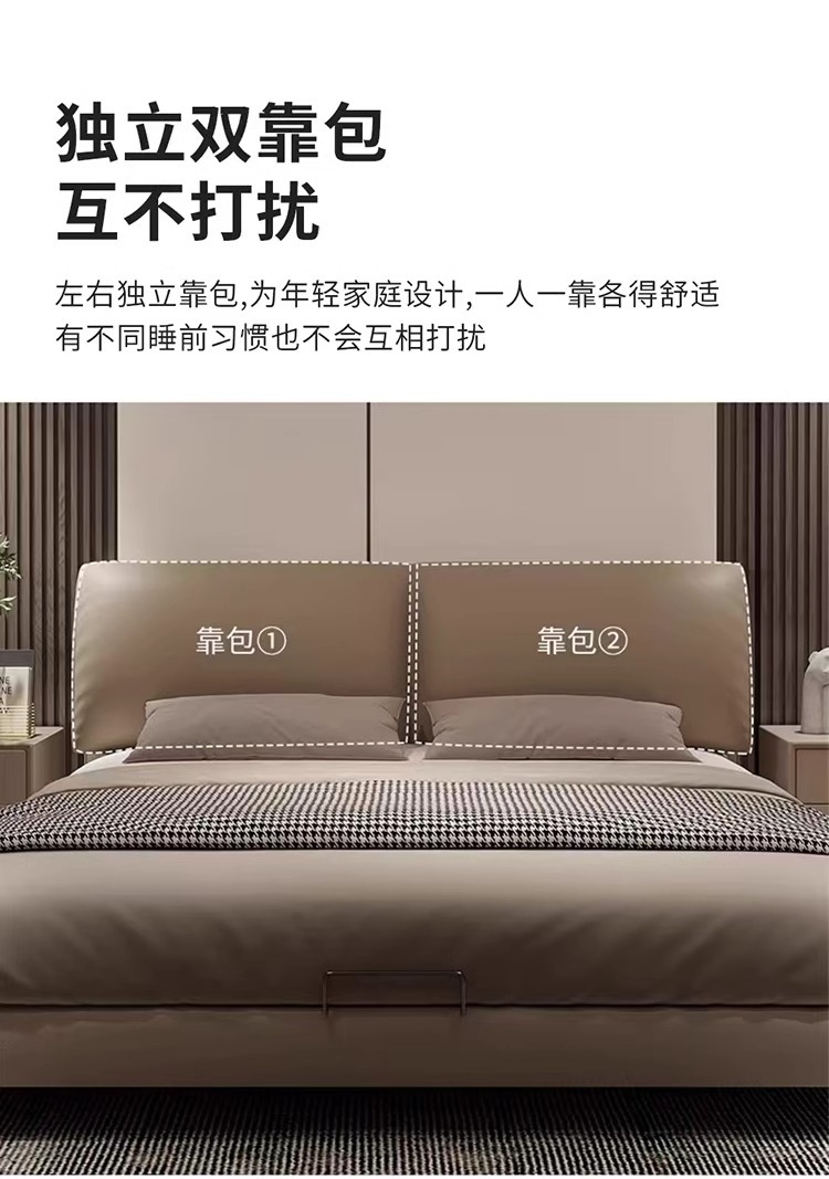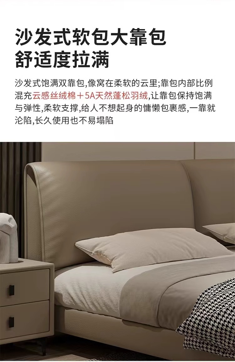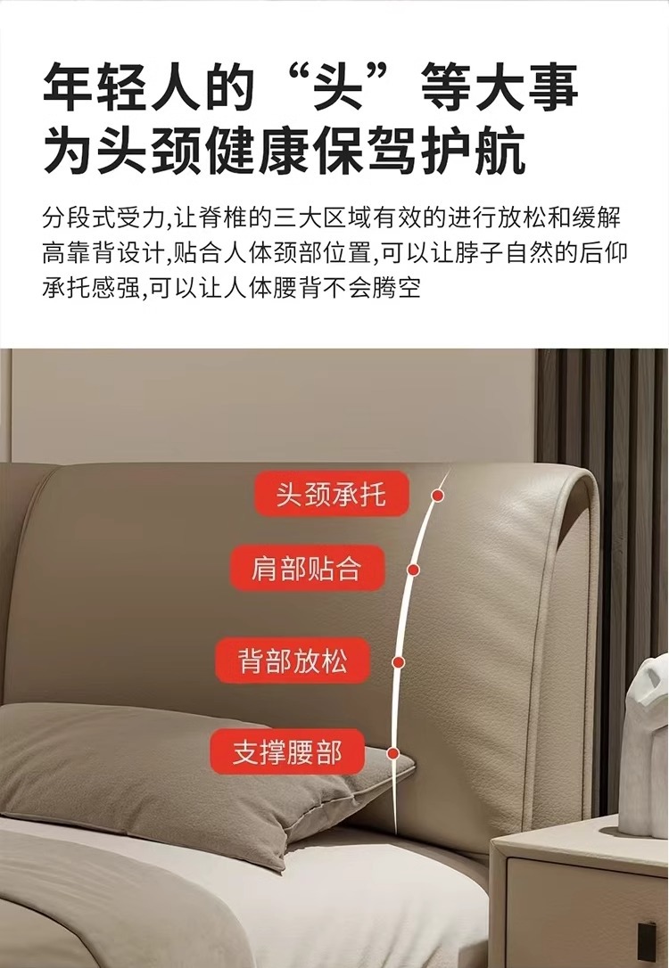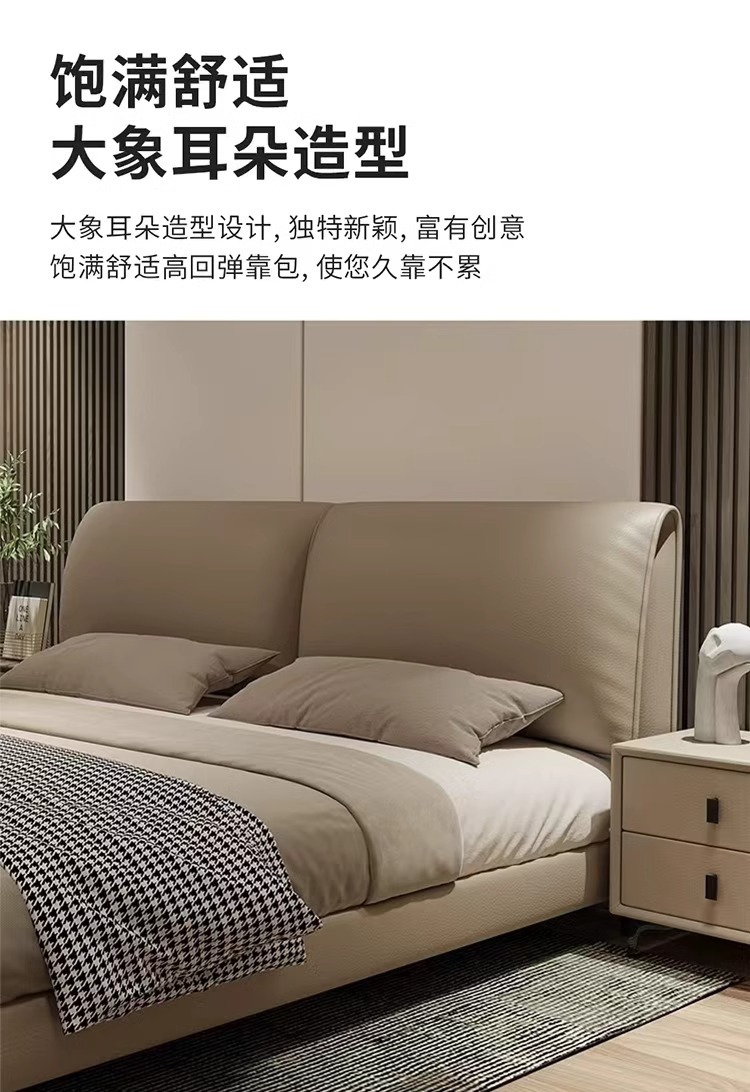 1층 천연가죽 침대, 마스터룸용 모던 심플 침대, 1.8m 더블 사이즈 소형 가구용 소프트 침대, 중세풍 원목 침대 2m스토어 가기