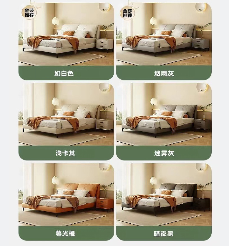 • 싱글 침대 [첫 번째 레이어 작은 노란색 소가죽] + 침대 옆 탁자*1 + 5성 라텍스 매트리스
