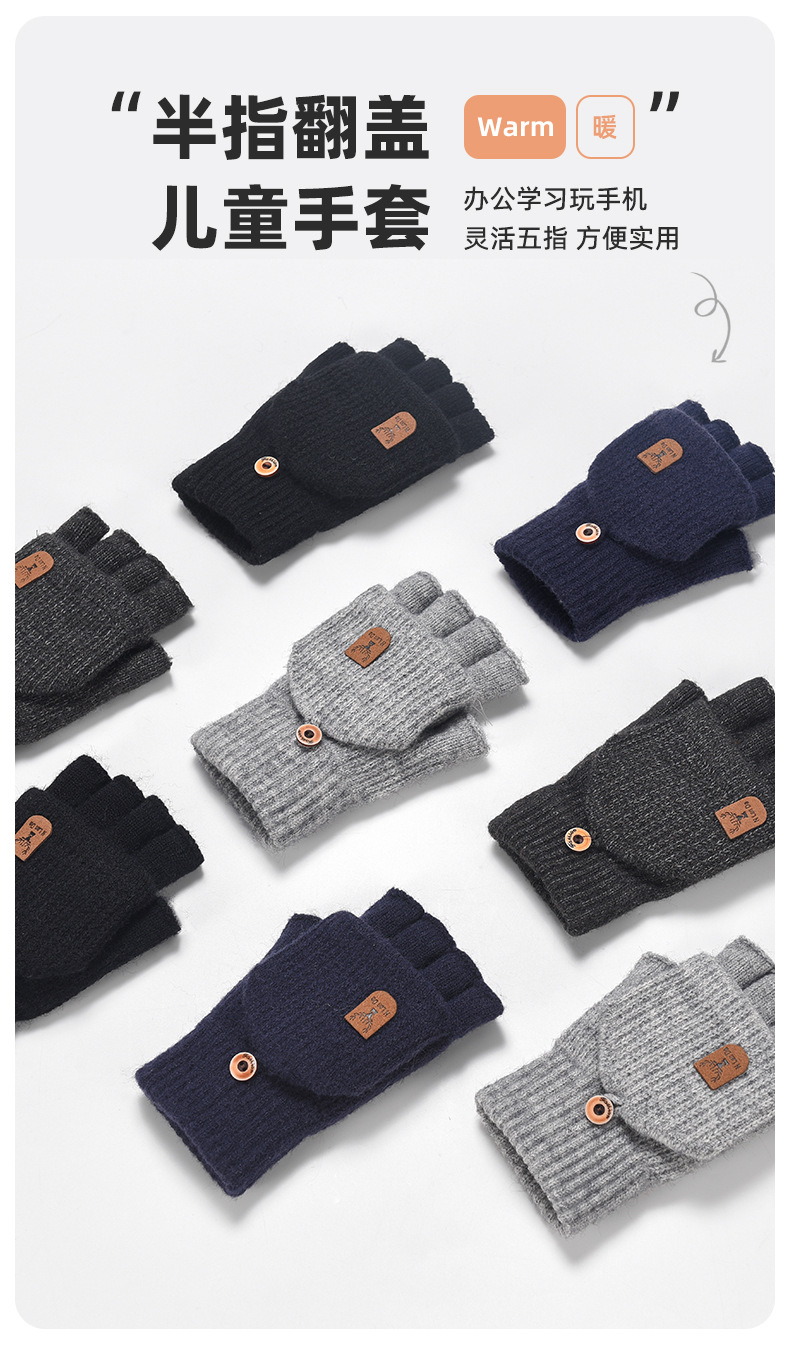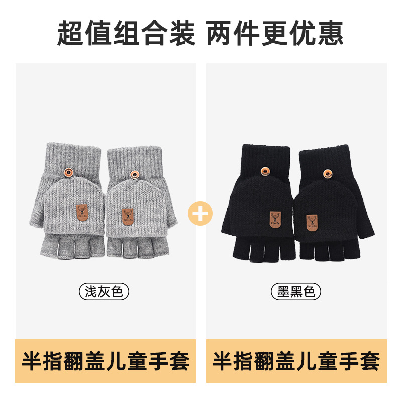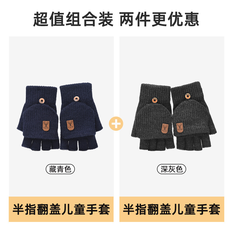 어린이 방한 장갑 겨울 소년의 숙제 플립 커버 반 손가락 기모 따뜻한 장갑 소녀 냉동 방지 다섯 손가락 세트스토어 가기