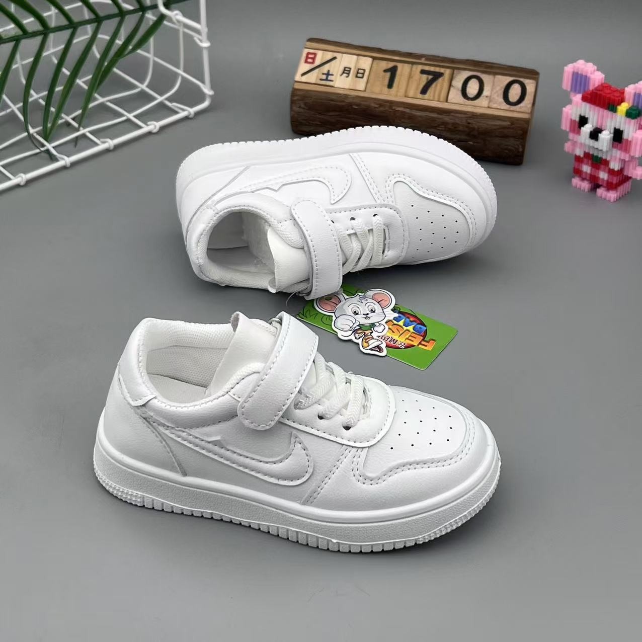 남성과 여성의 작은 흰색 신발 어린이 신발 2025 새로운 가을 운동화 가죽 벨크로 패션 어린이 보드 신발 운동화스토어 가기