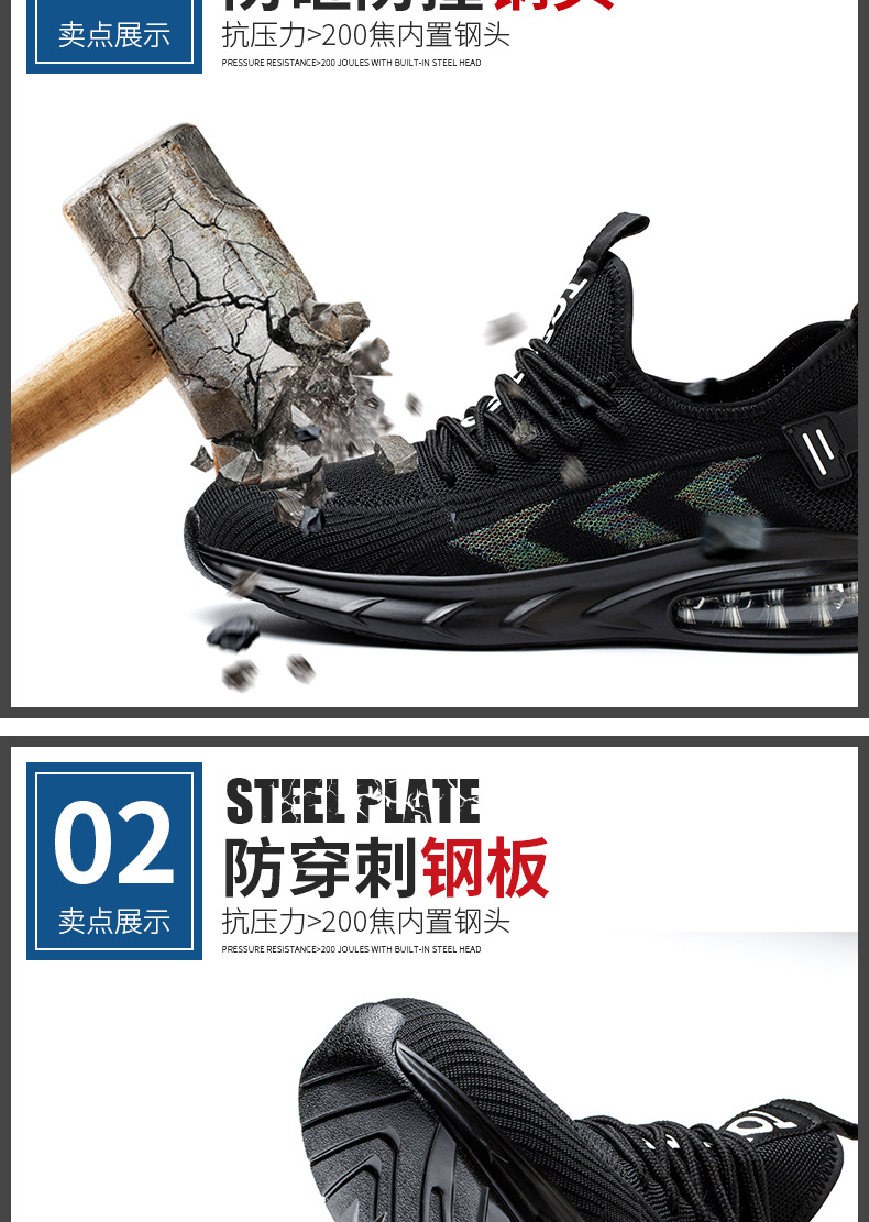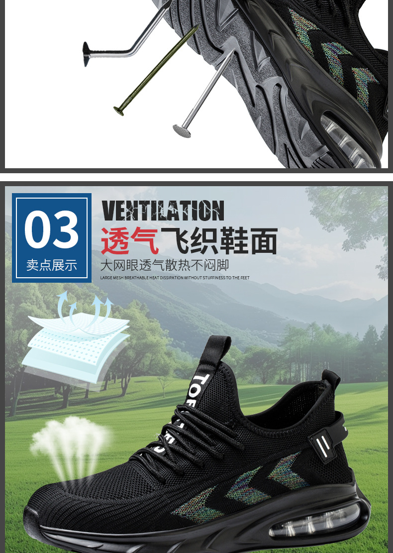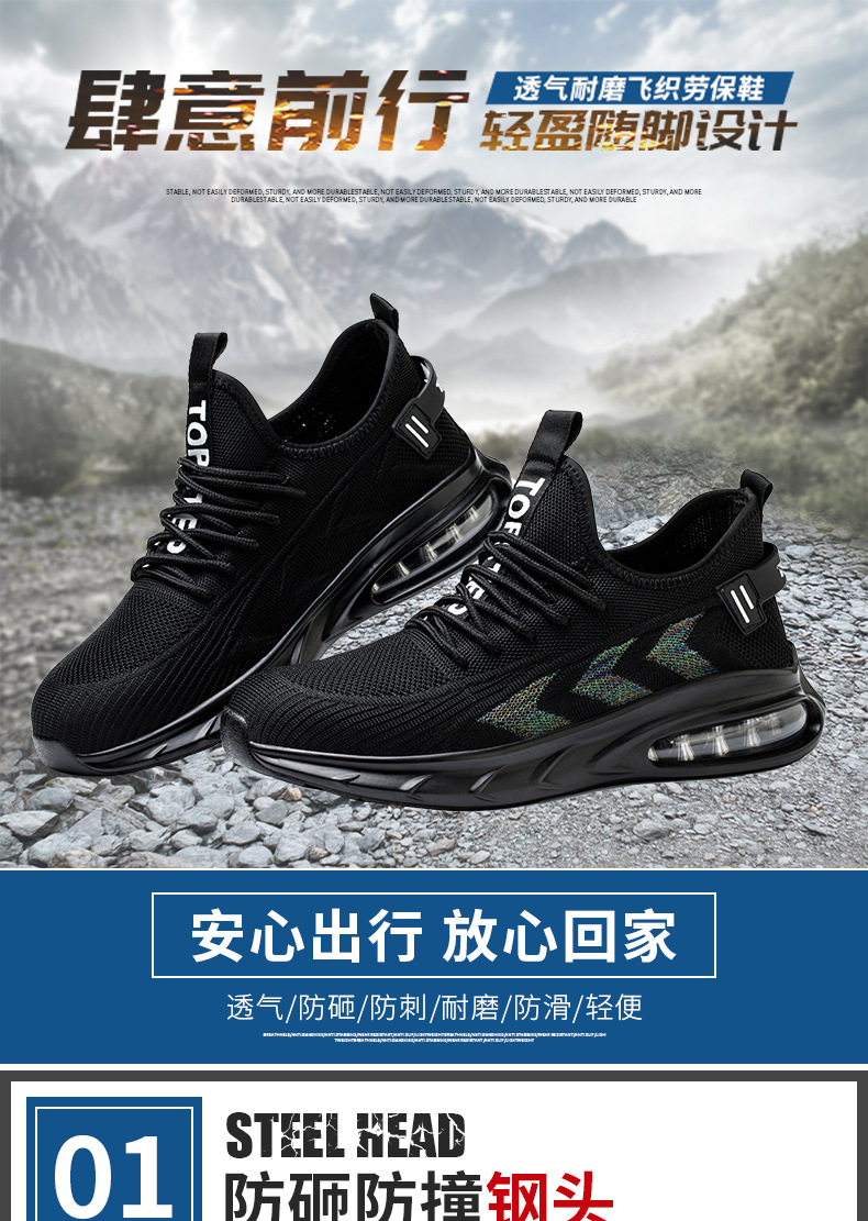 노동 보호 신발 남성용 스매싱 방지 강철 헤드 탈취제 내마모성 경량 노동 보호 건설 현장 신발 플라이 짠 통기성 안전 신발