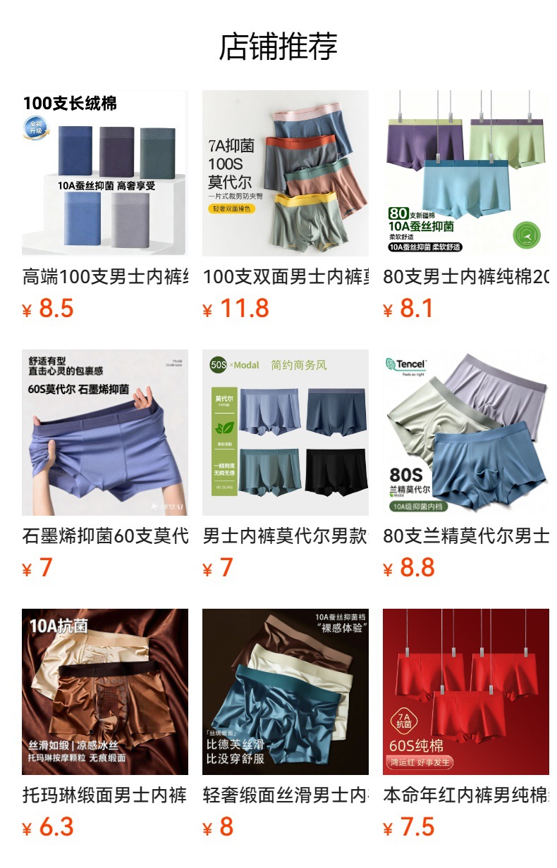 남성용 순면 A급 60수 편안한 무봉제 10A 항균 안감 미드웨이스트 사각팬티 남성용스토어 가기