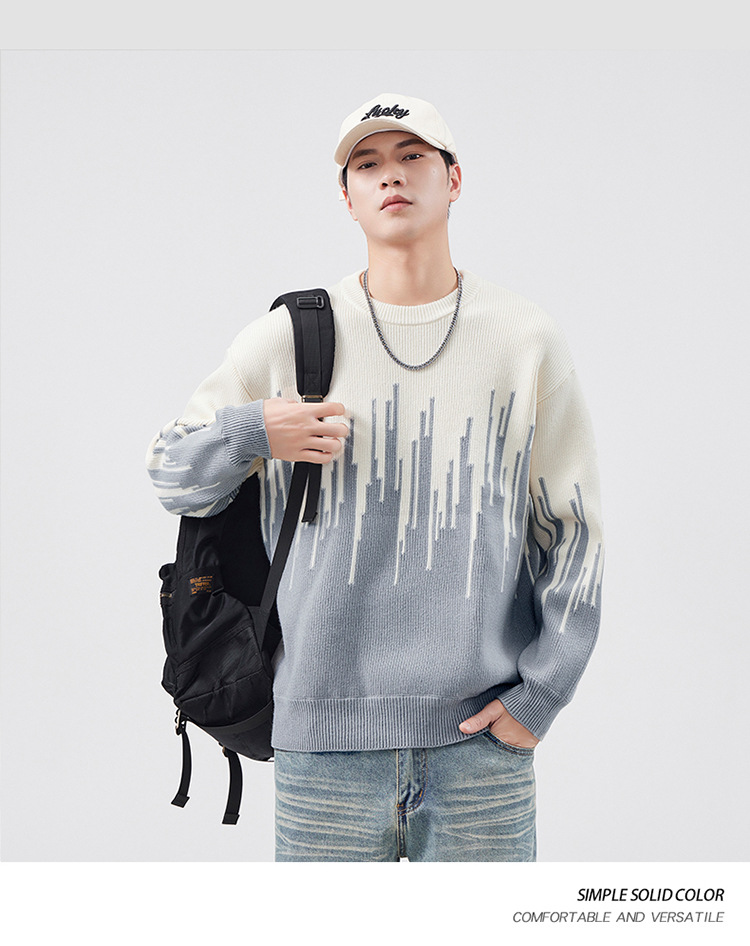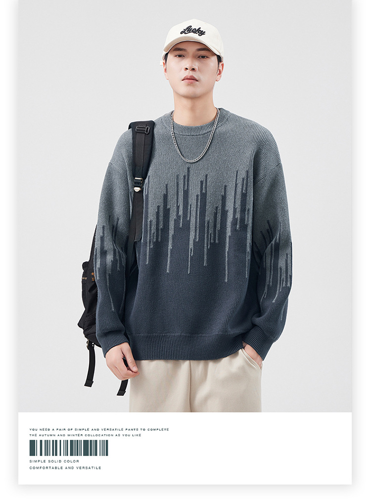 重磅腈纶混纺 慵懒风针织衫宽松男士毛衣线衣服毛衫外套