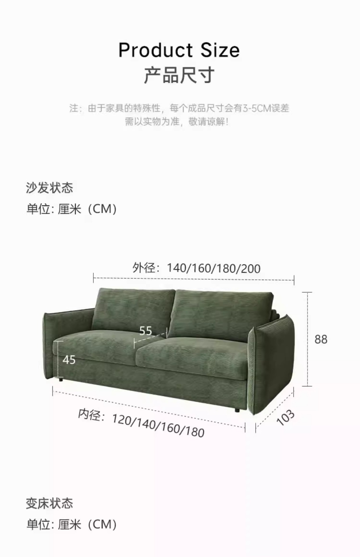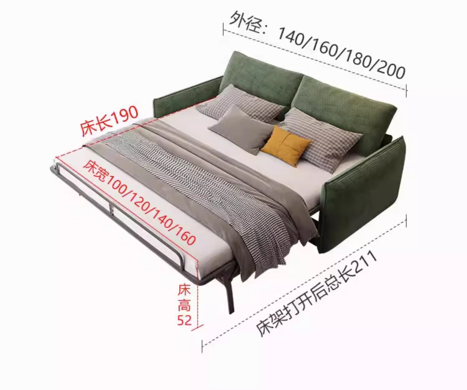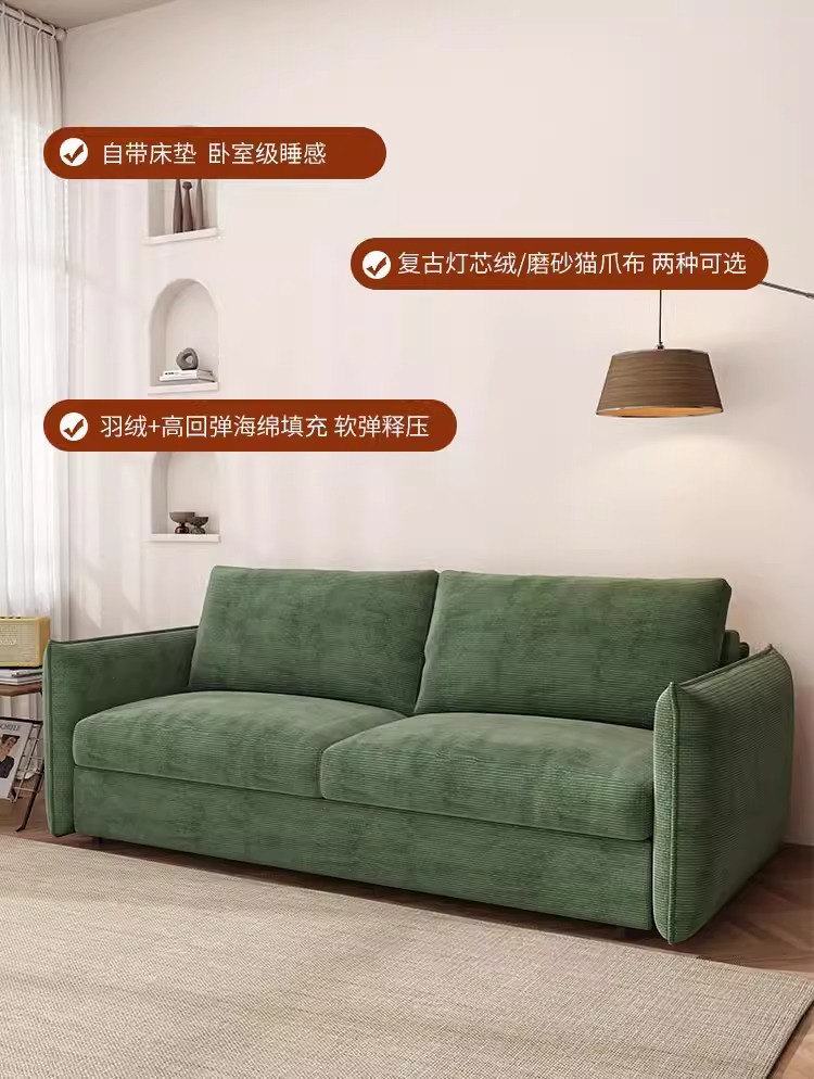 크림 스타일 플립 소파 침대 듀얼 사용 간단한 현대 작은 아파트 거실 침실 발코니 망토 소파