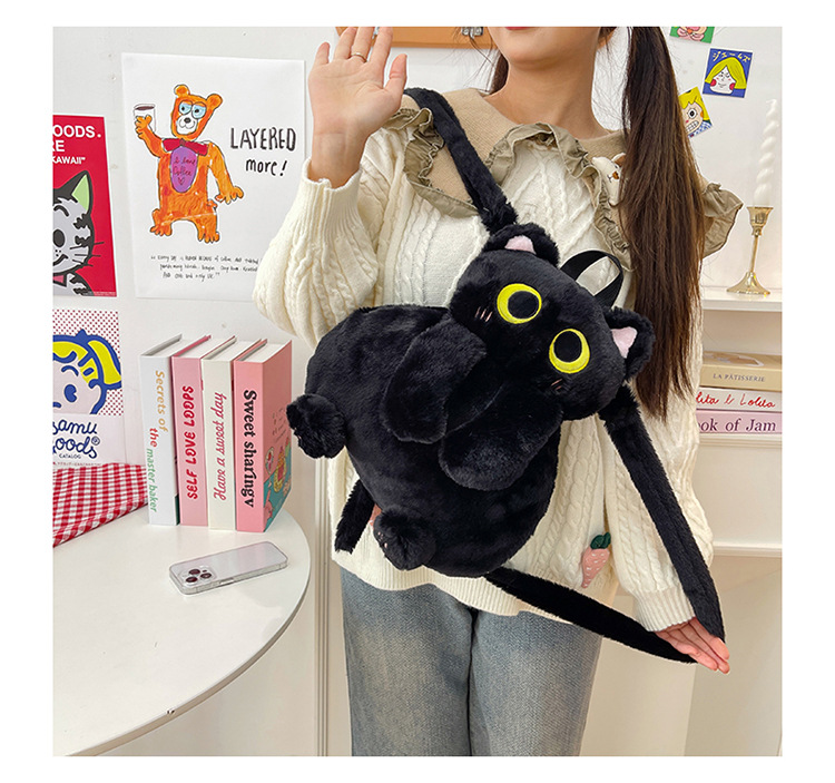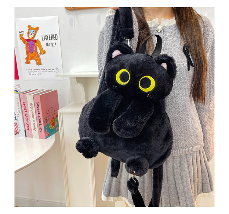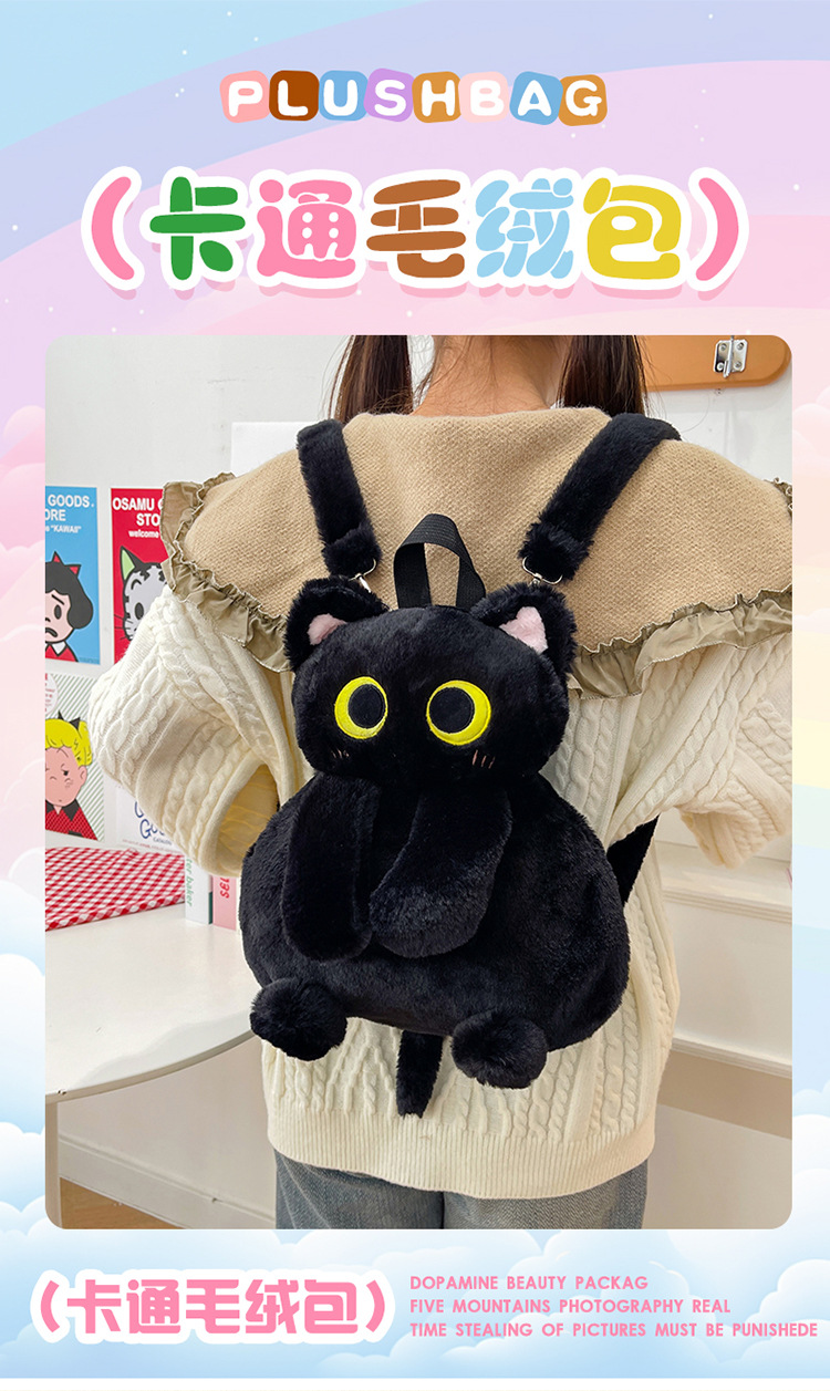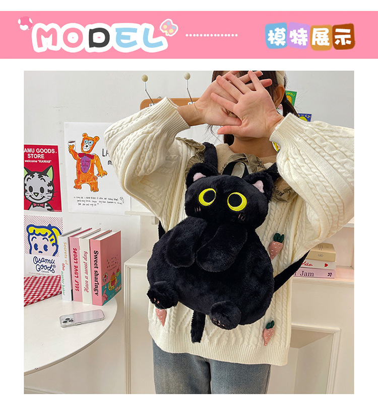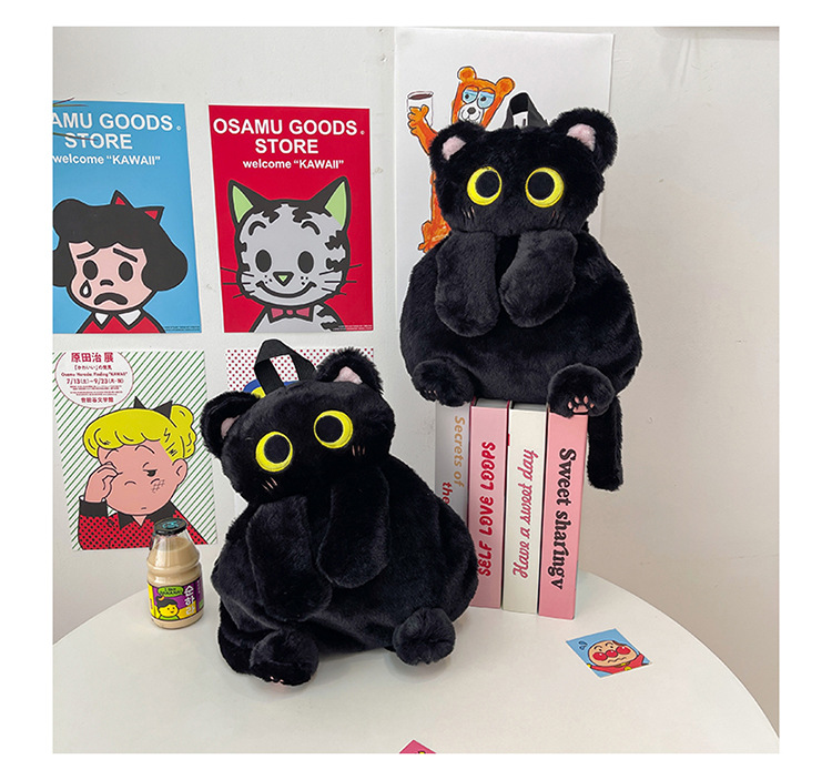 2025 국경 새 봉제 가방 달콤하고 귀여운 검은 고양이 배낭 소녀 대학 스타일 인형 가방스토어 가기