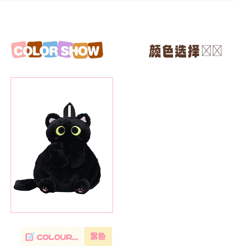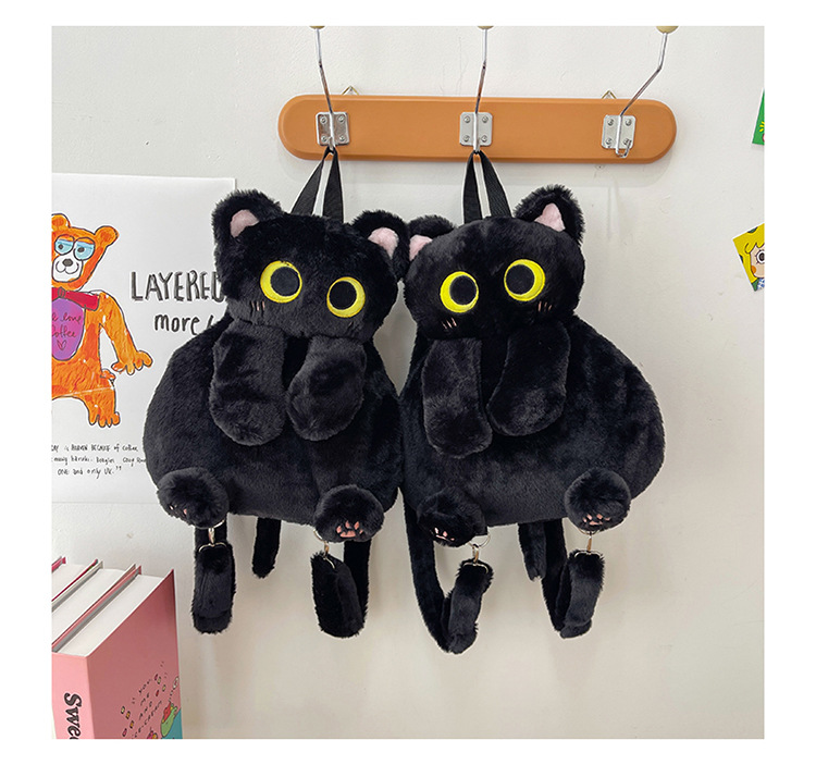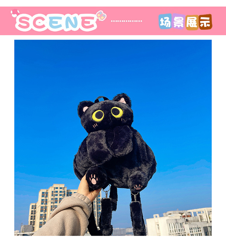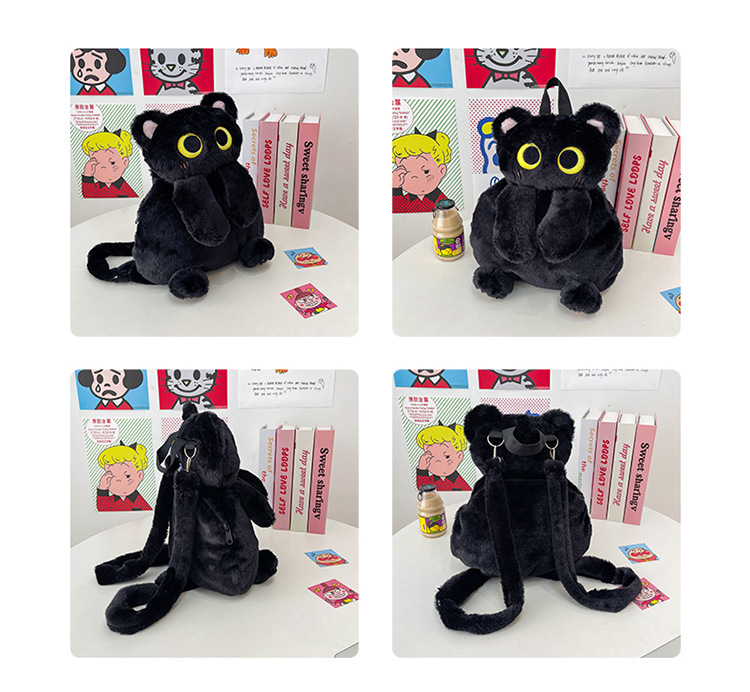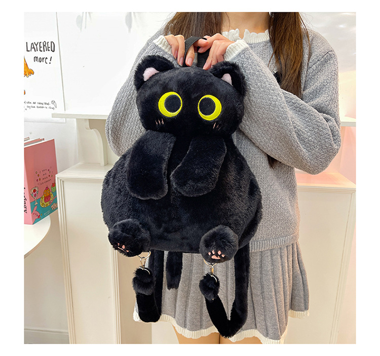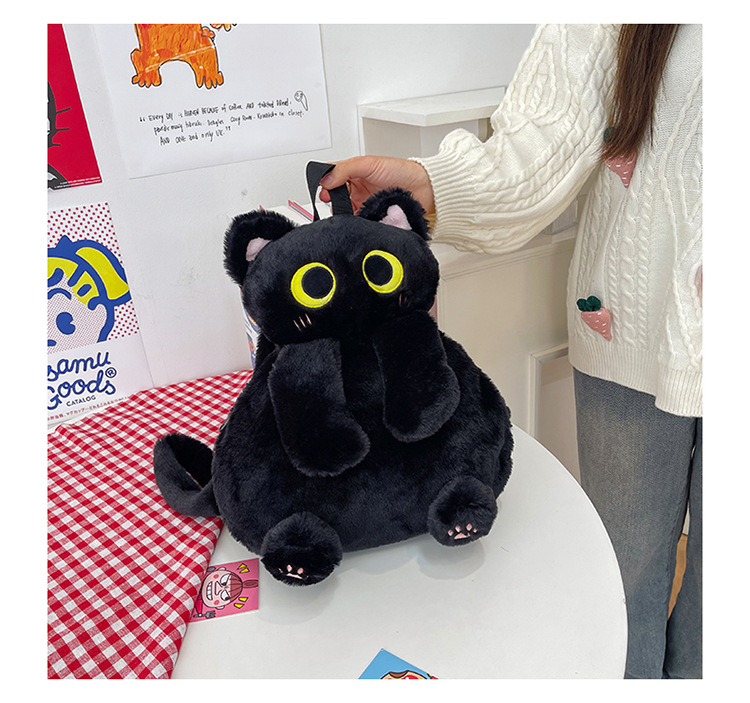2025 국경 새 봉제 가방 달콤하고 귀여운 검은 고양이 배낭 소녀 대학 스타일 인형 가방스토어 가기