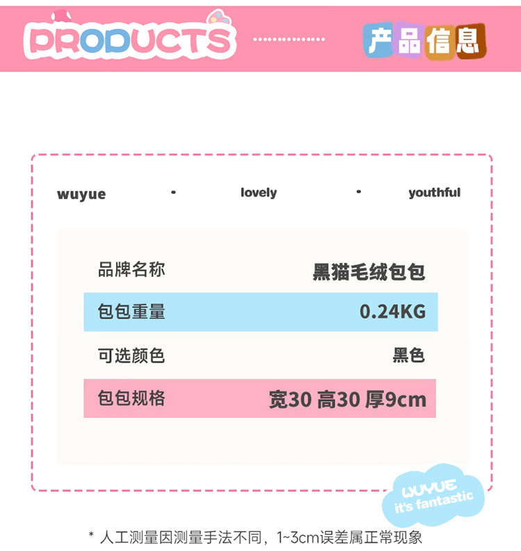 2025 국경 새 봉제 가방 달콤하고 귀여운 검은 고양이 배낭 소녀 대학 스타일 인형 가방