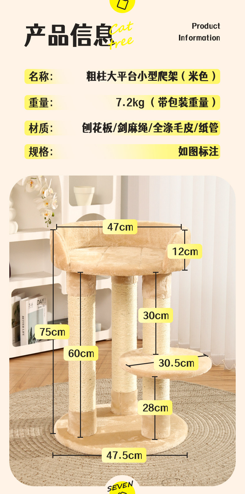 【材质】:刨花板,剑麻绳,全涤毛皮,纸管/刨花板,剑麻绳,全涤毛皮,纸管
