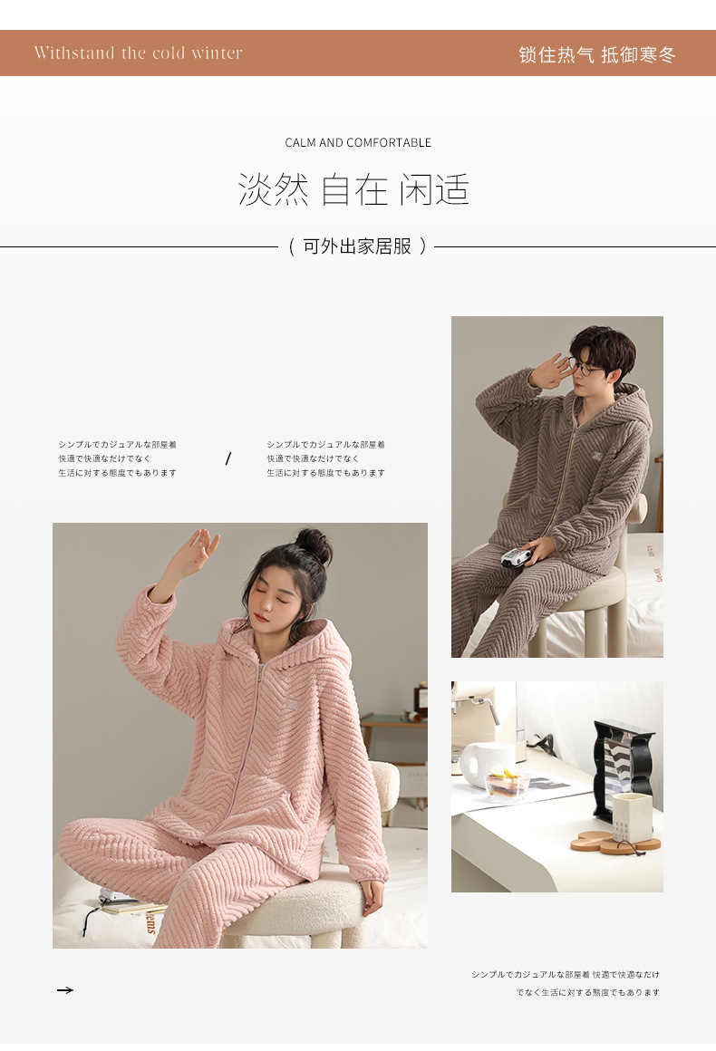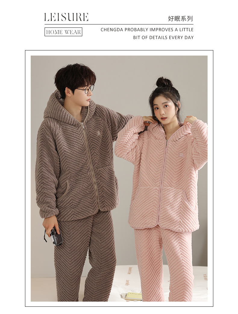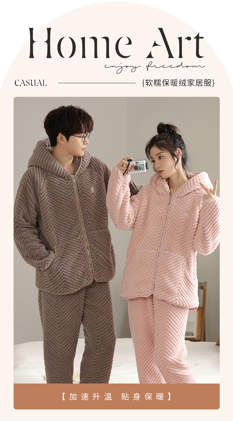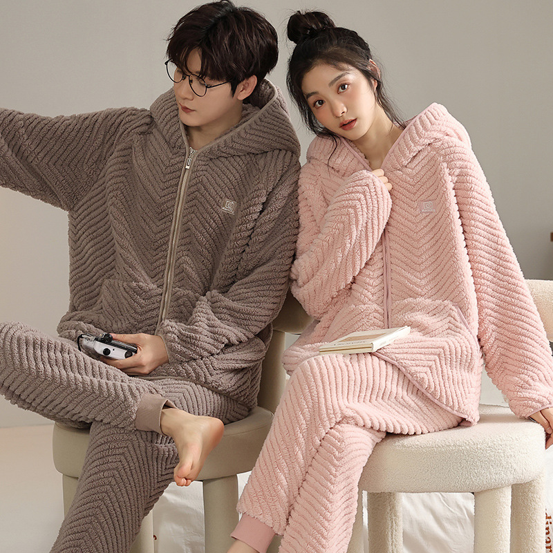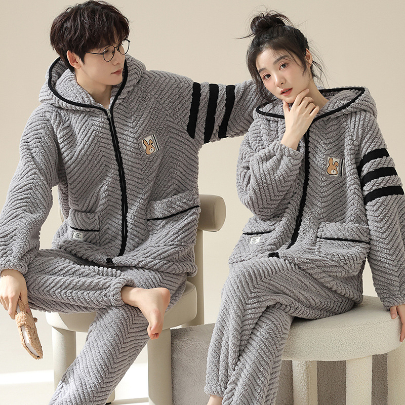 커플의 잠옷 산호 양털 가을과 겨울 남녀 후드가 달린 플란넬 홈 옷 겨울에 따뜻한 따뜻한 세트 입고