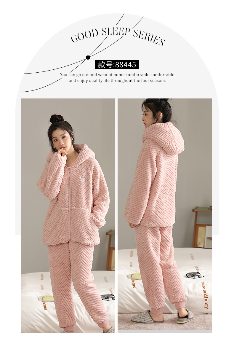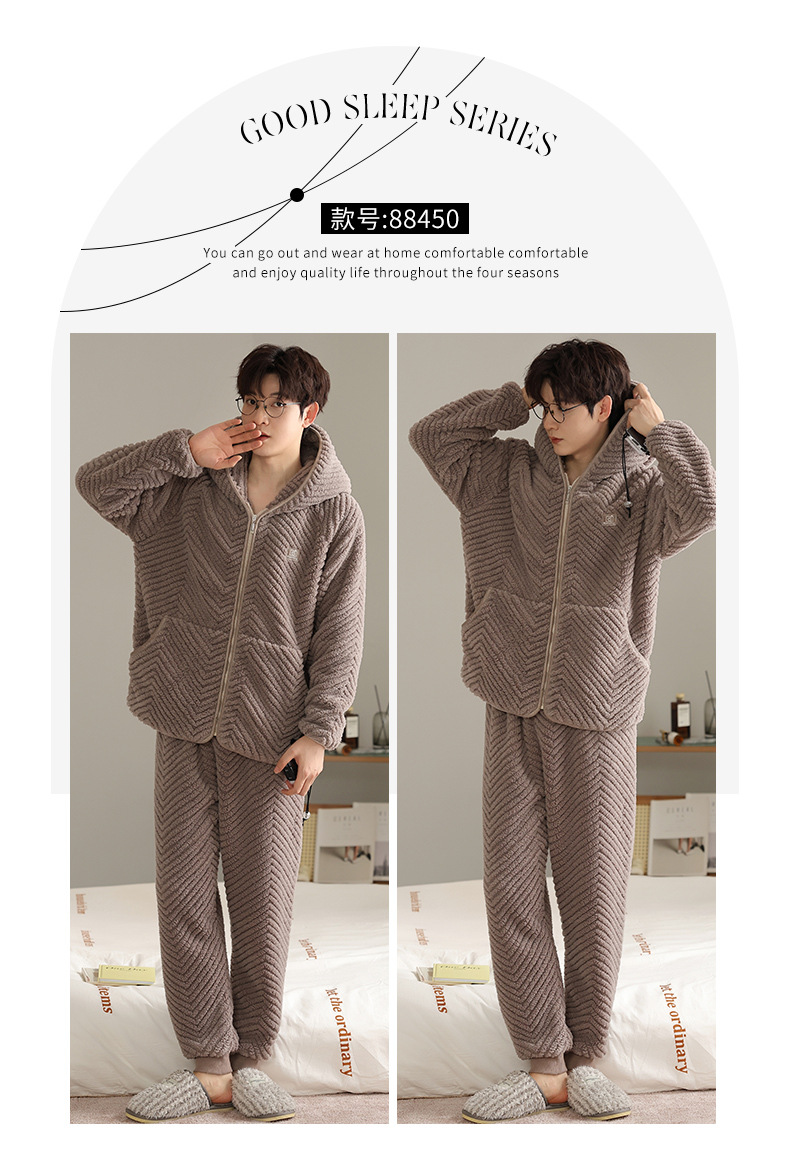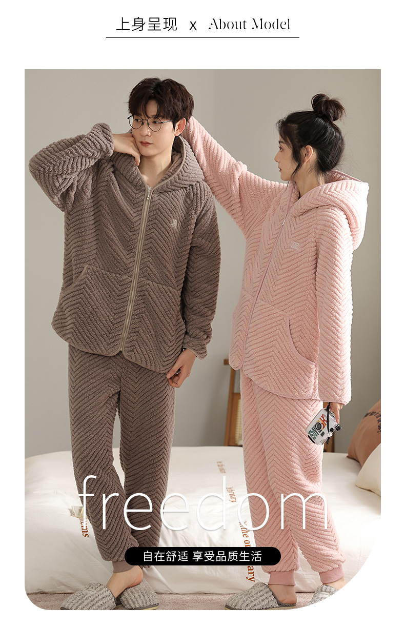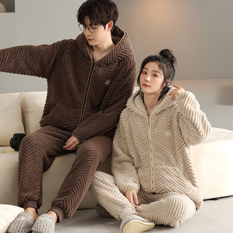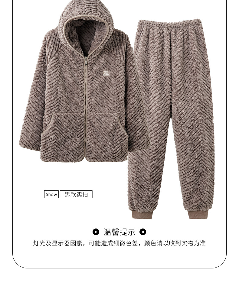 커플의 잠옷 산호 양털 가을과 겨울 남녀 후드가 달린 플란넬 홈 옷 겨울에 따뜻한 따뜻한 세트 입고