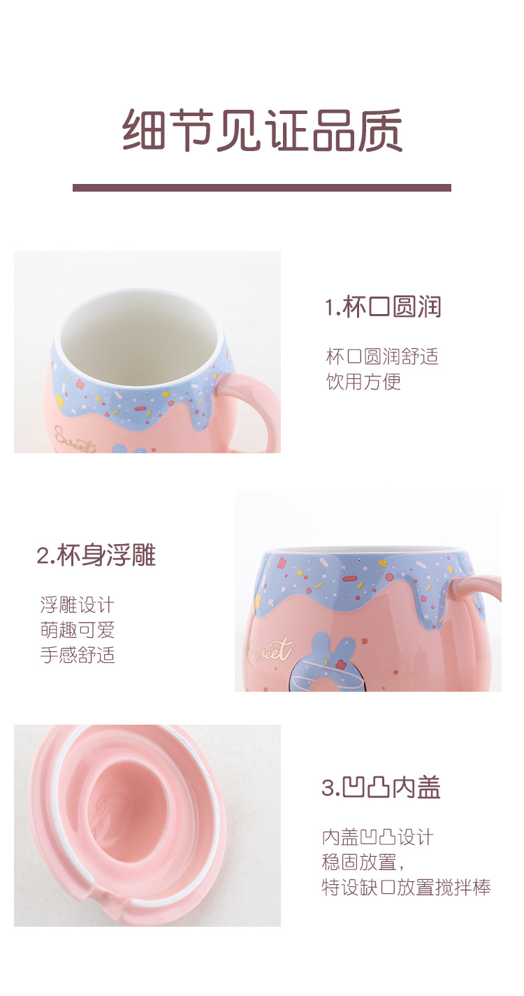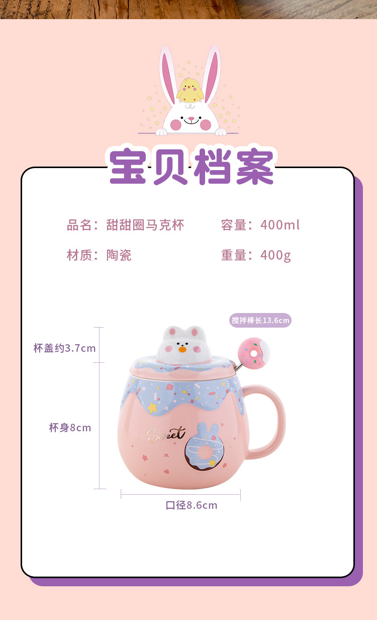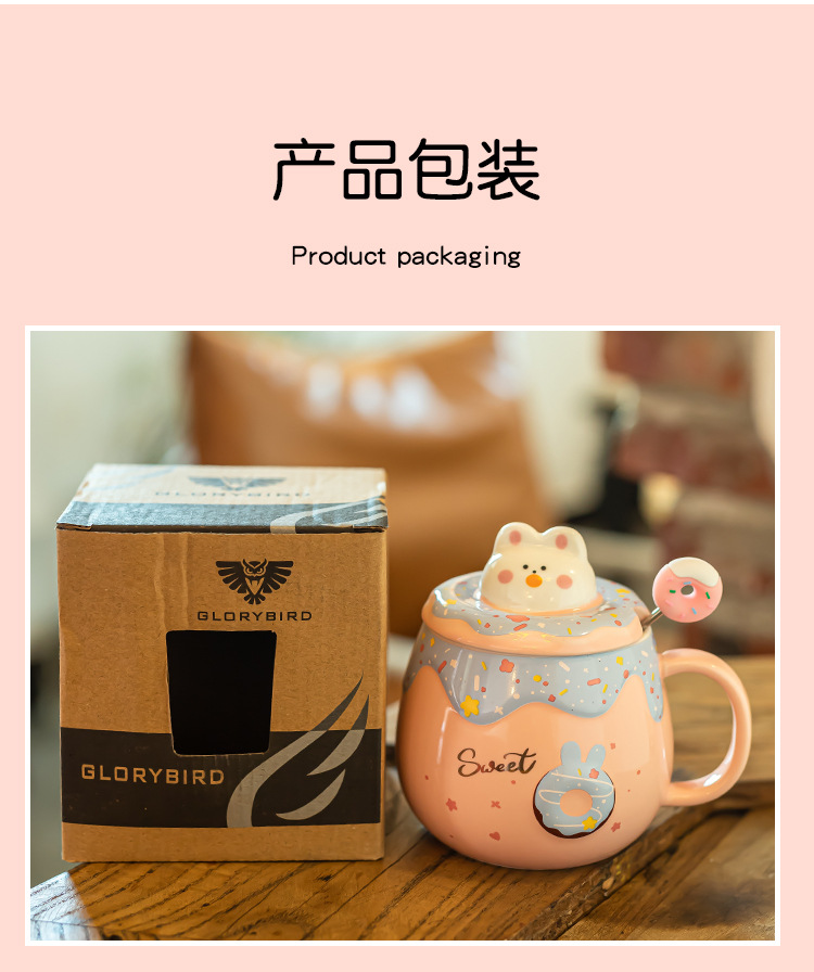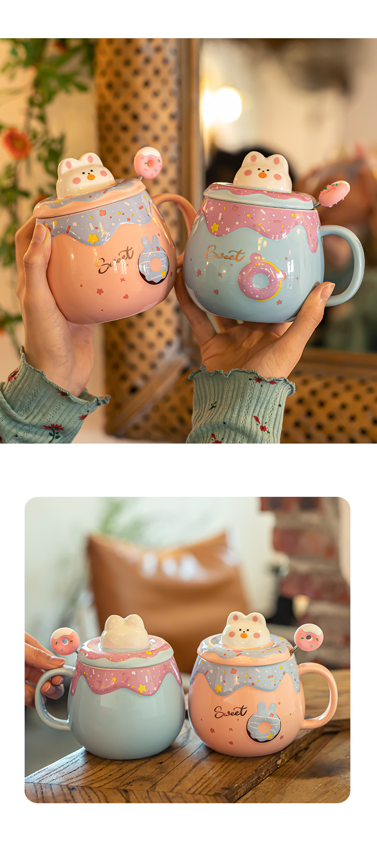 귀여운 도넛 머그컵 뚜껑과 스푼 포함, 예쁜 여성용 커피잔, 가정 및 사무실용 세라믹 물컵