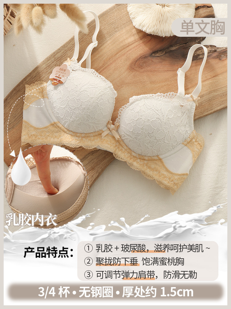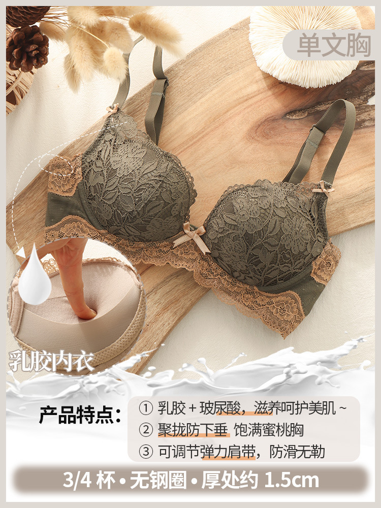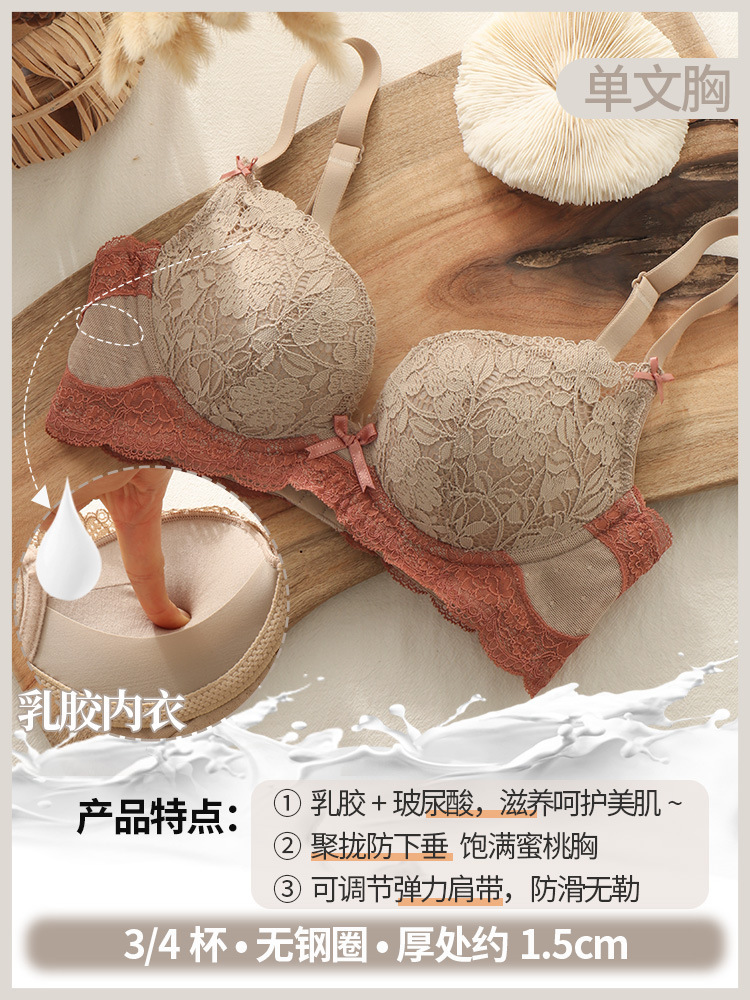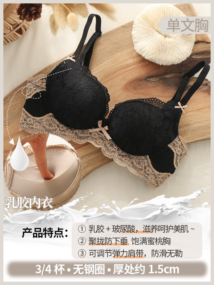 섹시한 레이스 라텍스 조절형 여성 속옷 세트, 작은 가슴을 모아 더 커 보이게 하고, 옆쪽 가슴살을 보정하고, 위로 받쳐주는 노와이어 브라 세트