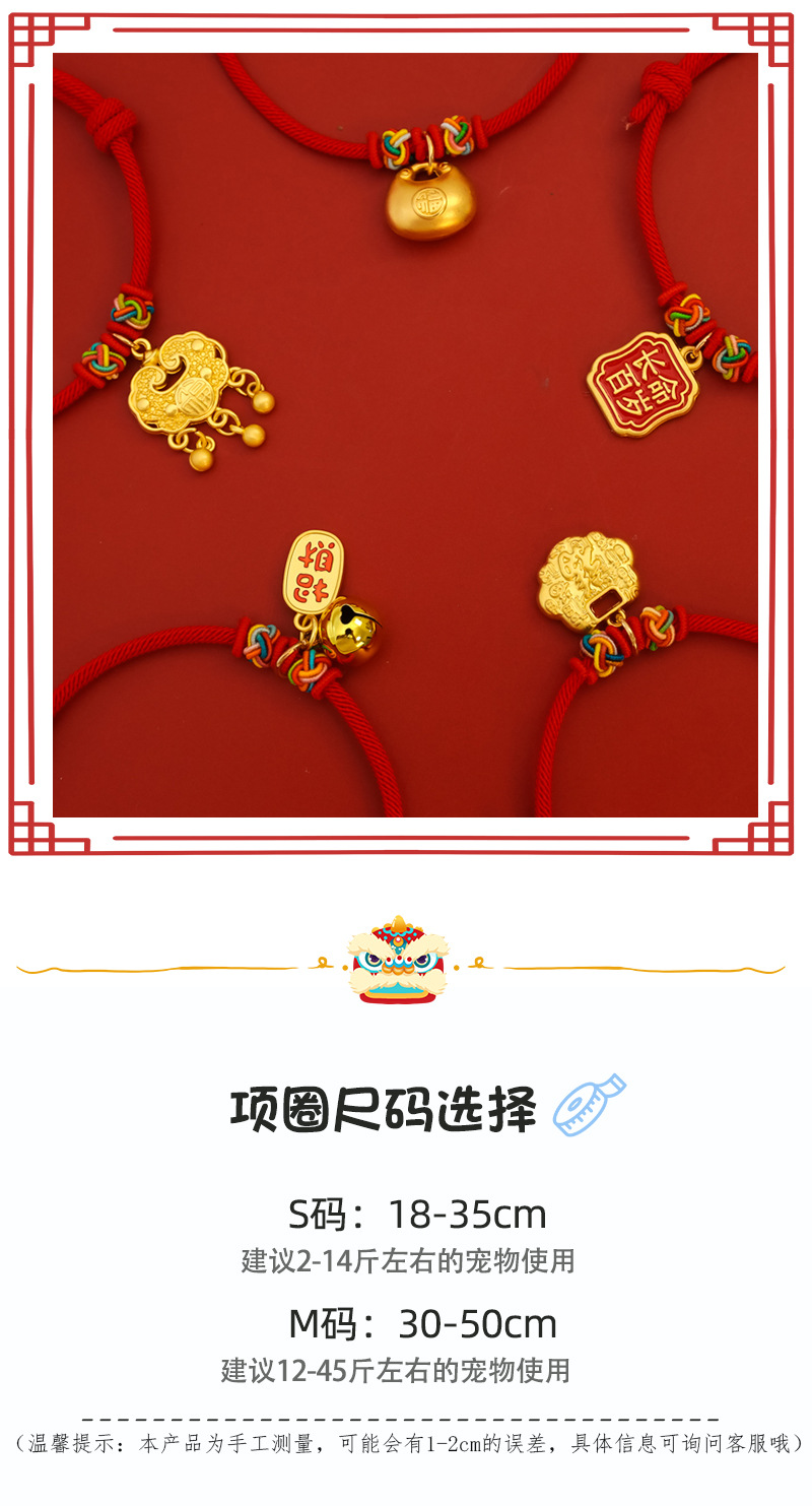 애완 동물 새해 장수 잠금 백년 된 로프 칼라 봄 축제 고양이 개 골드 목걸이 붉은 장식 침묵스토어 가기