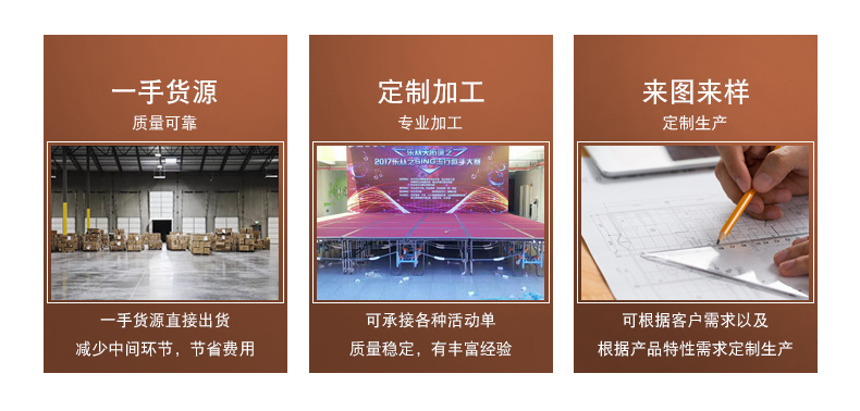 佛山市时登几金属制品有限公司集设计开发、生产销售为一体的专业生产企业。公司主营产品包括:活动舞台、钢铁框类屏风、舞池板、餐台手推车、餐椅手推车、凳等系列产品,广泛适用于各类酒店、宾馆、会所、餐厅以及各类婚庆、活动场所使用。我司拥有完整、科学的质量管理体系,从原材料的采购到生产过程的控制建立了严格的体系制度,以求达到令每位客户“买得放心、用得开心”。我司的诚信、实力和产品质量经已获得业界的认可。欢迎各界朋友莅临参观、指导和业务洽谈。