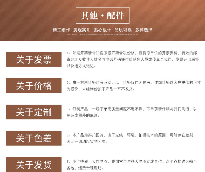 答:不行。本公司曾采取过不付定金的方式,但有些客户在我们发货之后突然改变主意,取消订货,我们只有将货物再托运回来,这样我们白白损失两面运费,因此,预付定金;定制款100%(定制款产品我们无法再次销售只能当废品,定制做好了,你说不要了,那工人们就白白付出了)体现了客户购买的诚意.