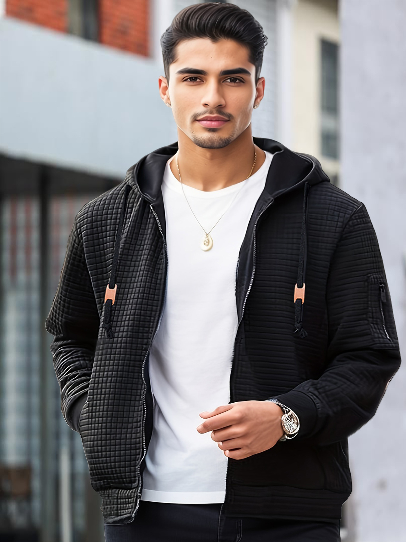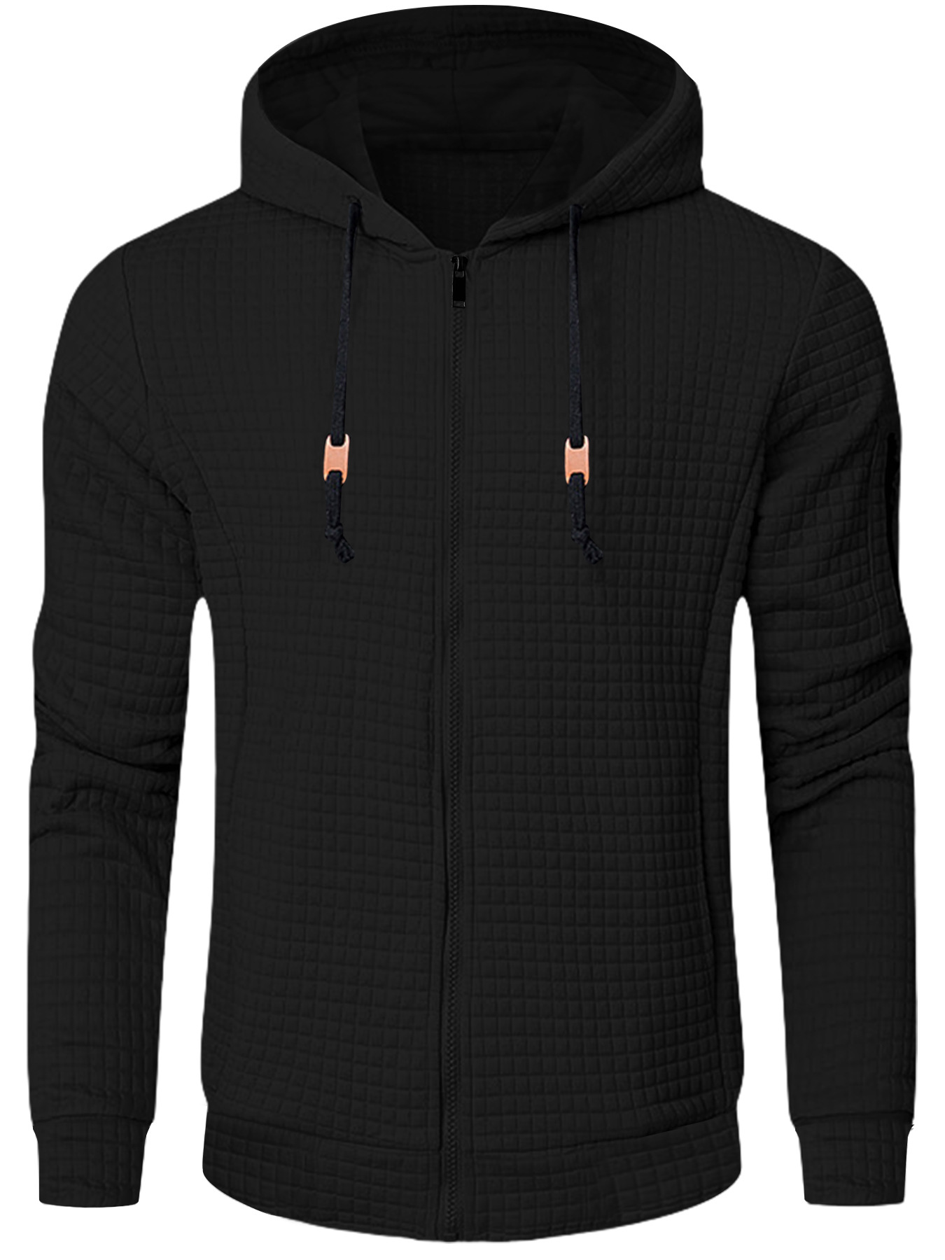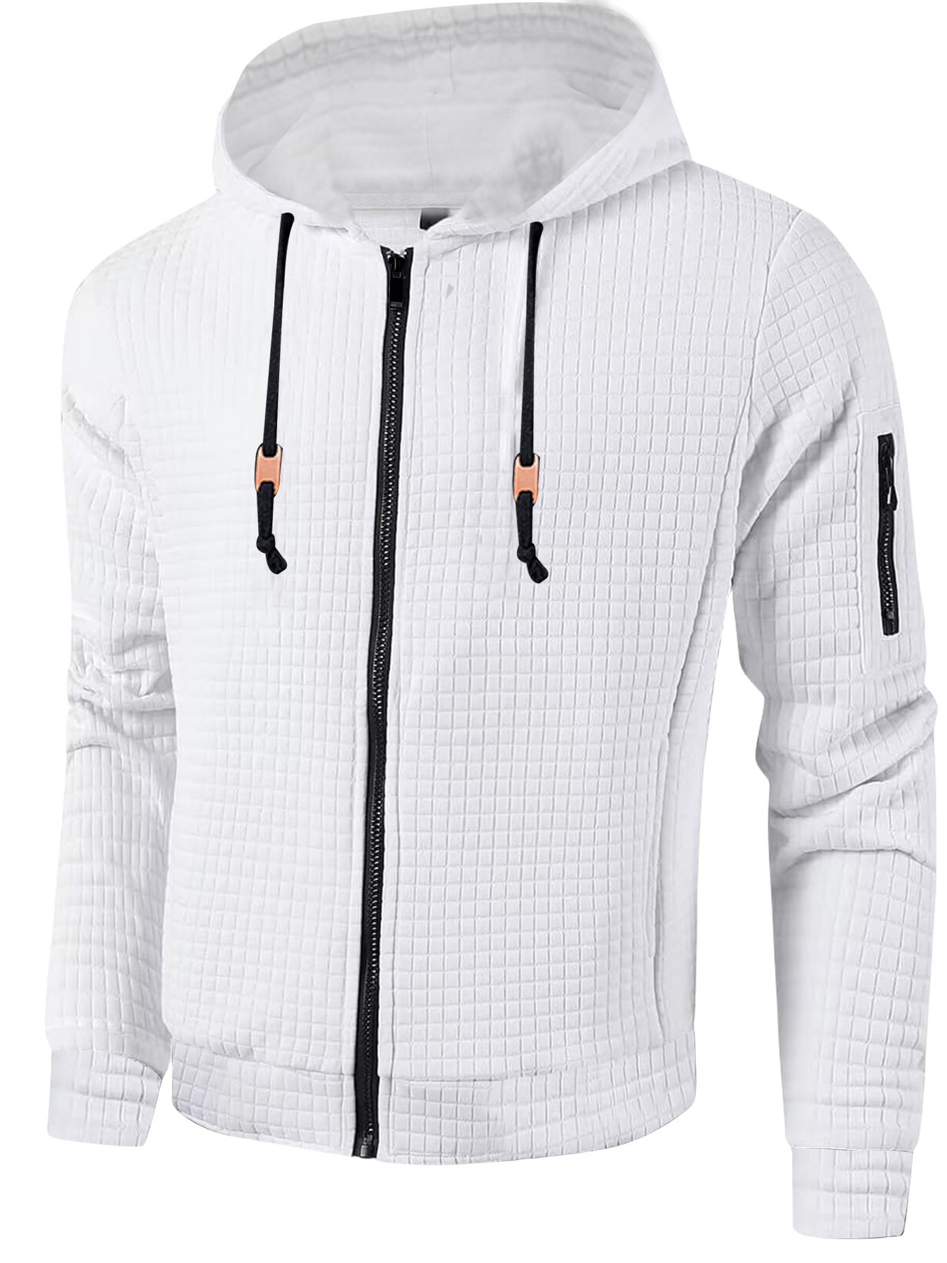 2024 국경 유럽 및 미국 남성 경량 후드 스웨터 풀 Zip 와플 스웨트 셔츠 캐주얼 재킷 코트