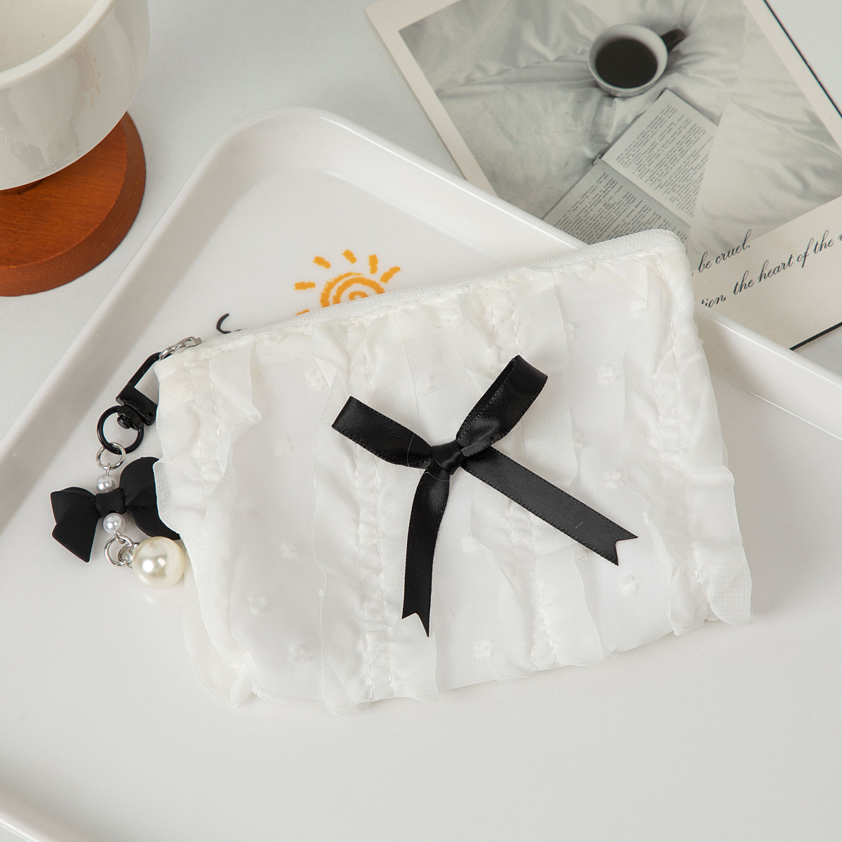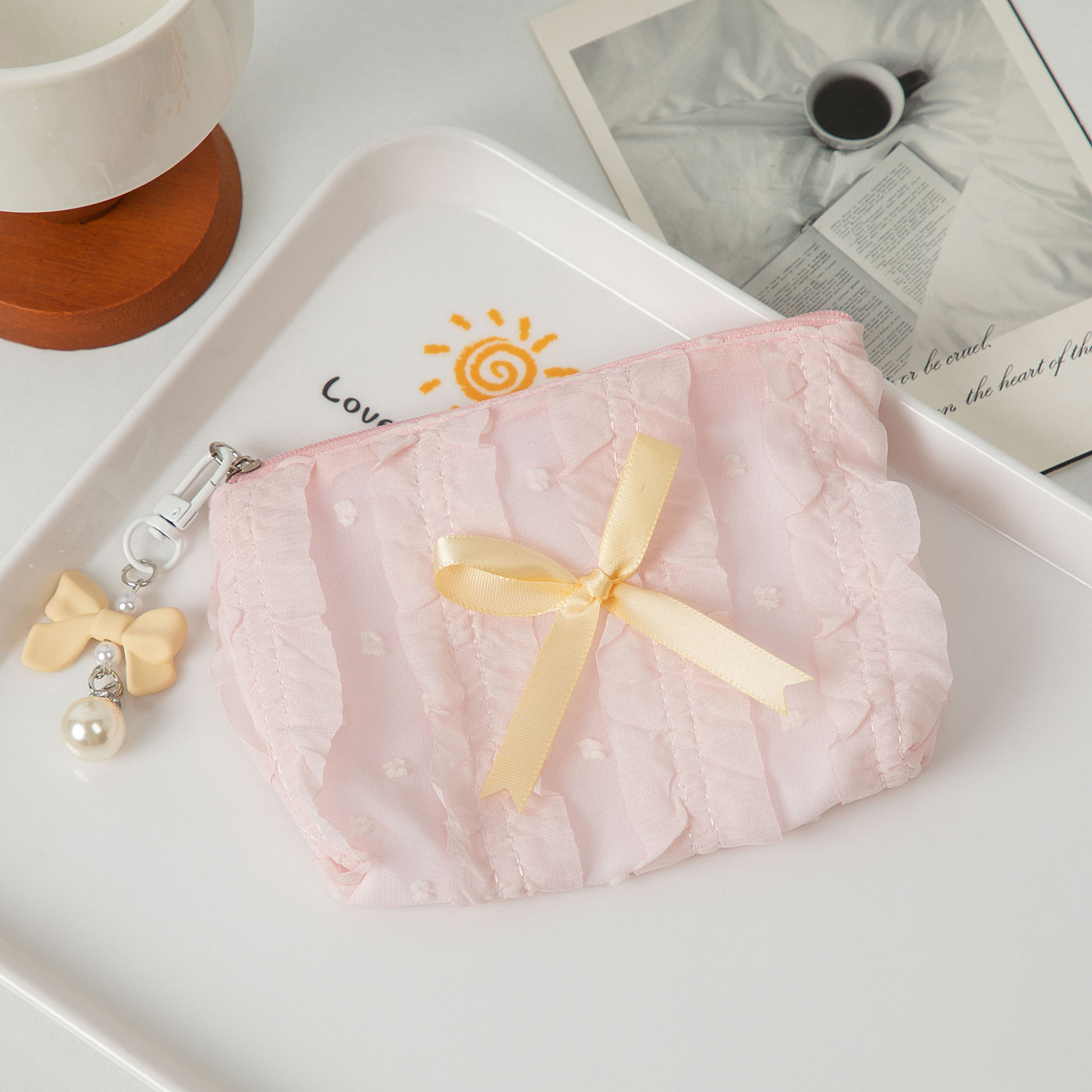 귀여운 화장품 가방 화장품 가방 새로운 한국 스타일 레이스 활 대용량 코인 지갑 클러치 백 여성용 보관 가방