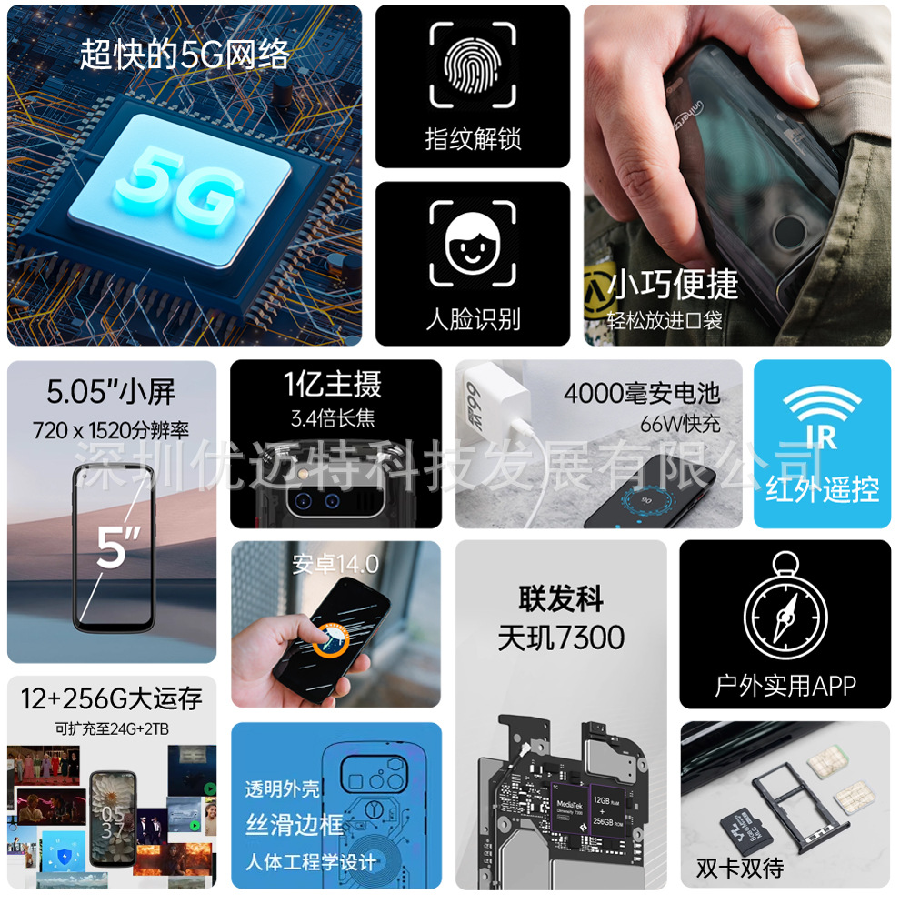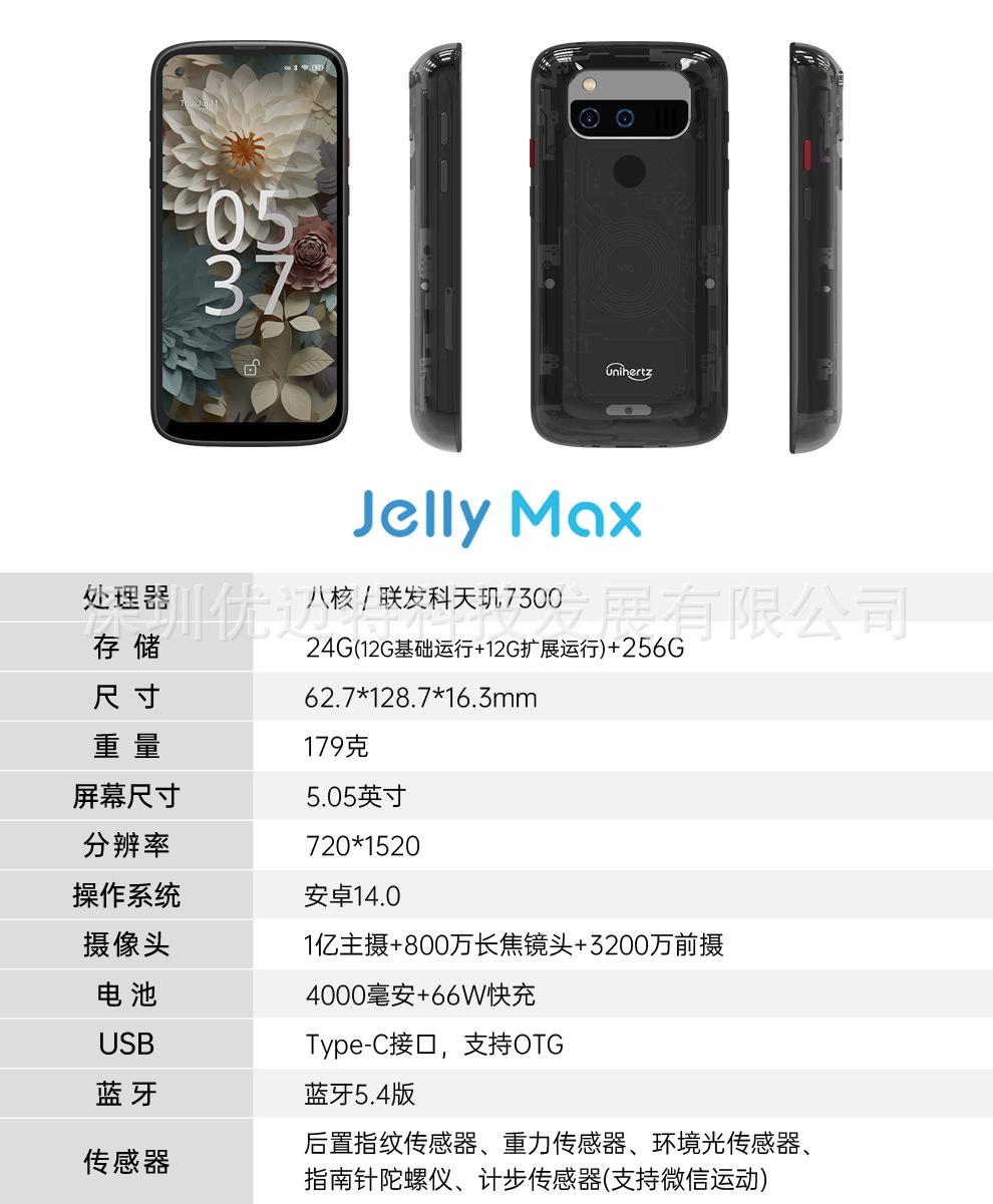 Unihertz Jelly Max 안드로이드 스마트 폰 5G 듀얼 카드 적외선 NFC5.0 인치 0.1 억 픽셀